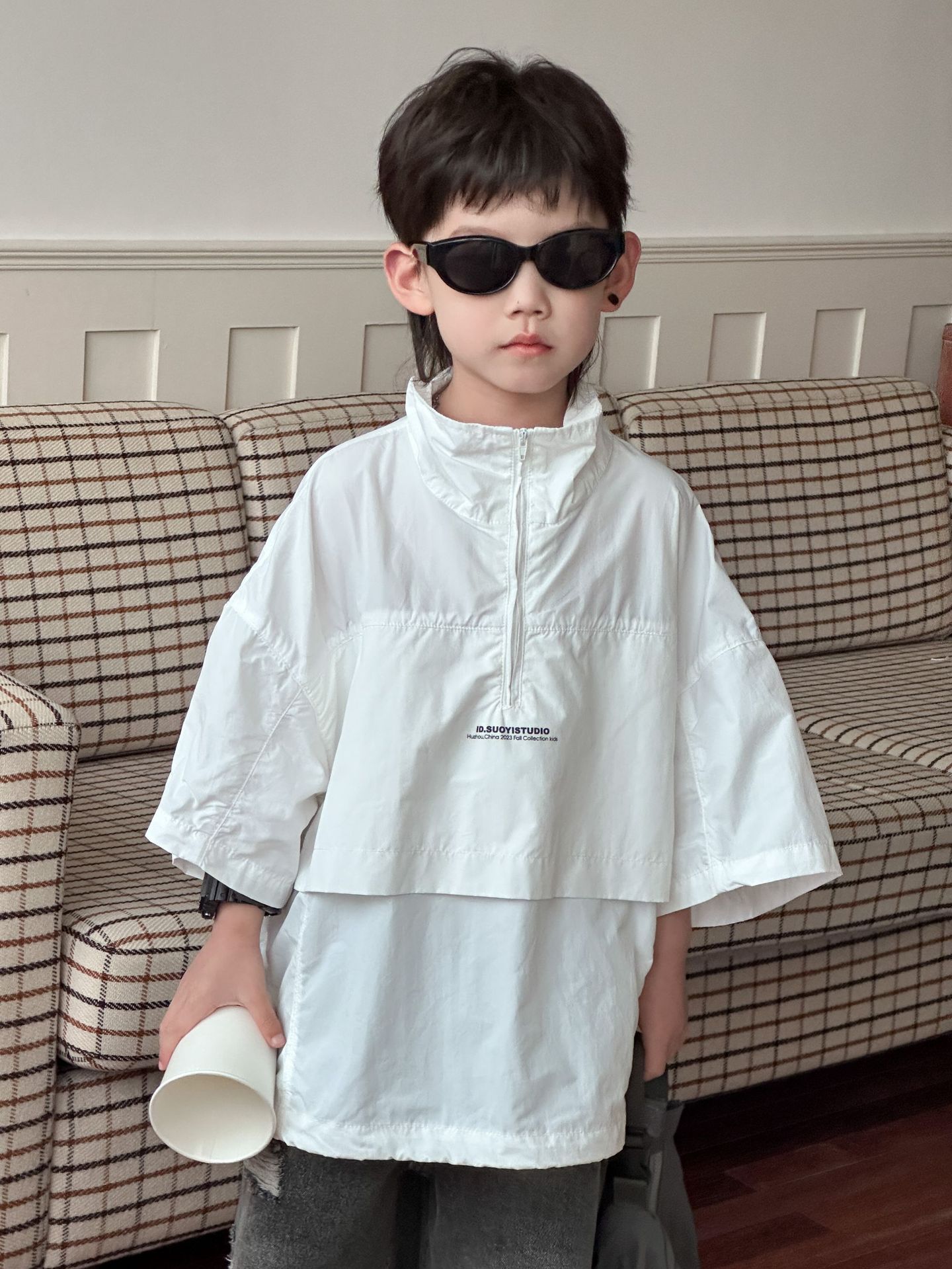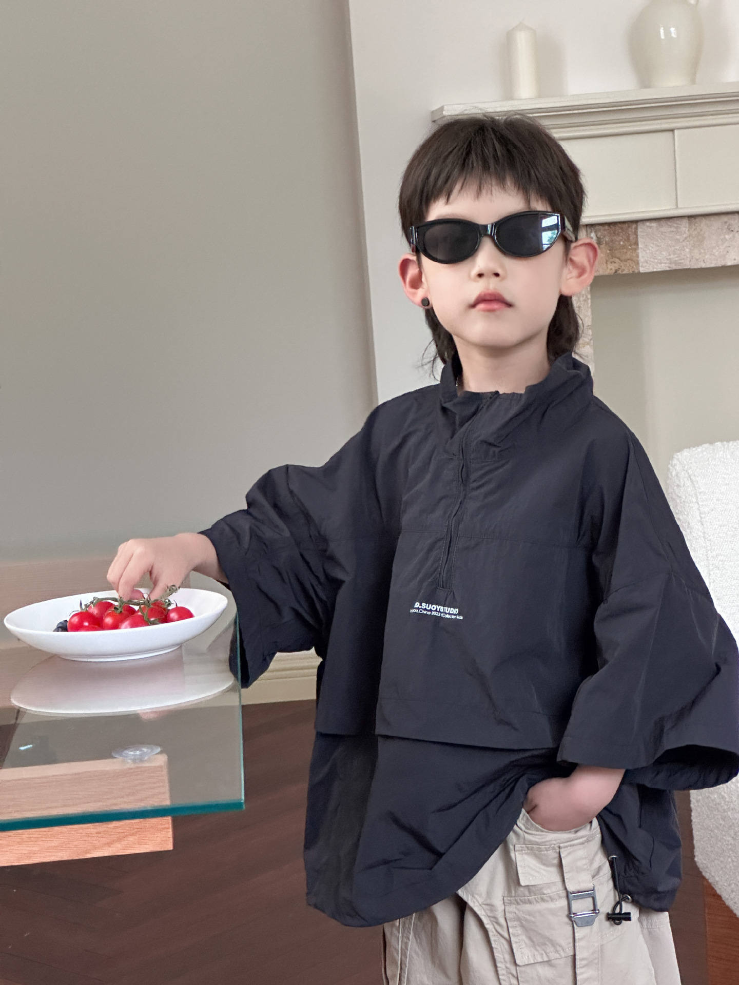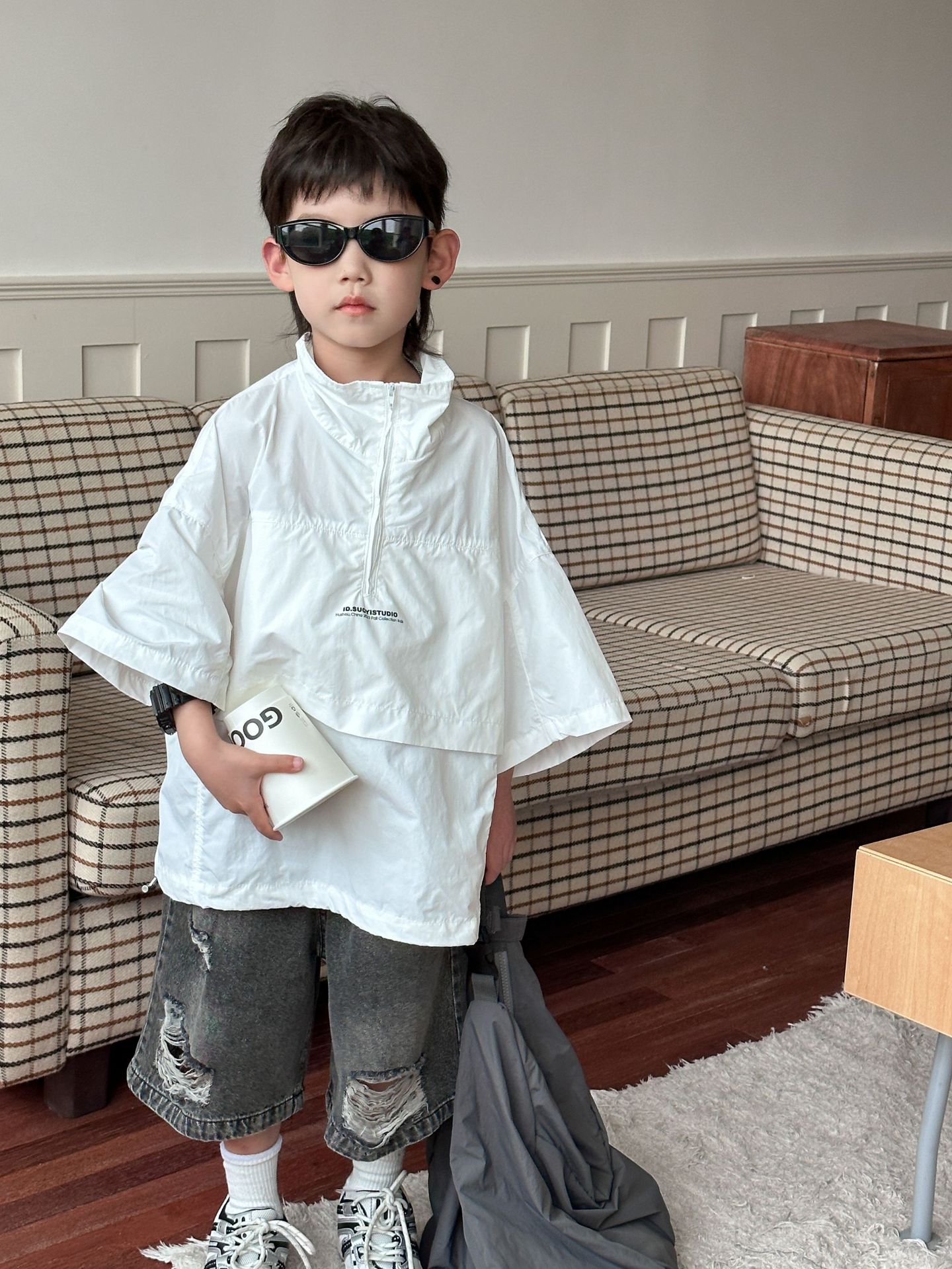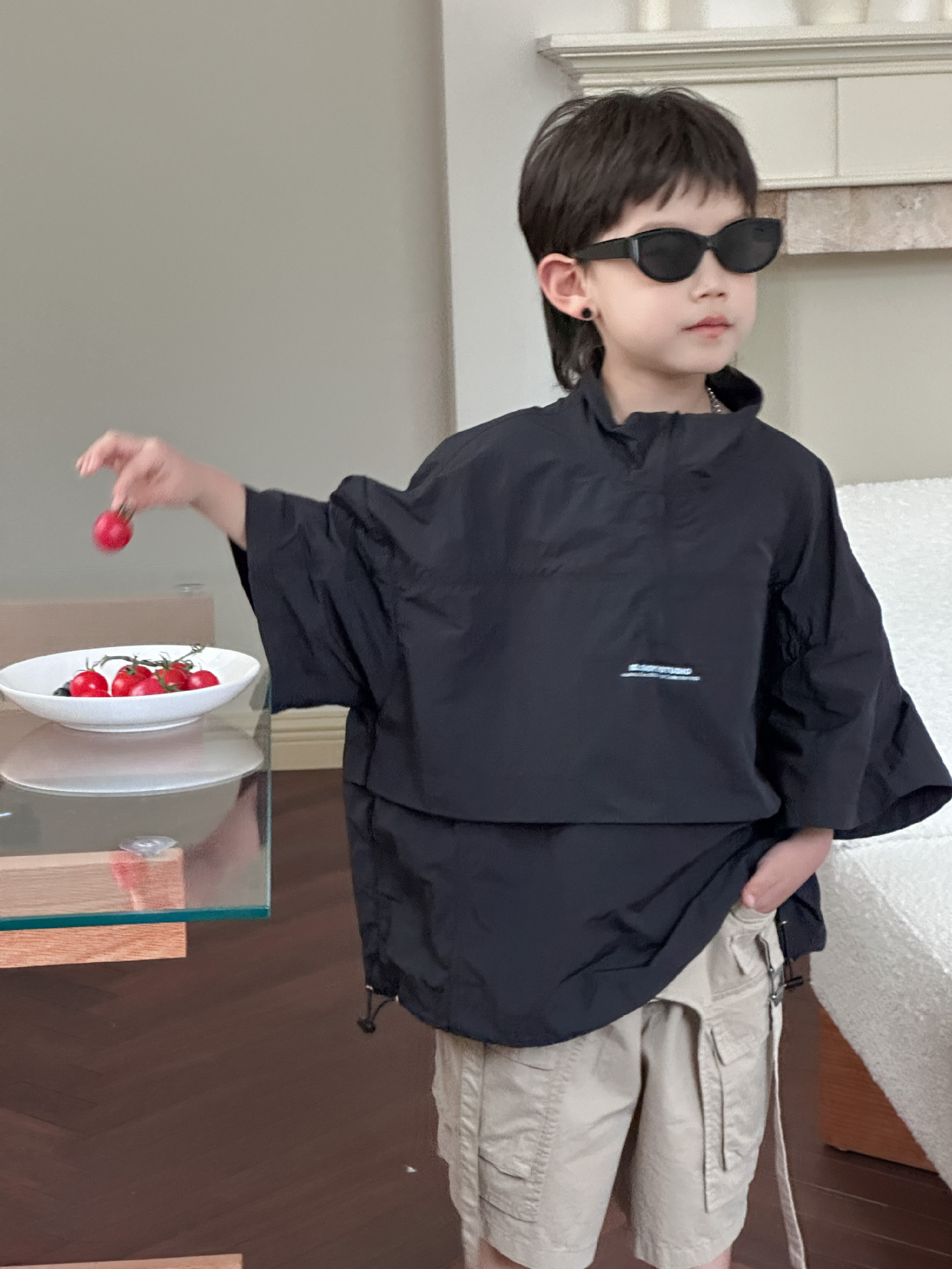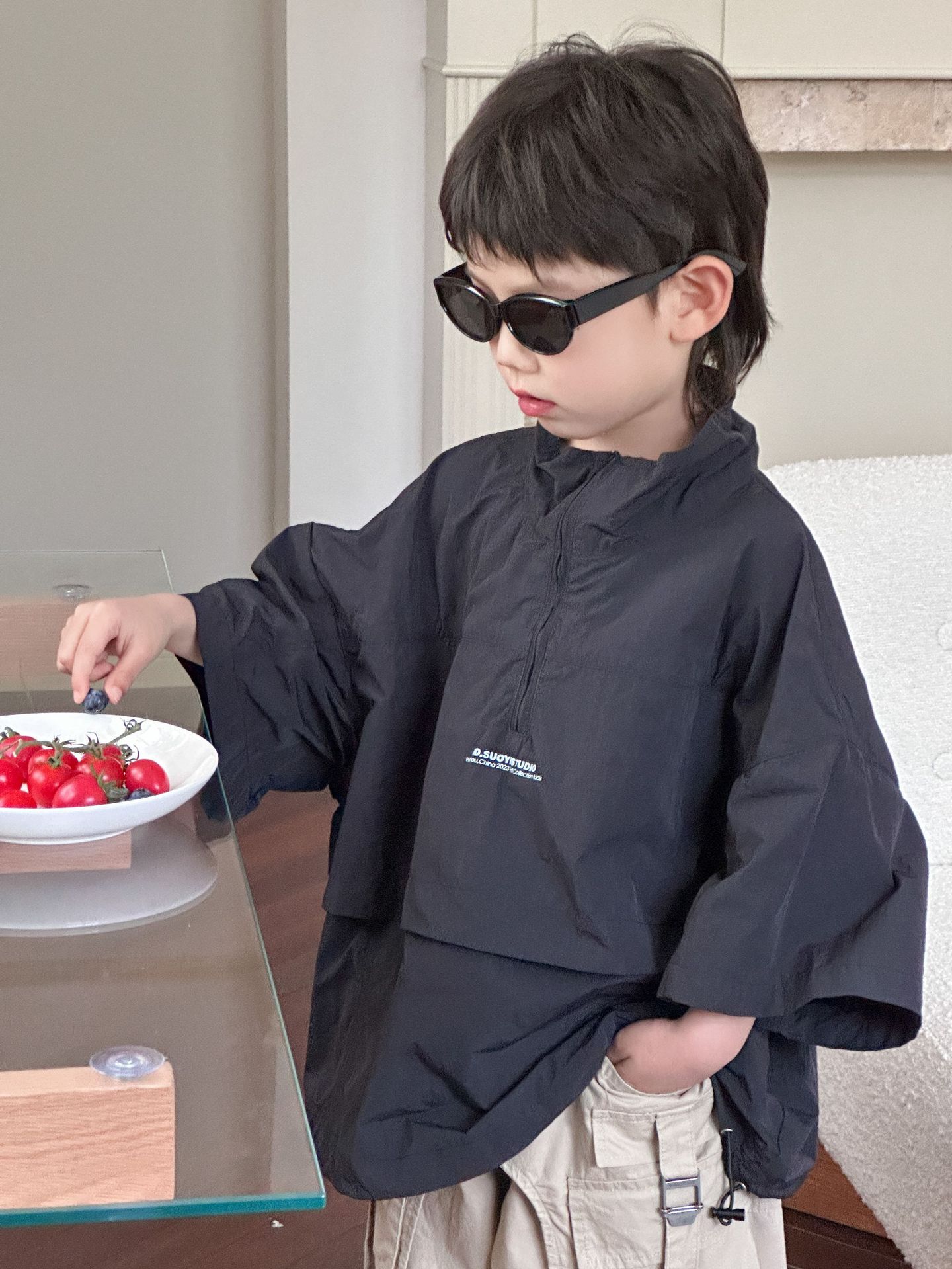 [클리어아웃 세일] 2025 여름 아동용 반팔 하프 지퍼 자외선 차단 탑 소년 소녀용 아웃도어 재킷