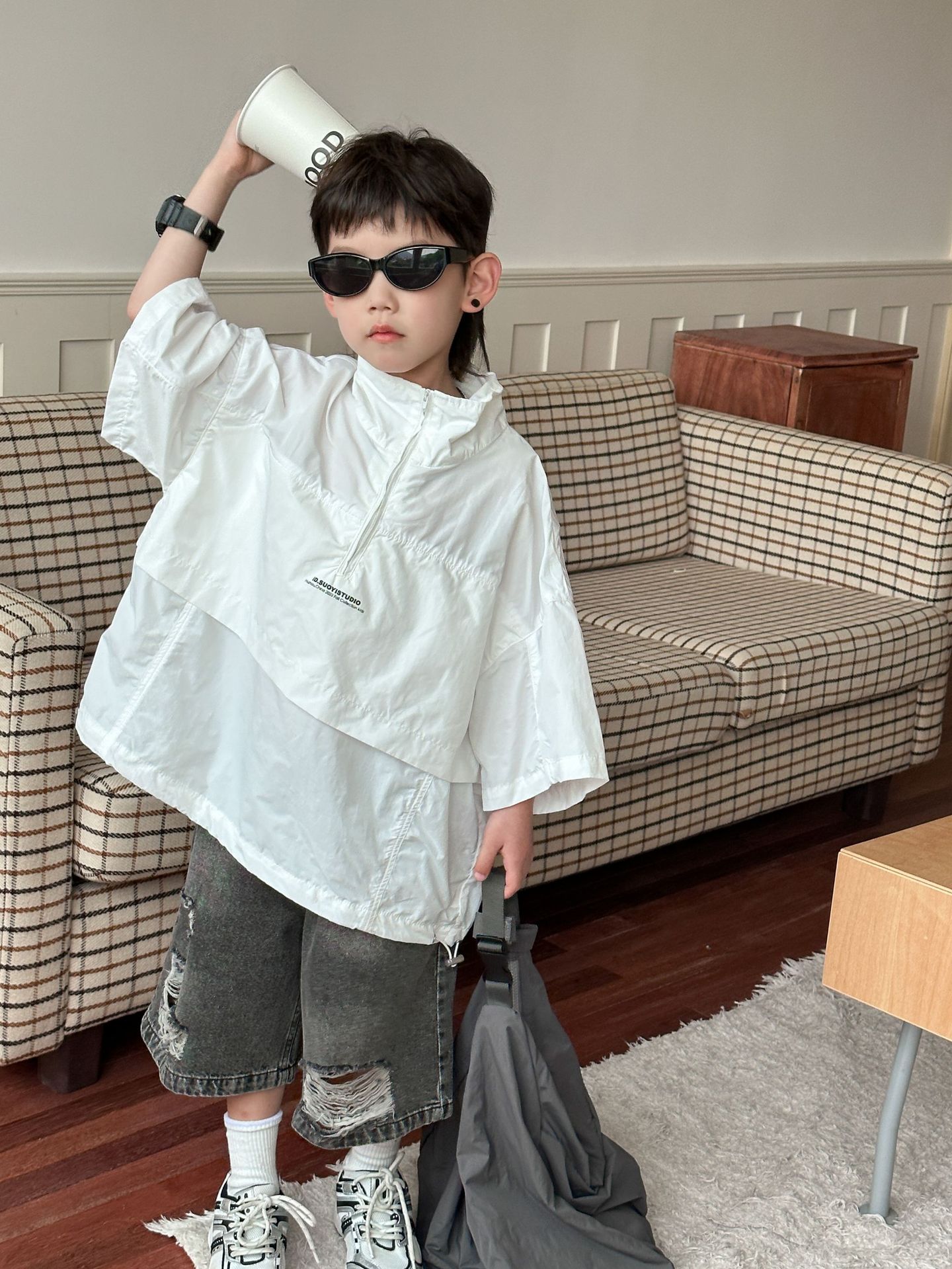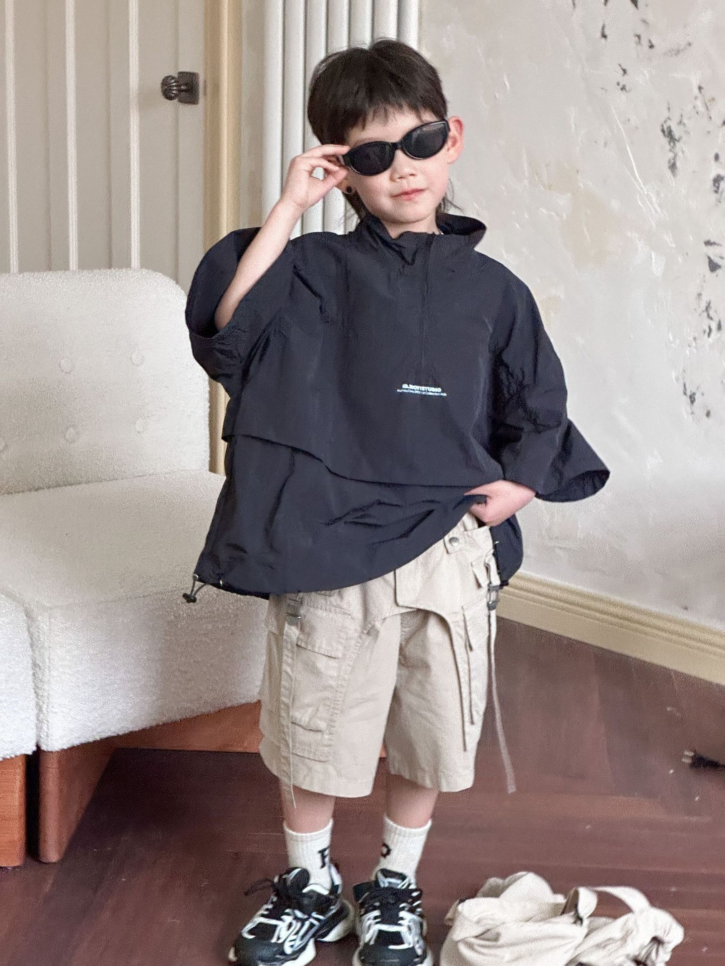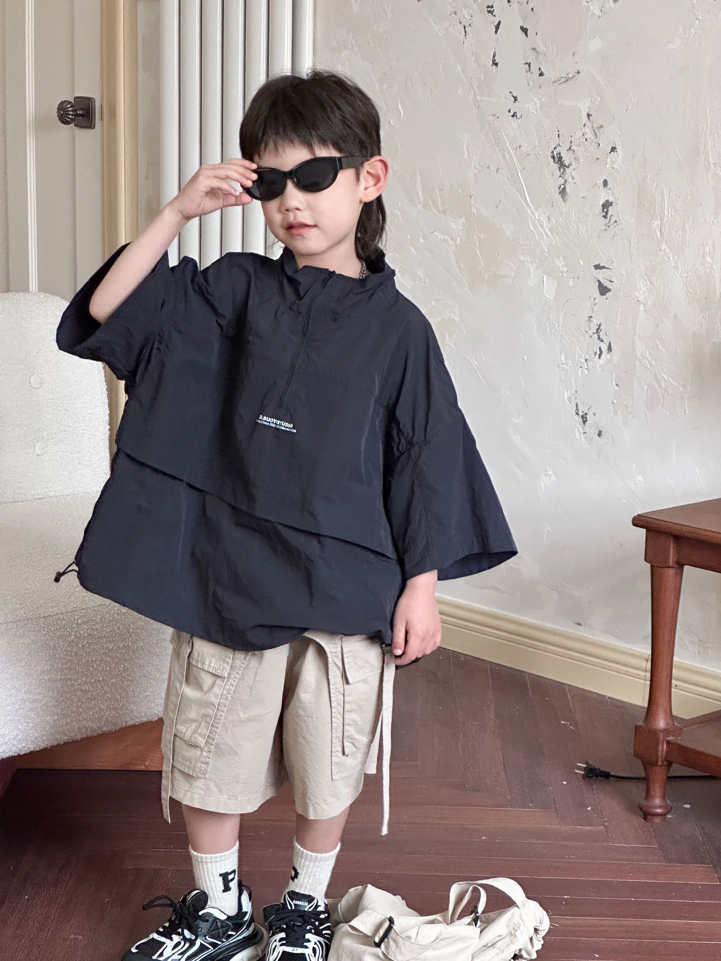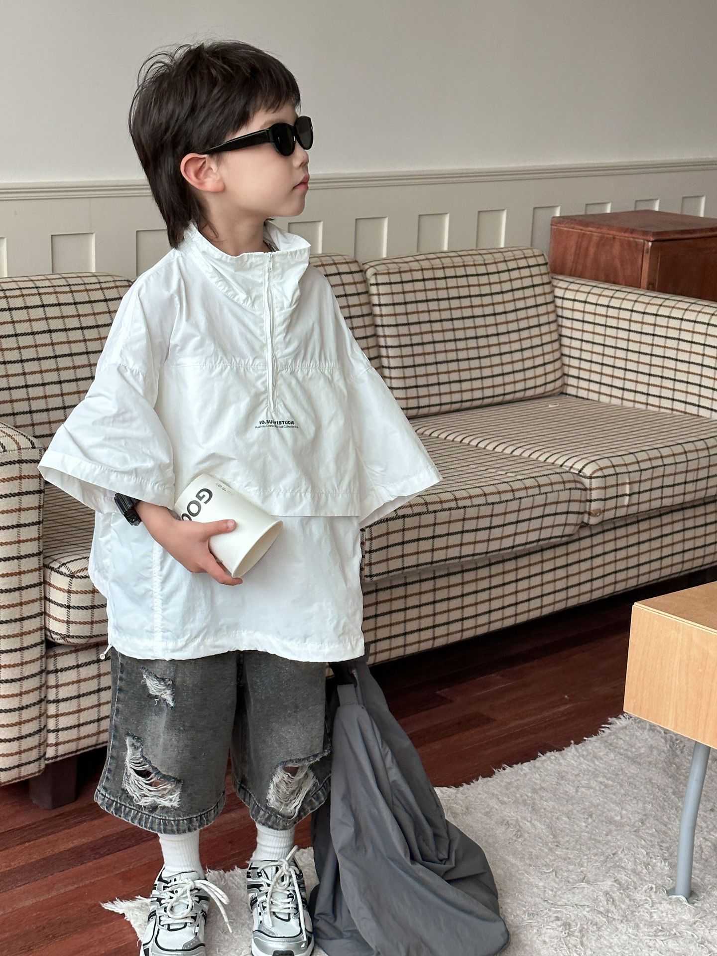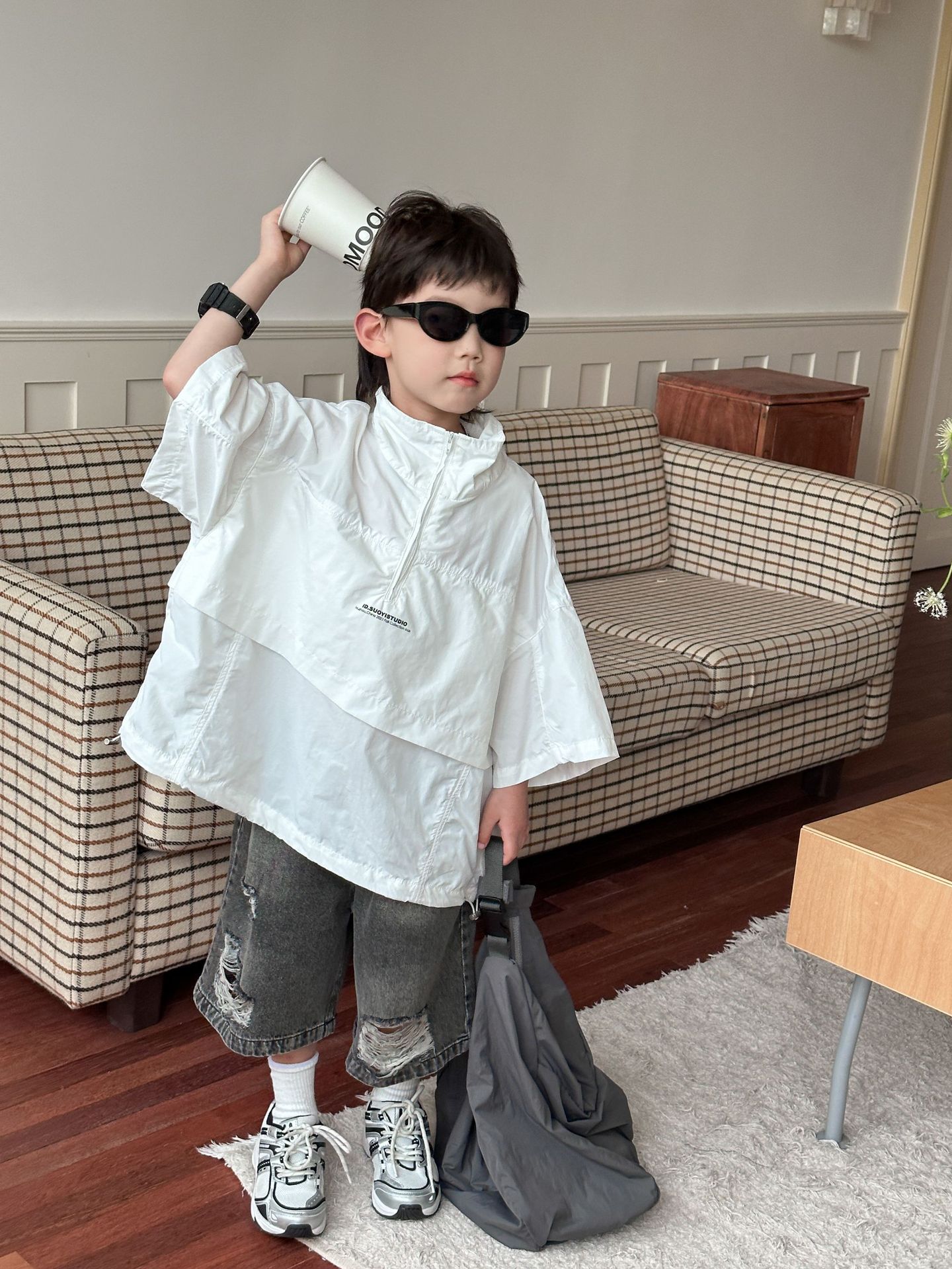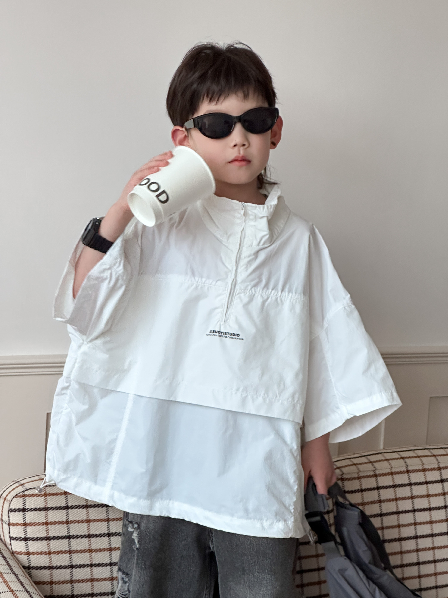 [클리어아웃 세일] 2025 여름 아동용 반팔 하프 지퍼 자외선 차단 탑 소년 소녀용 아웃도어 재킷