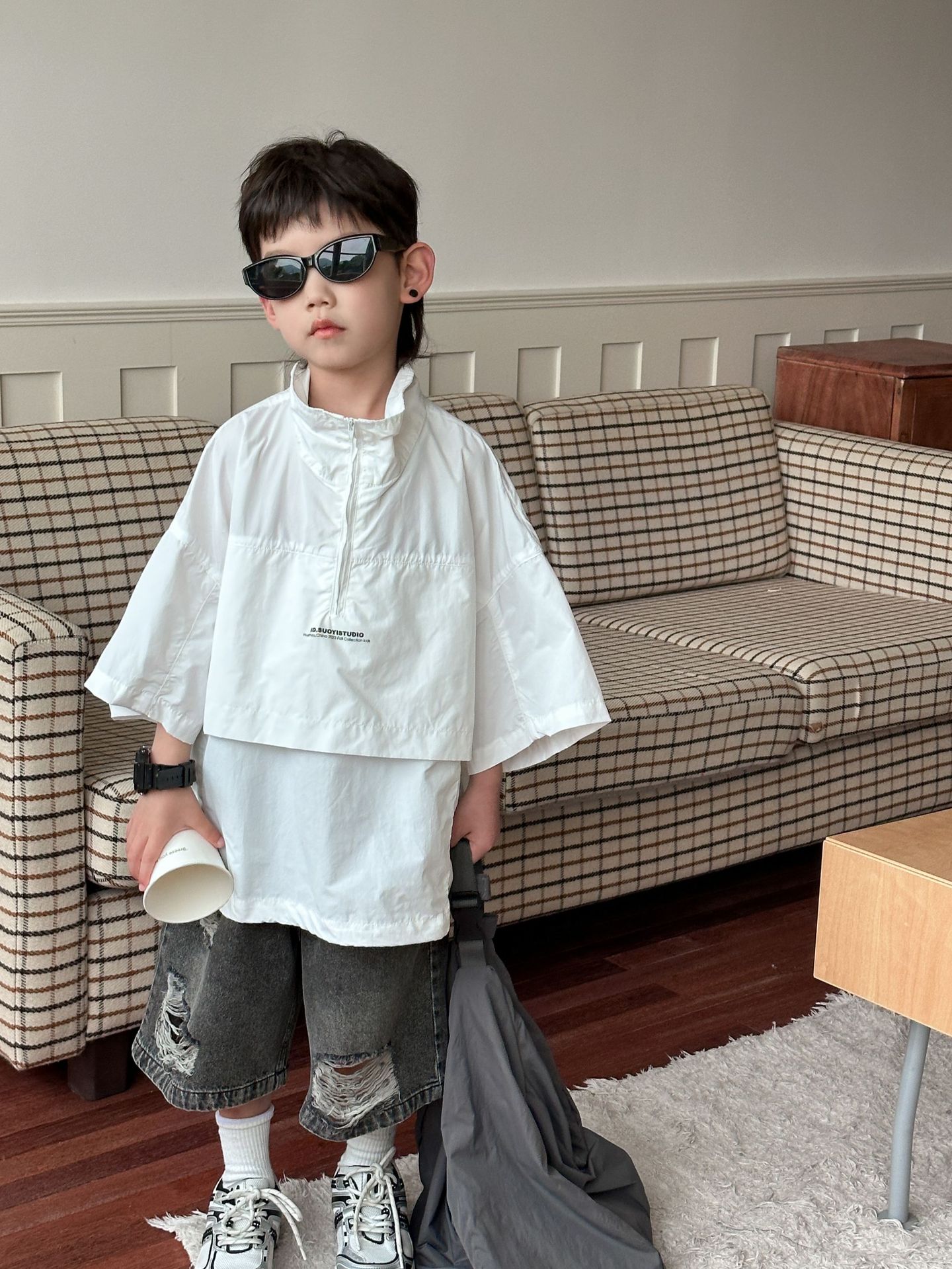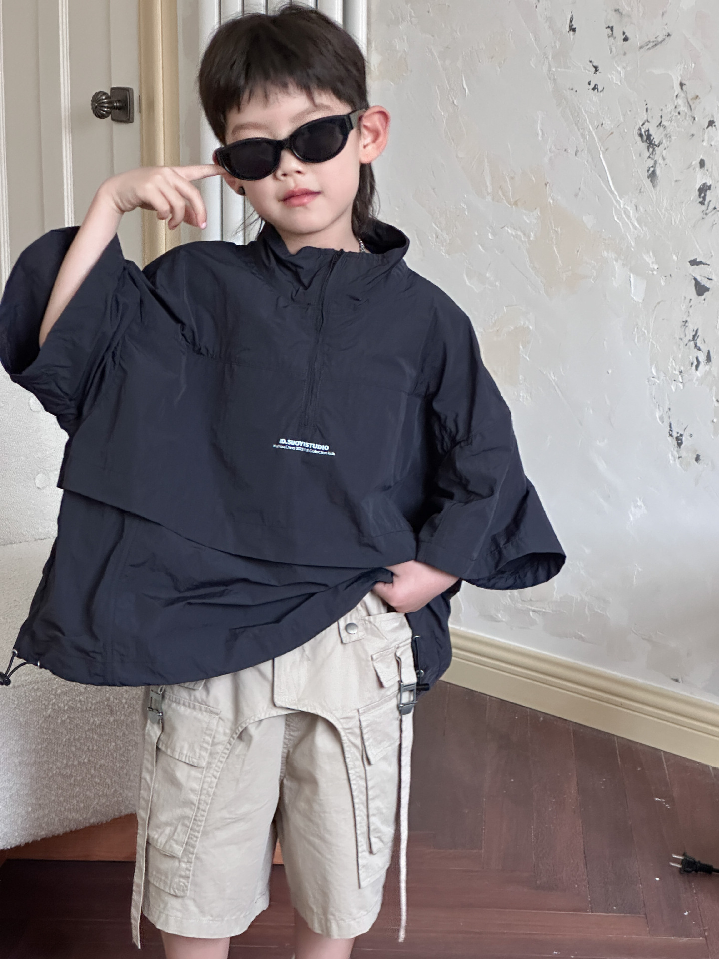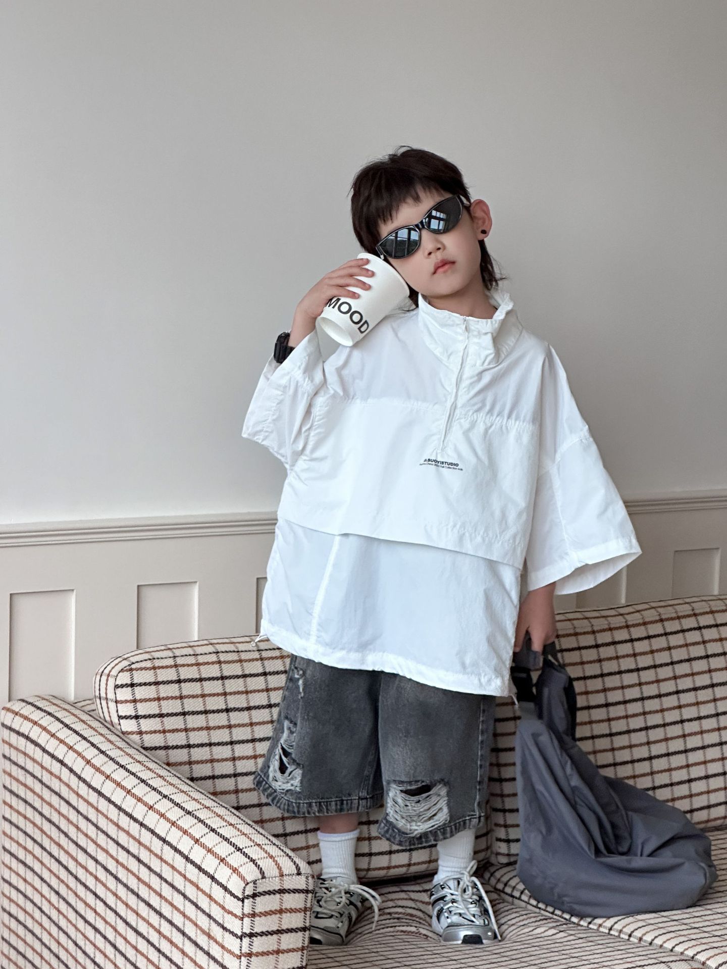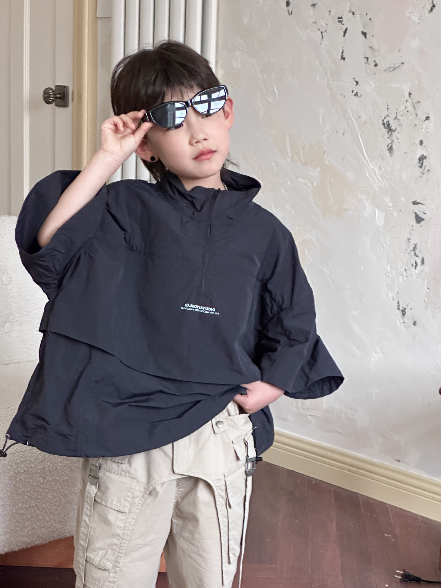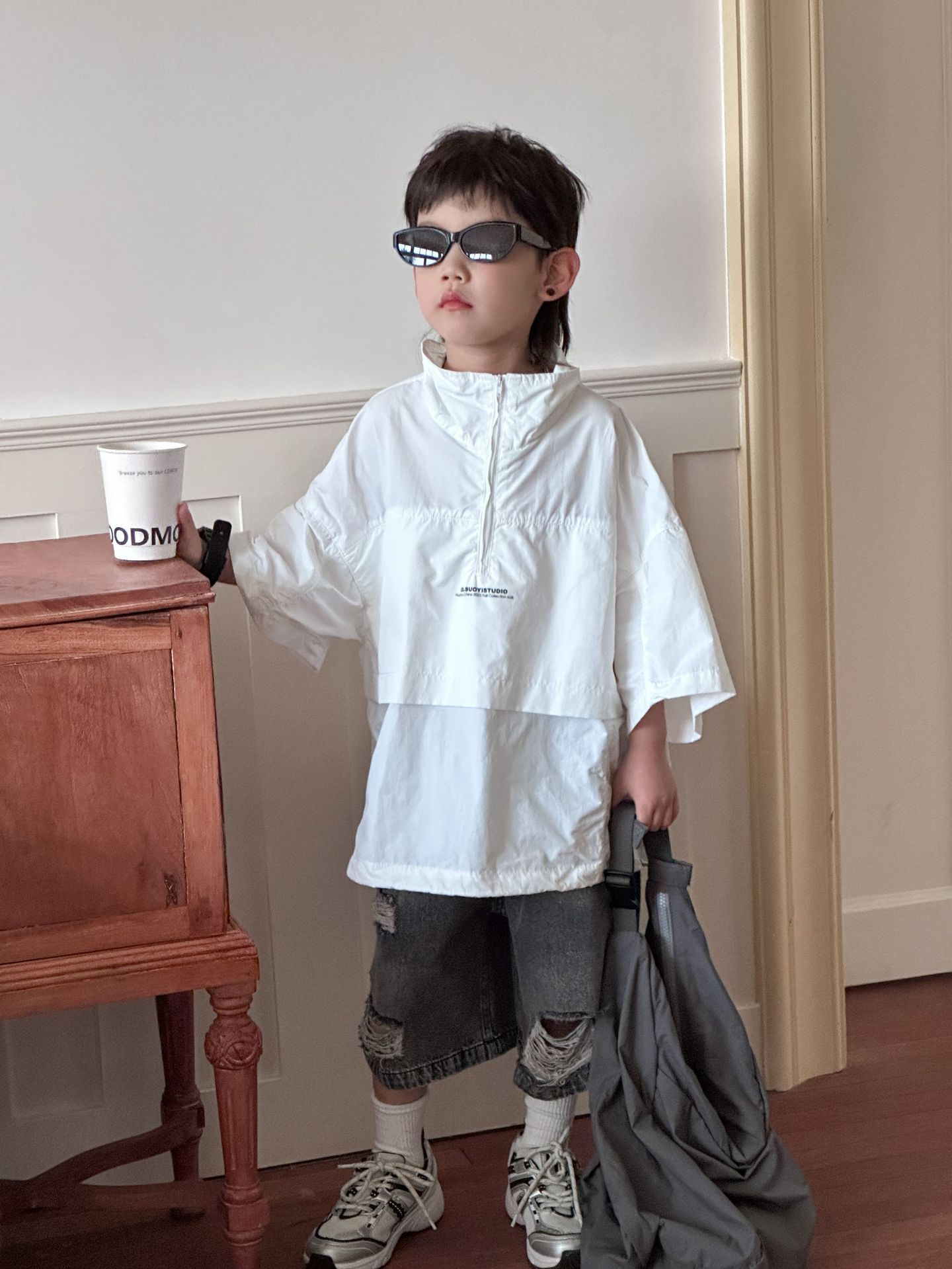 [클리어아웃 세일] 2025 여름 아동용 반팔 하프 지퍼 자외선 차단 탑 소년 소녀용 아웃도어 재킷