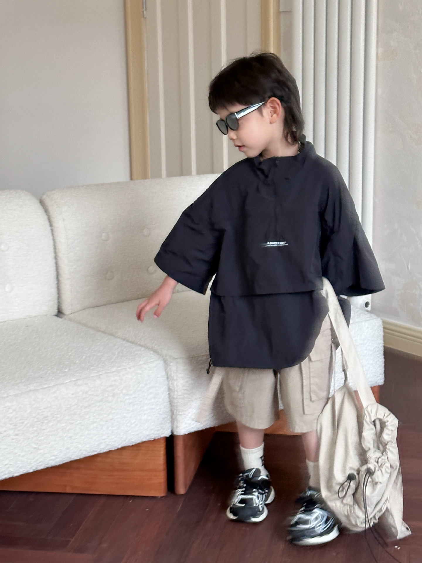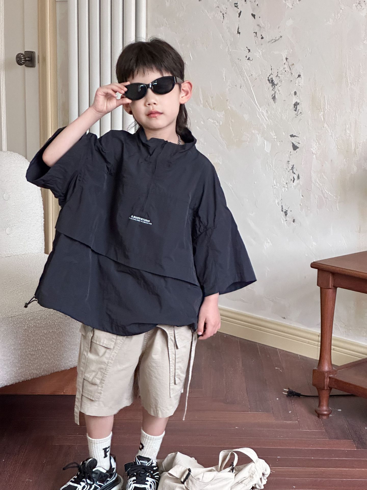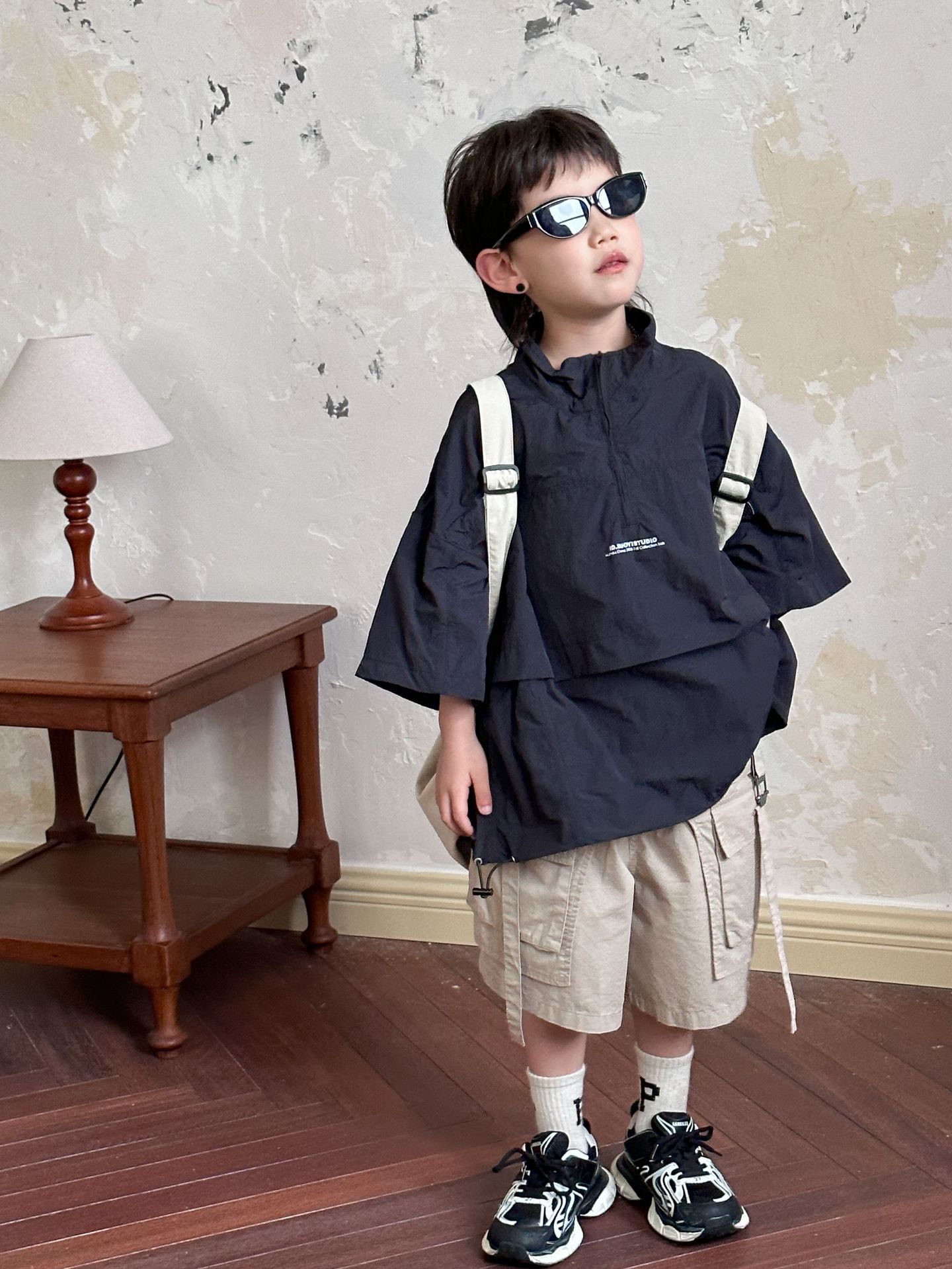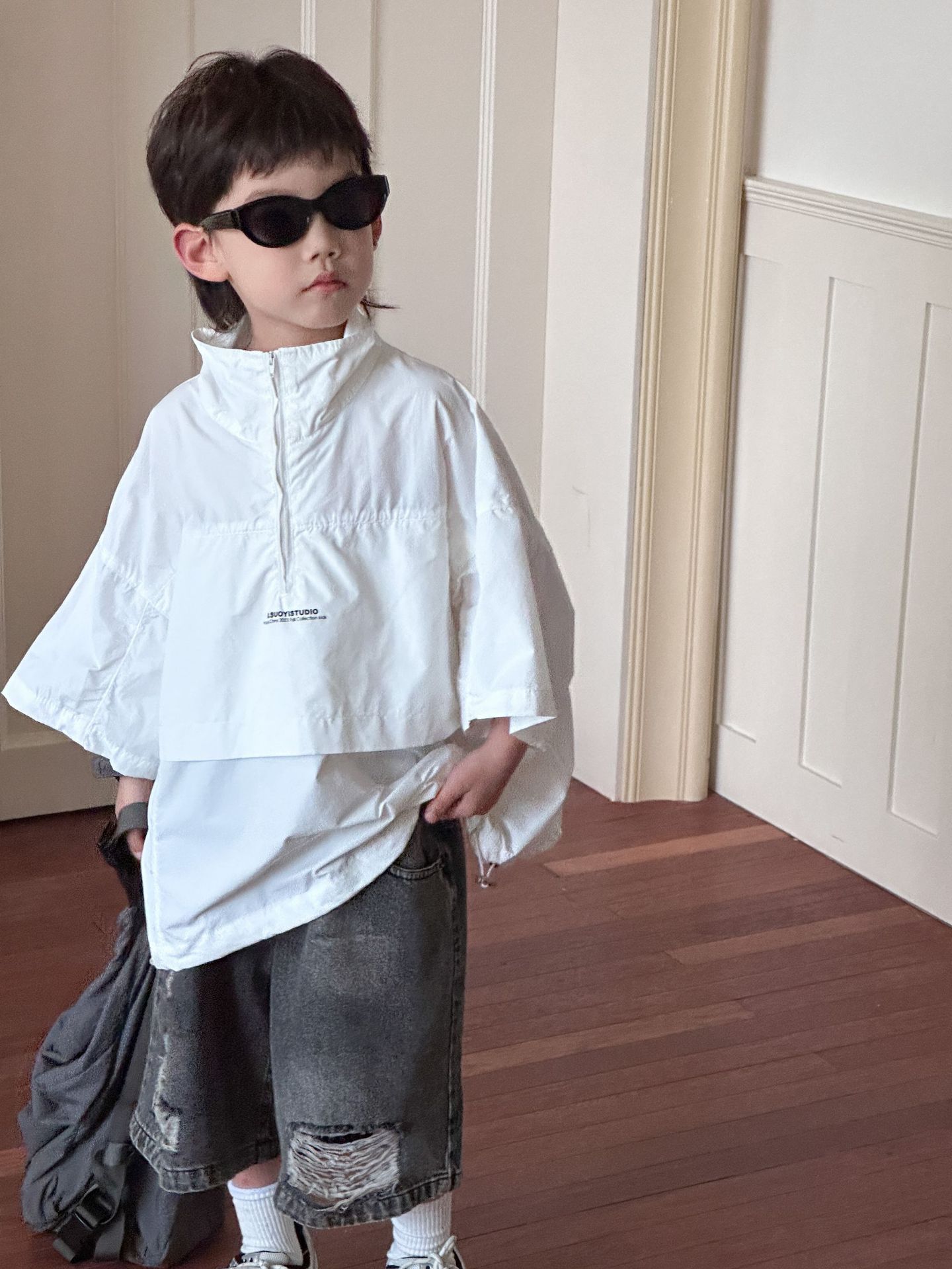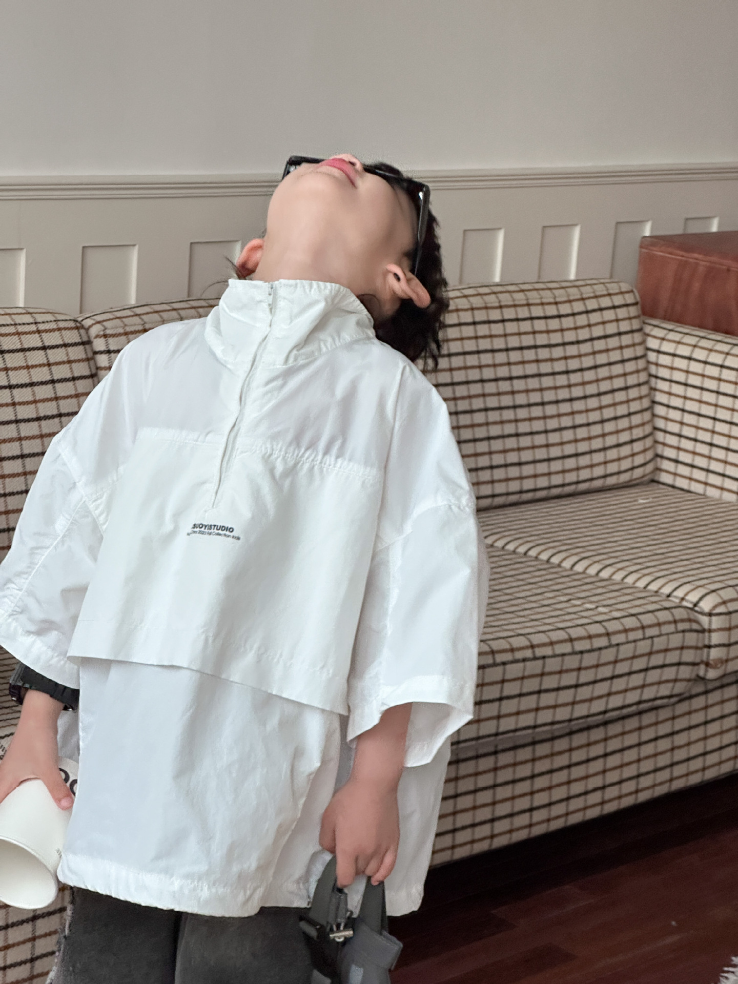 [클리어아웃 세일] 2025 여름 아동용 반팔 하프 지퍼 자외선 차단 탑 소년 소녀용 아웃도어 재킷