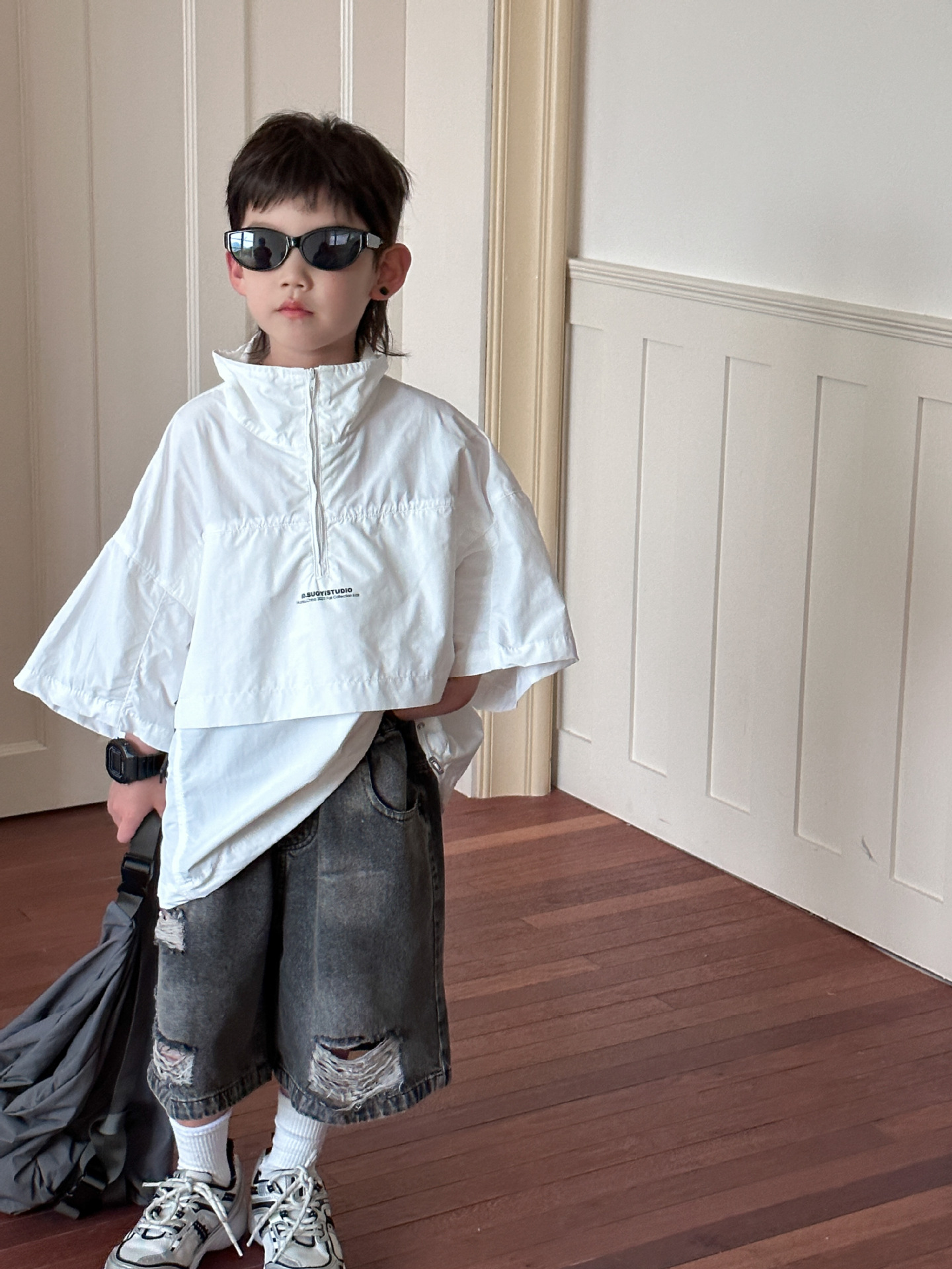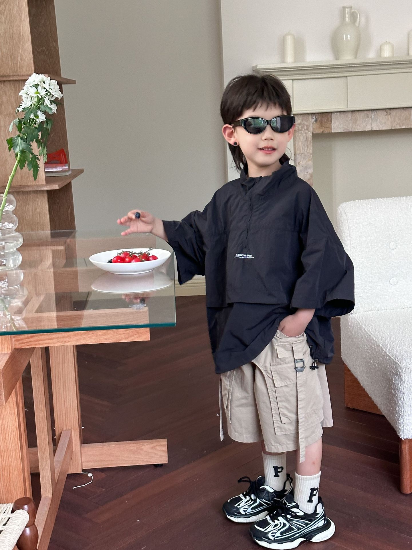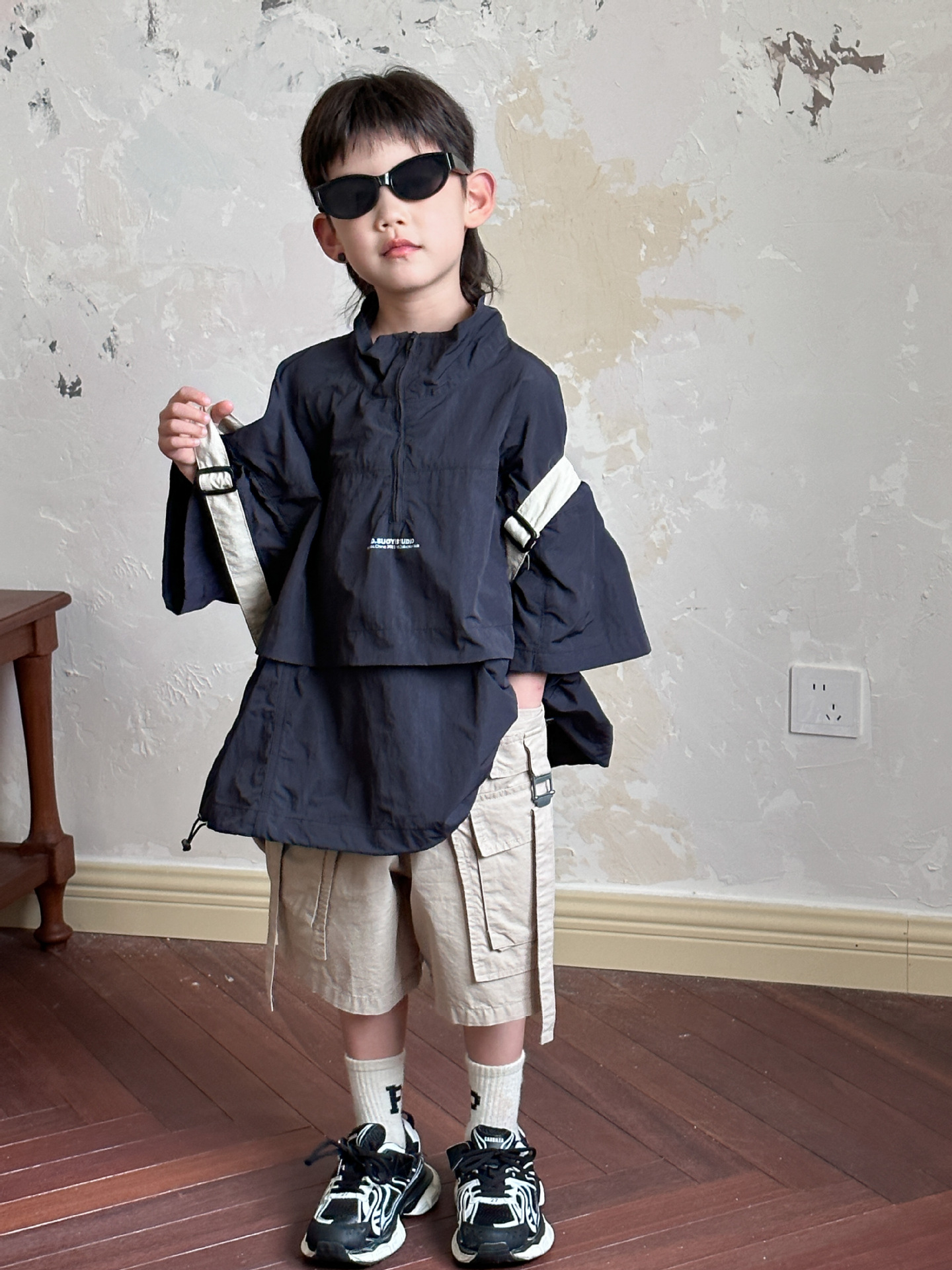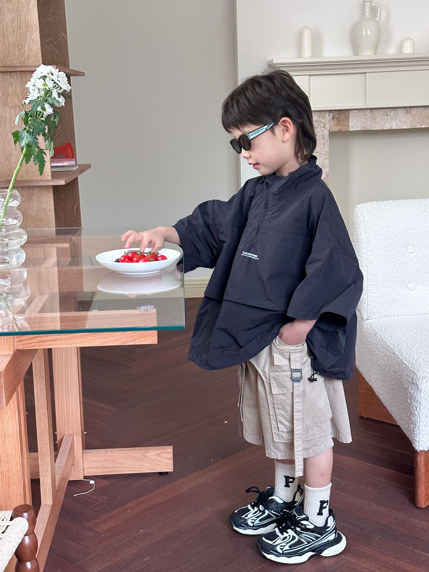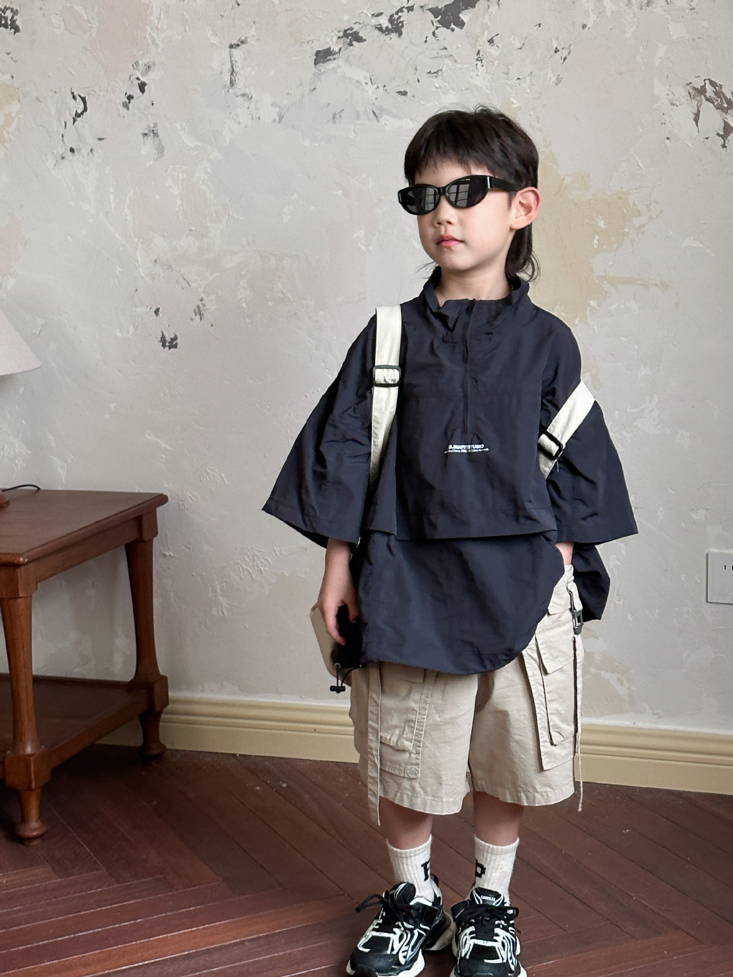 [클리어아웃 세일] 2025 여름 아동용 반팔 하프 지퍼 자외선 차단 탑 소년 소녀용 아웃도어 재킷
