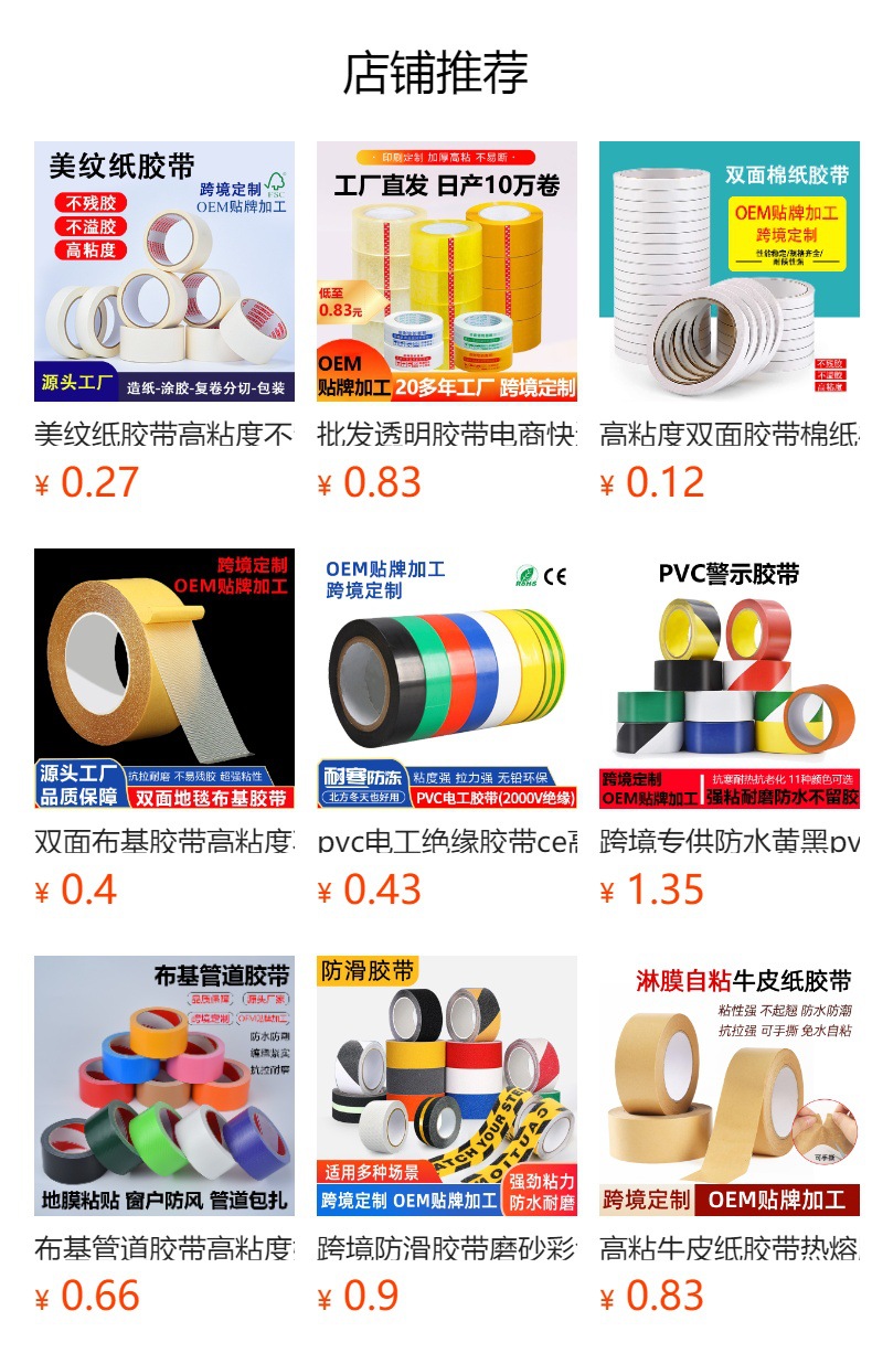 6.关于厚度 由于胶带本身存在薄厚批次不同,宽厚尺寸为手工直尺测量,误差0.2-0.3cm内属于正常;收货如需测量尺寸请用直尺测量,勿用卡尺测量,以免得出不准确的数据! 整箱购买更优惠,量大从优!详情请咨询客服 支持包装、尺寸定制