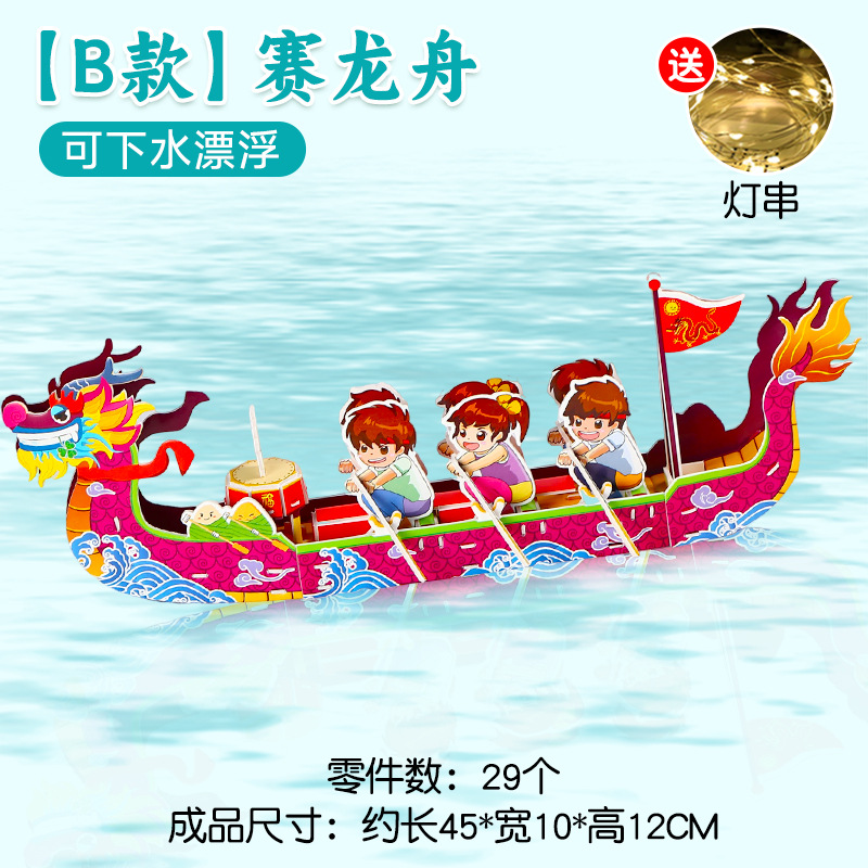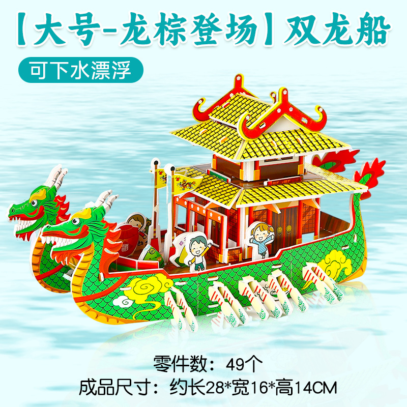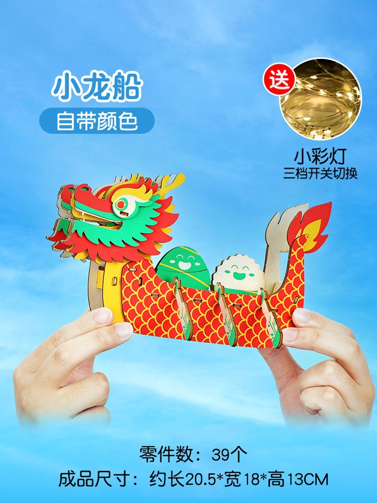 드래곤 보트 축제 드래곤 보트 퍼즐 수제 DIY 소재 가방 만들기 유치원 3D 드래곤 보트 모델 장난감 장식품스토어 가기