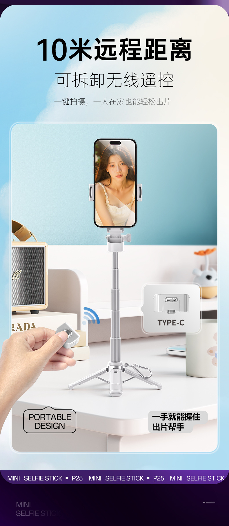 P25 휴대 전화 셀카 스틱 여행 휴대용 휴대용 사진 삼각대 손떨림 방지 개폐식 셀카 스틱 여행 휴대용