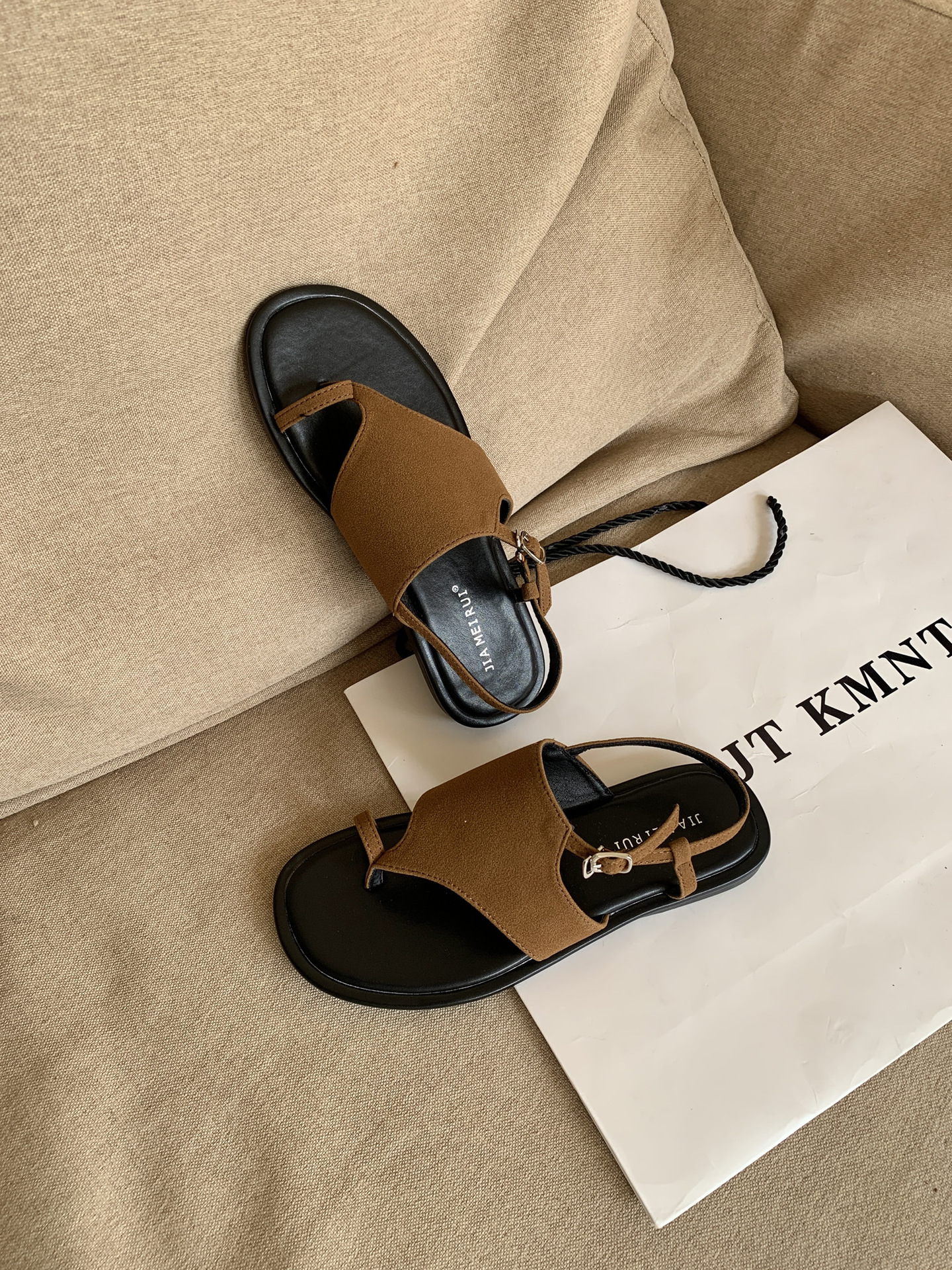 2025년 여름 신상 플랫 바닥 게으른 휴가용 하프 슬립온 여성 샌들