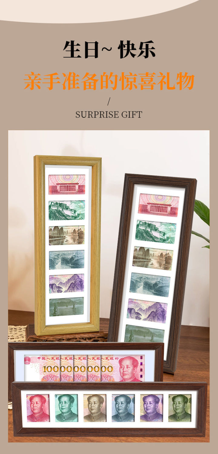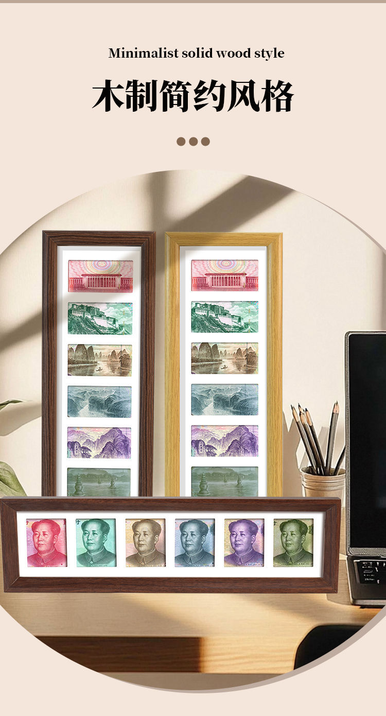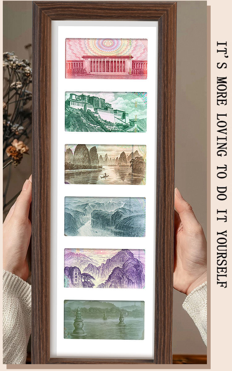 배포 6단 블랙 월넛 액자, 운이 좋은 멀티 골드 액자, RMB 장식 그림, 심플한 수직 테이블