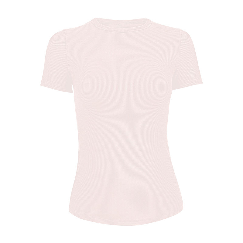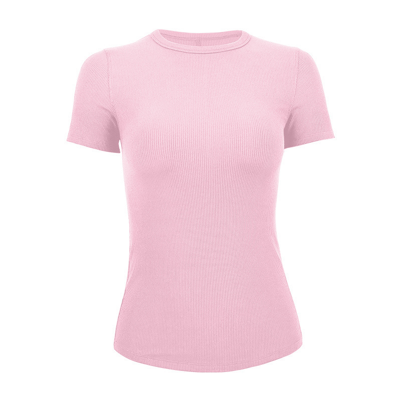 2025 봄 여름 실크 모달 스포츠 티셔츠 스레드 라운드 넥 요가웨어 고탄성 통기성 요가 반팔 여성