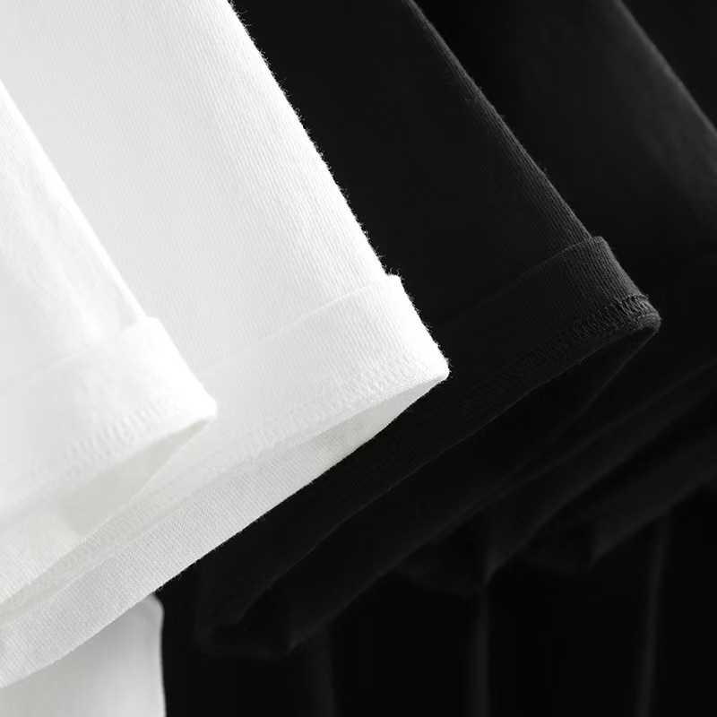 아메리칸 화이트 티셔츠 여성용 오른쪽 어깨 반팔 유럽 제품 2025 새로운 슬림 라운드 넥 퓨어 코튼 레이어드 탑