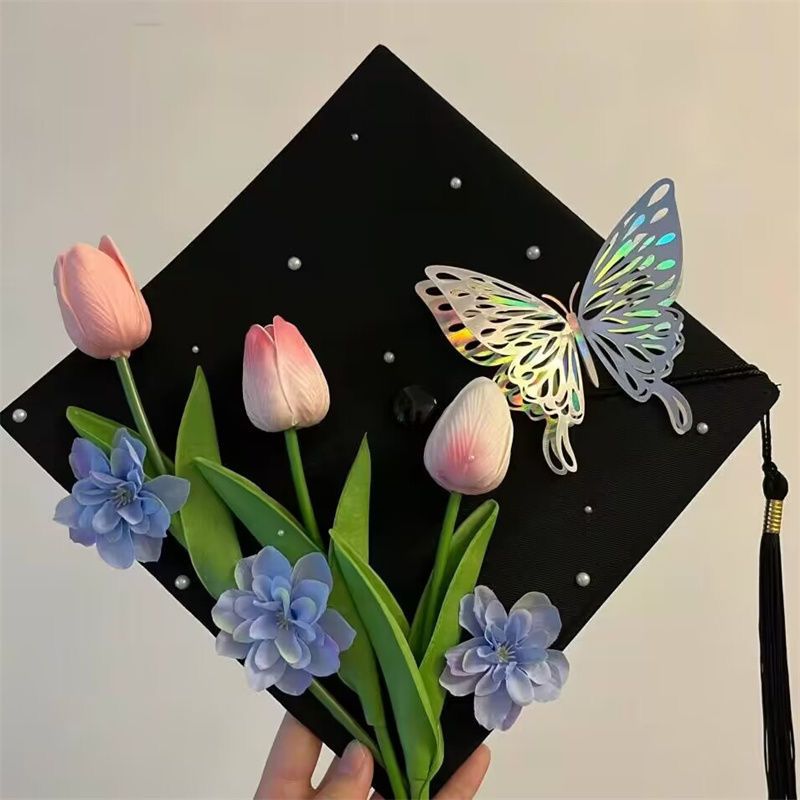 DIY 학사 수제 완성 된 머리핀 꽃 재료 시뮬레이션 꽃 대학 학생 졸업 마스터 캡 외국식 선물 도매스토어 가기