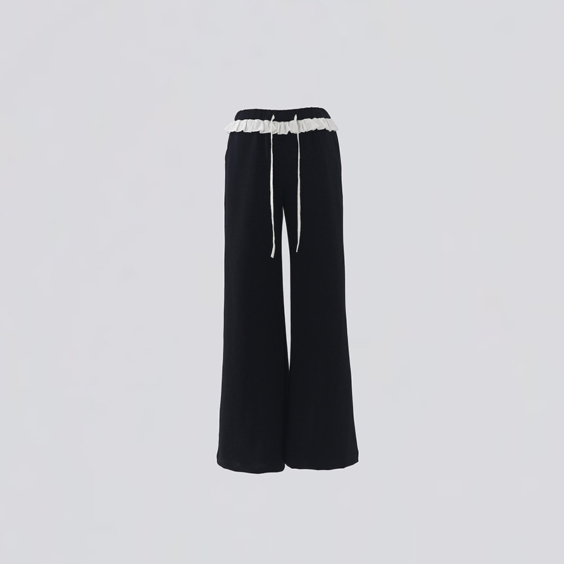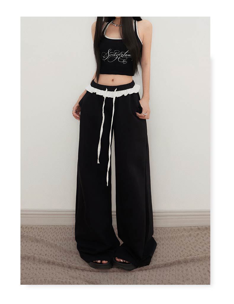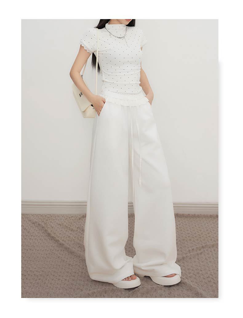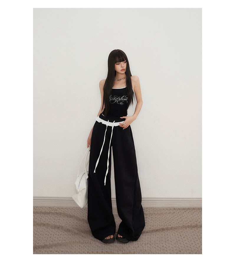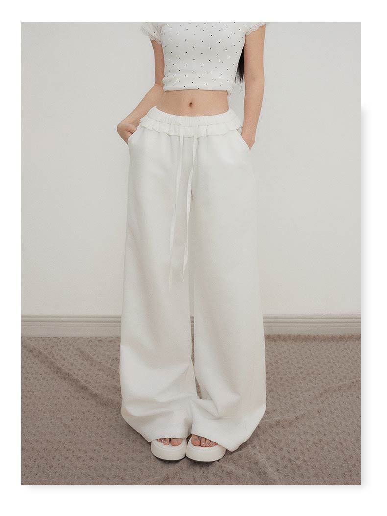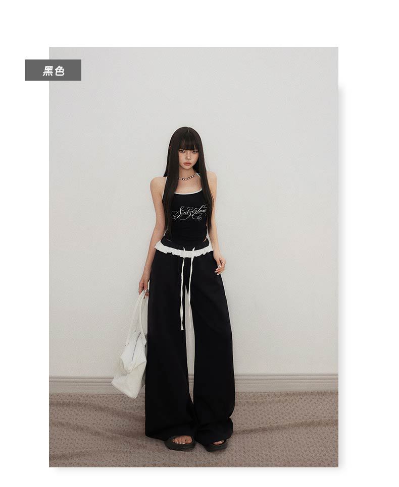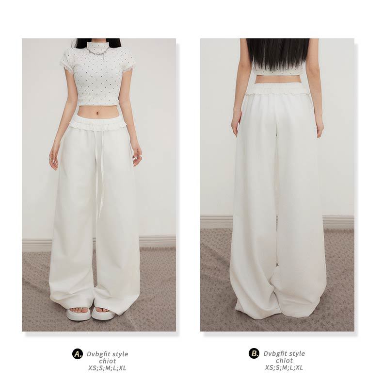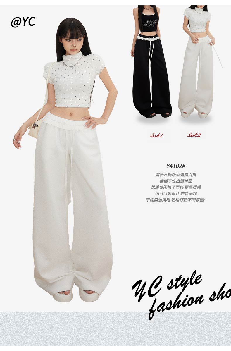 오렌지 실크 여성 의류 # 레트로 드로우 스트링 느슨한 허리 캐주얼 바지 여름 새로운 높은 허리 느슨한 레이스 올 매치 와이드 다리 바지