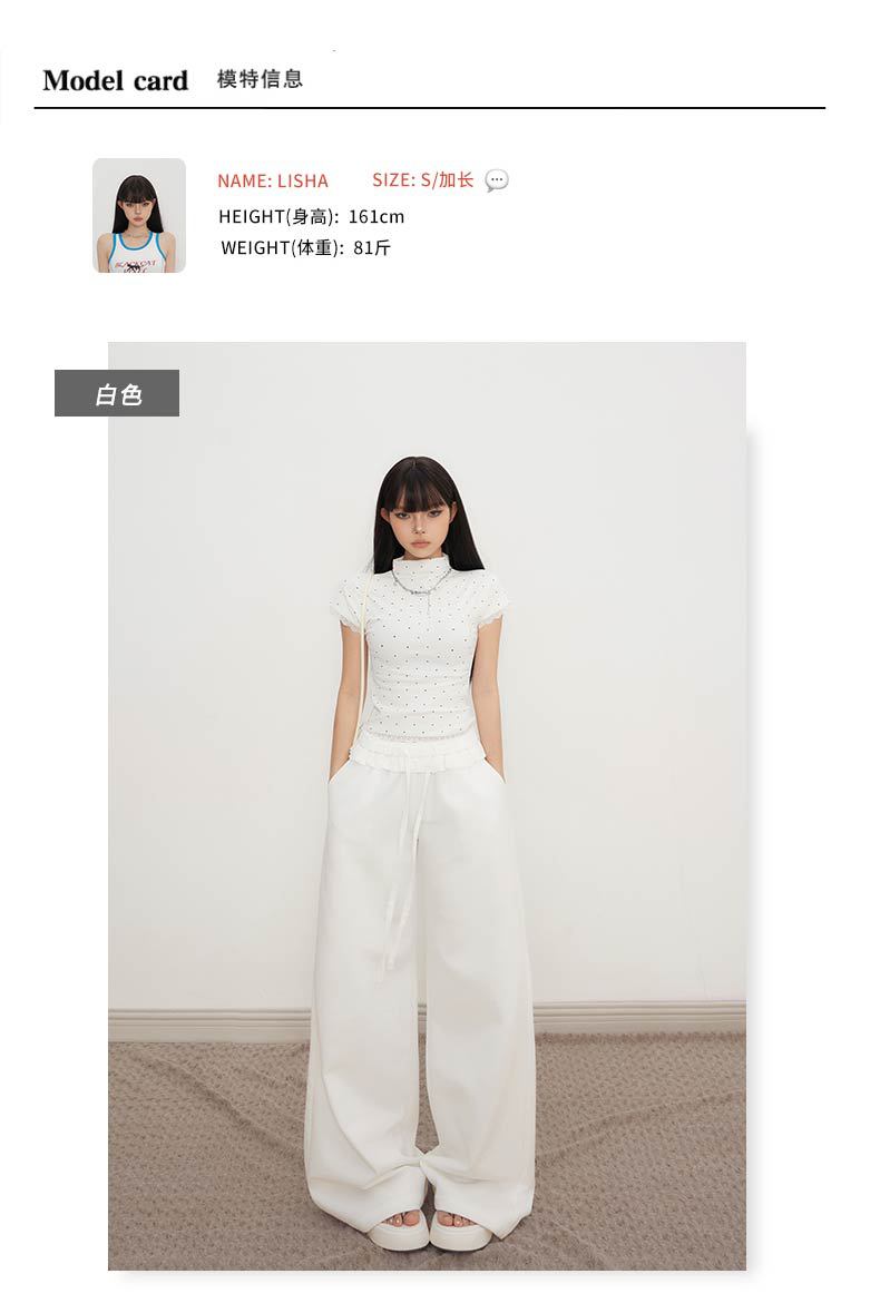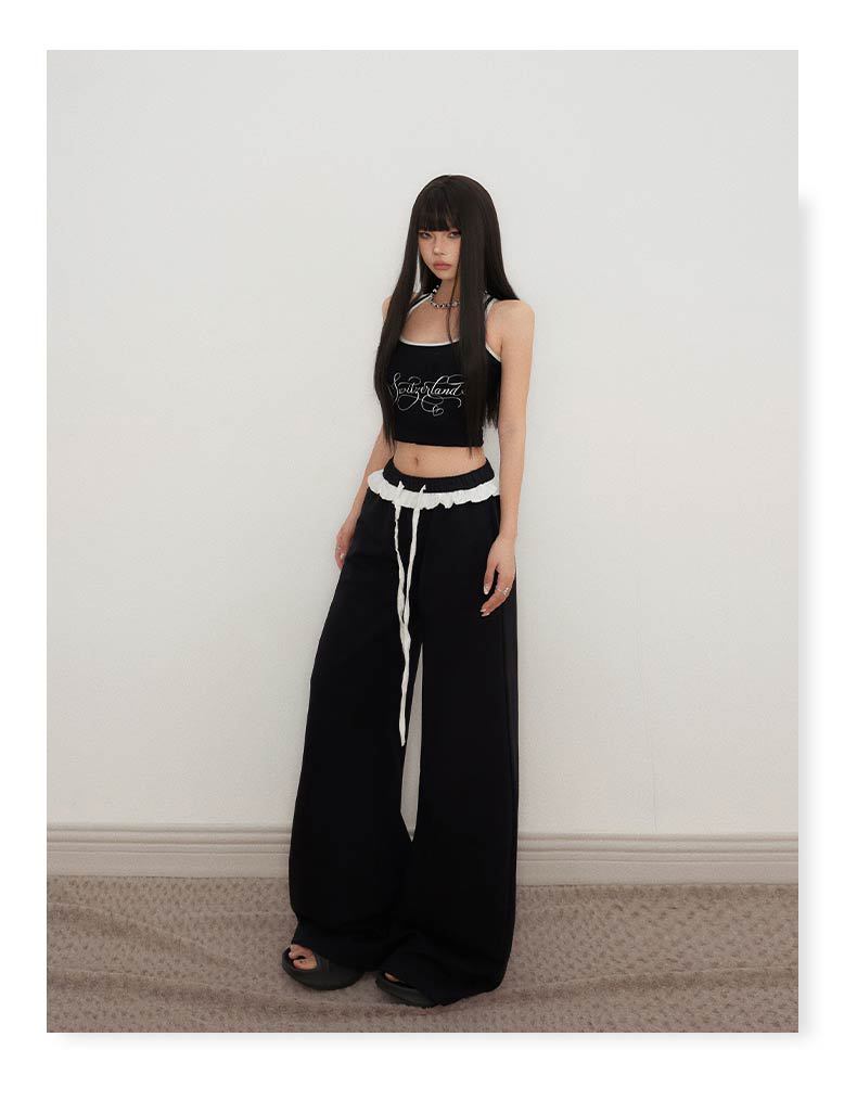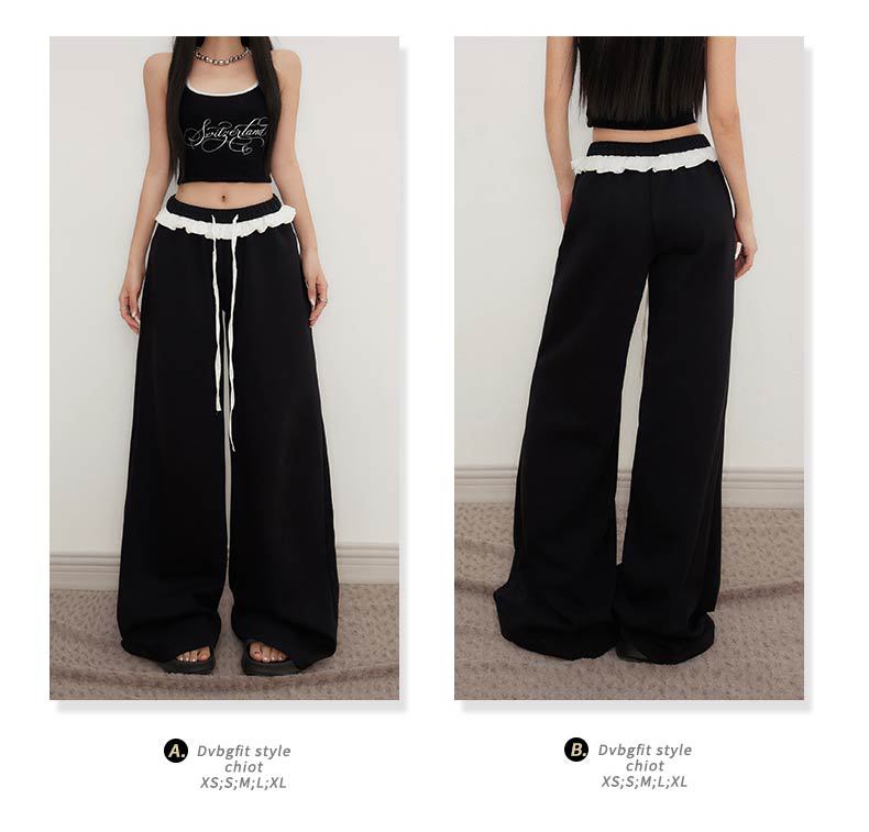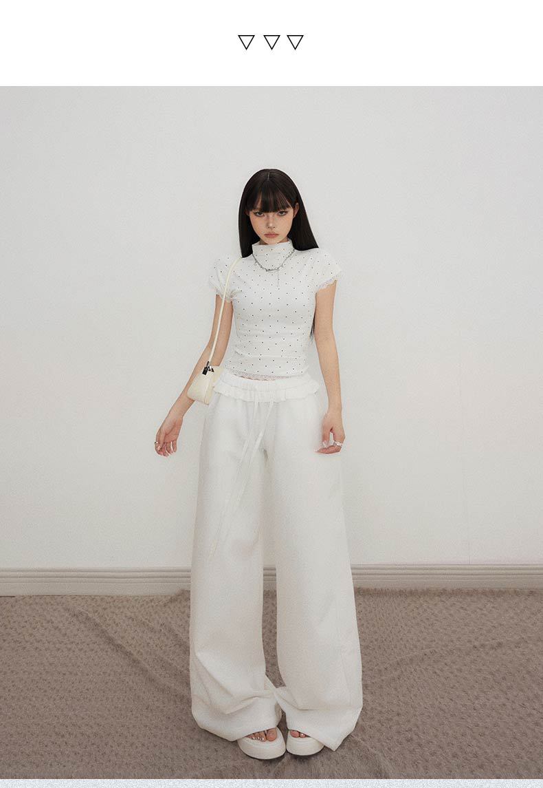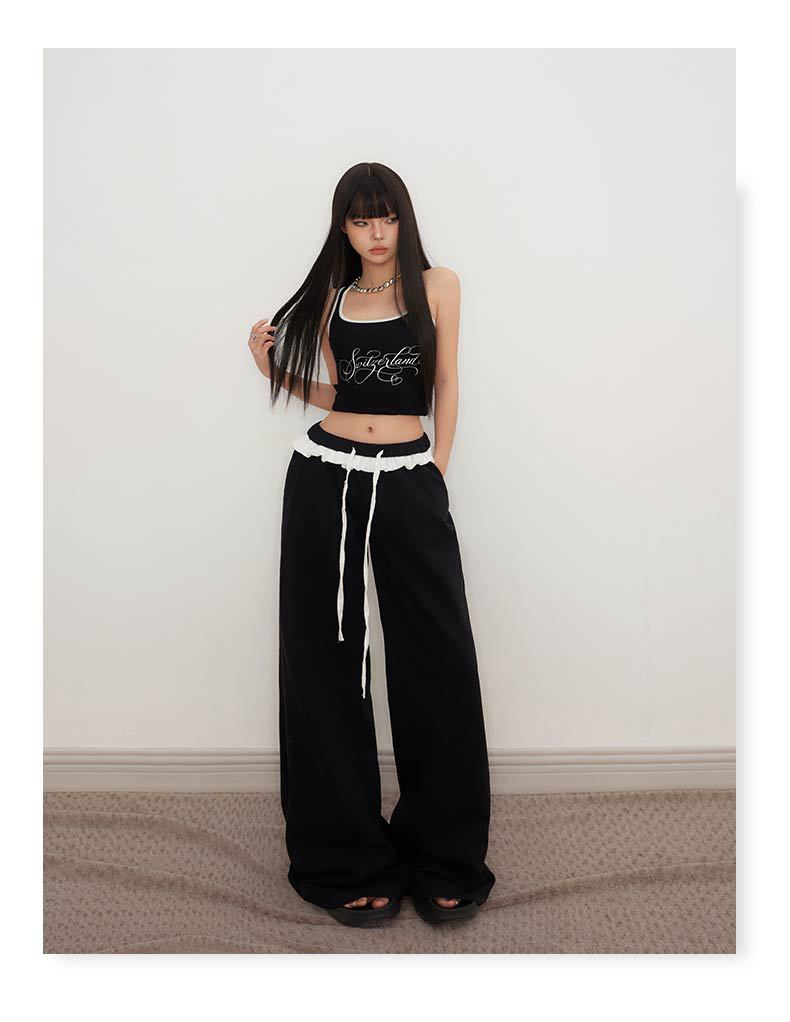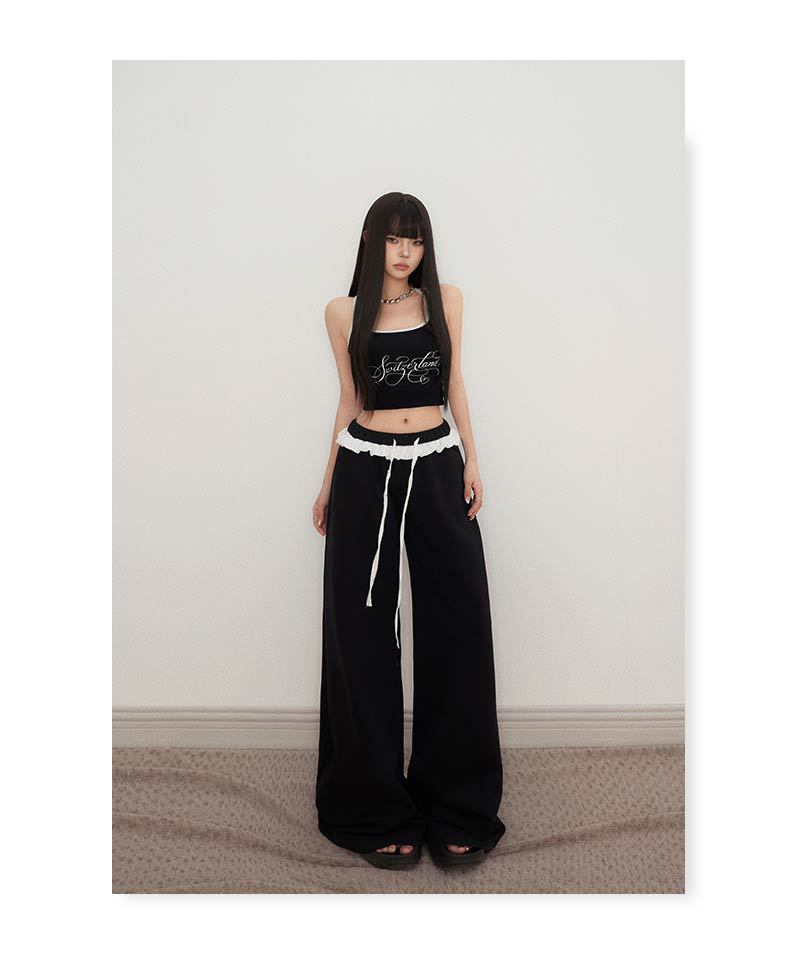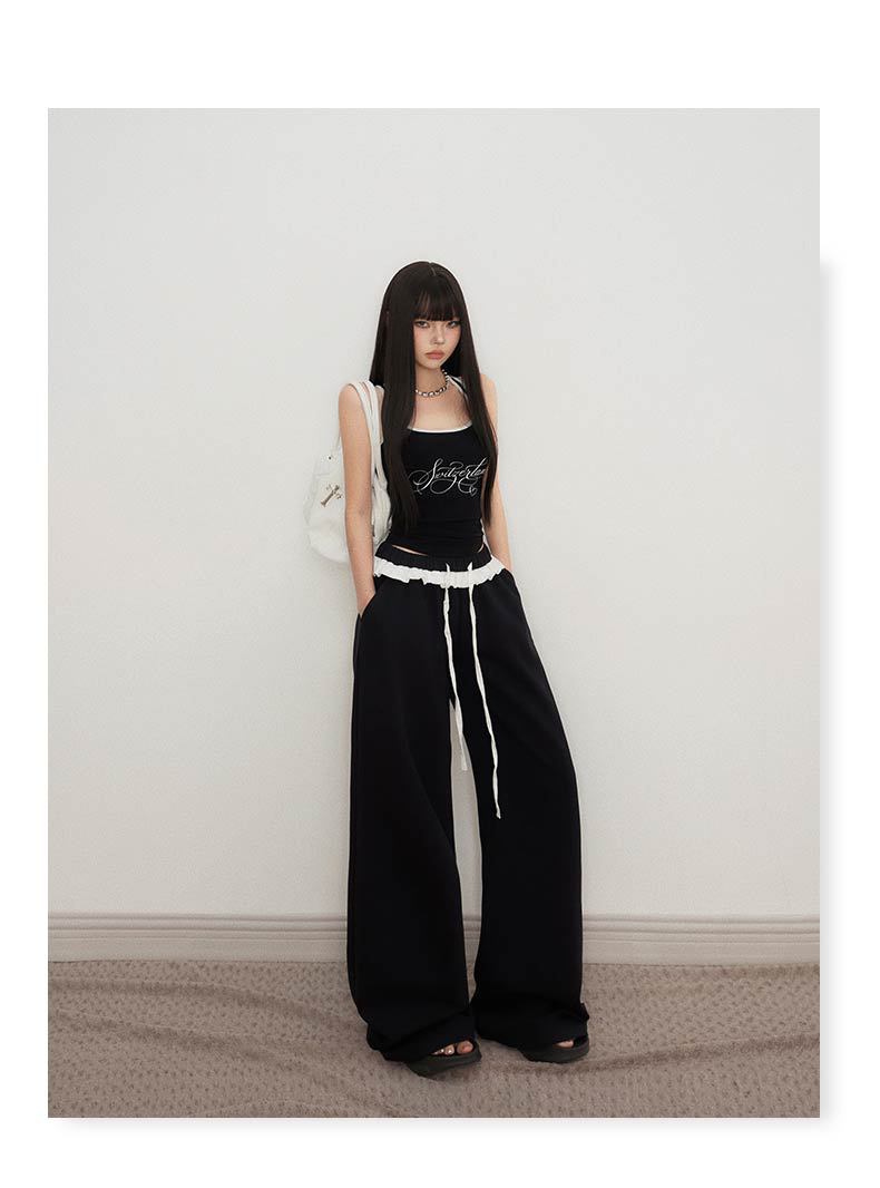 오렌지 실크 여성 의류 # 레트로 드로우 스트링 느슨한 허리 캐주얼 바지 여름 새로운 높은 허리 느슨한 레이스 올 매치 와이드 다리 바지