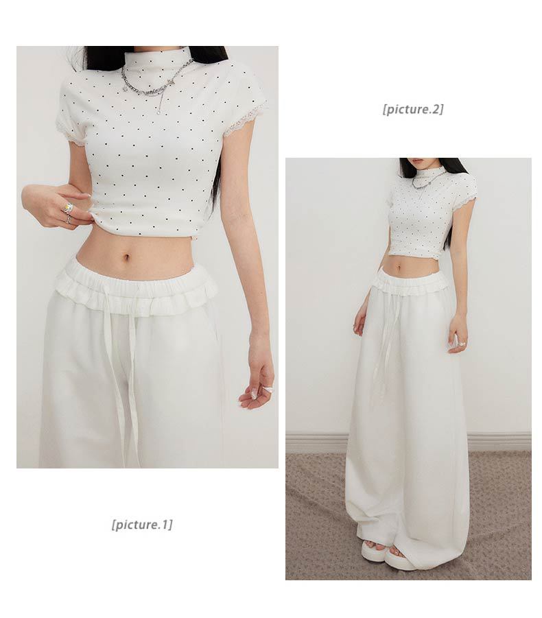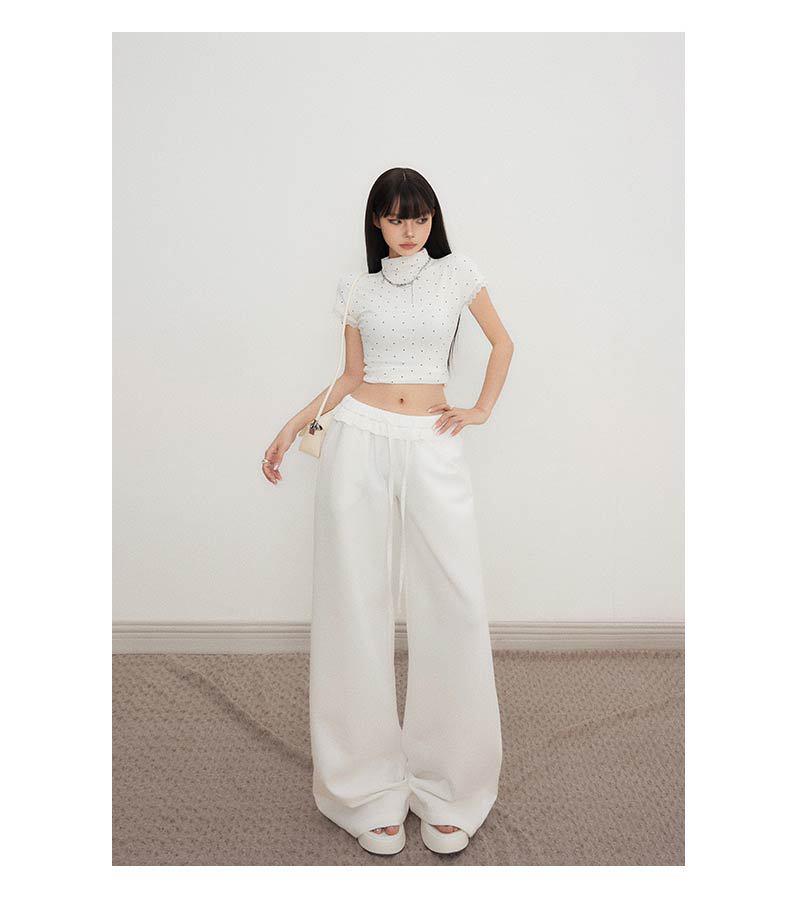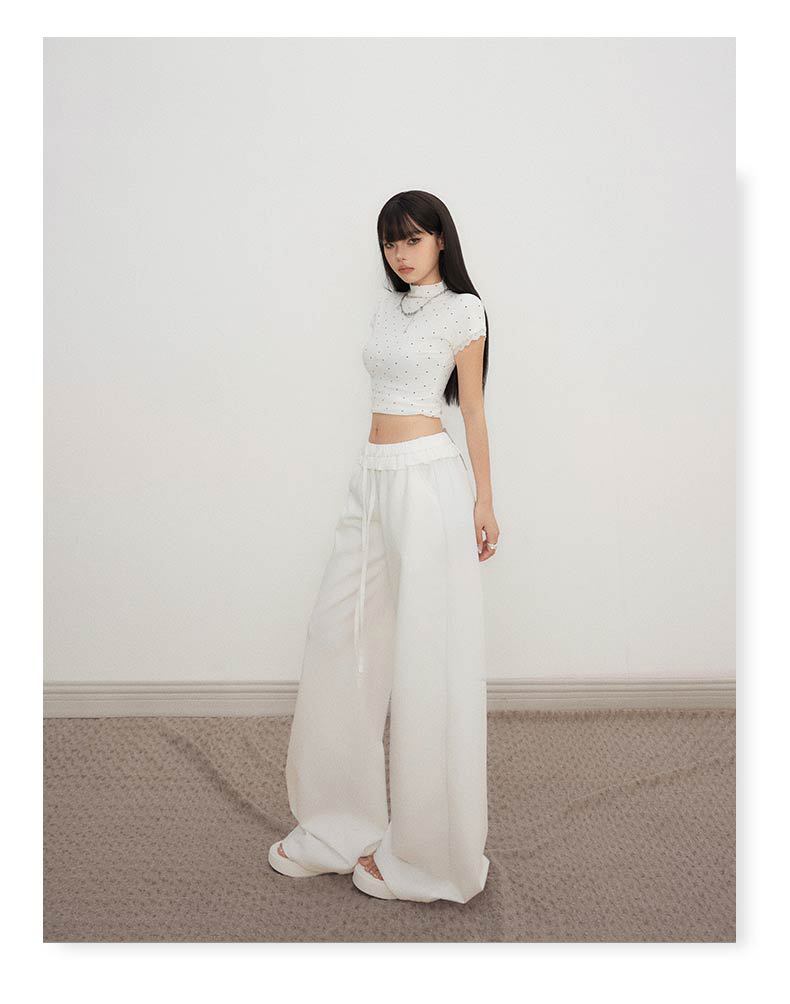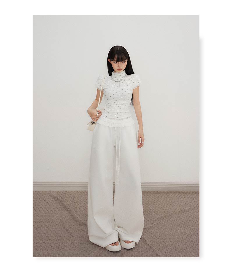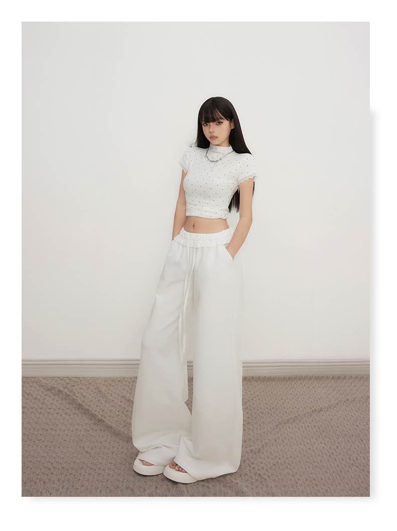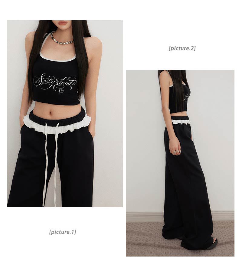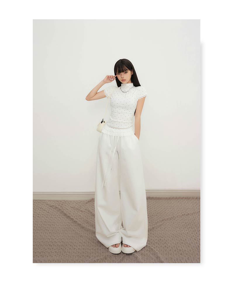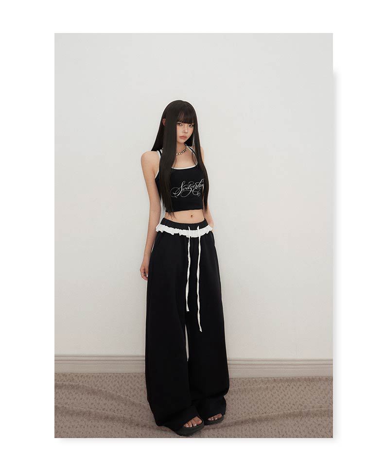 오렌지 실크 여성 의류 # 레트로 드로우 스트링 느슨한 허리 캐주얼 바지 여름 새로운 높은 허리 느슨한 레이스 올 매치 와이드 다리 바지