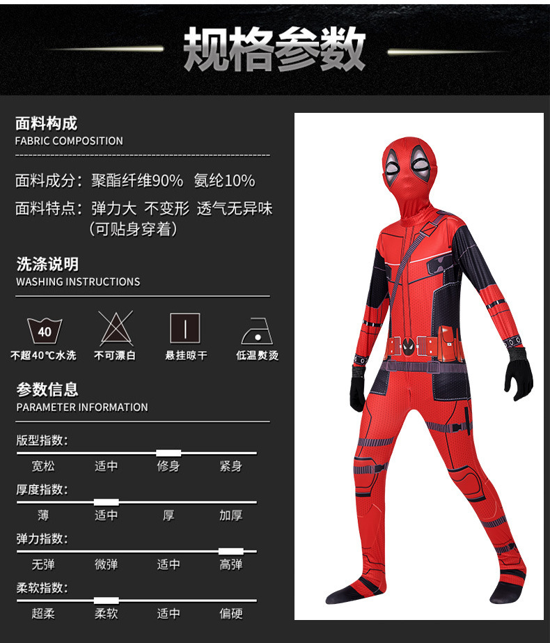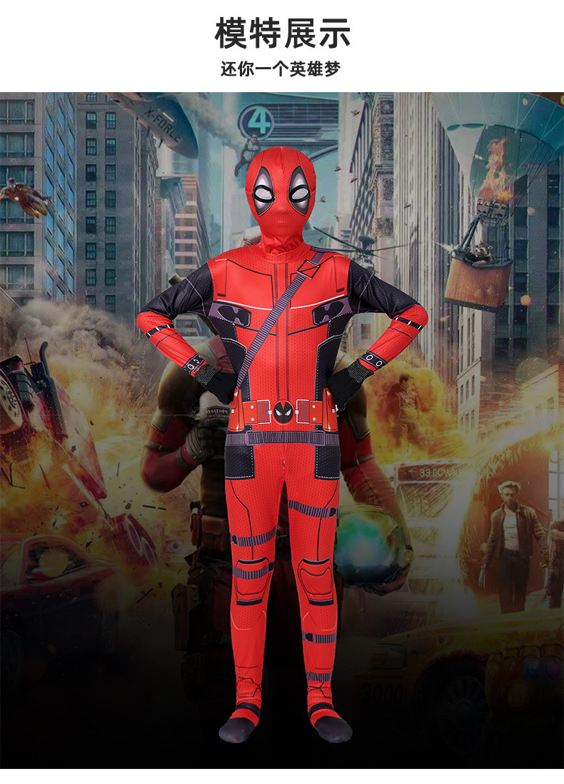 실제 데드 풀 타이트 원피스 슈트 코스프레 의상 할로윈 슈트 어린이 애니메이션 의상스토어 가기