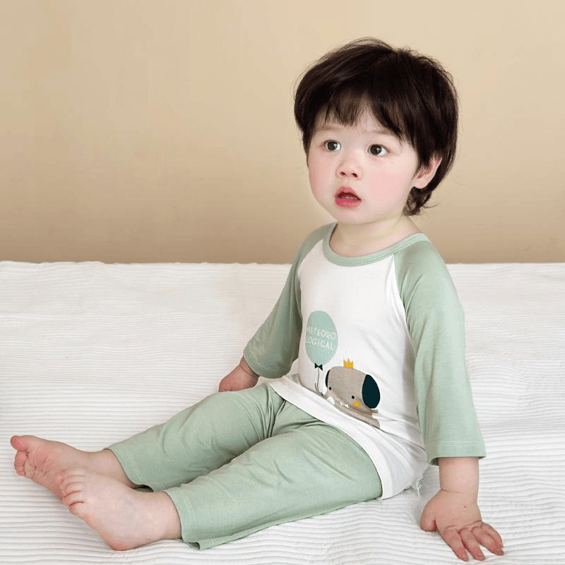 어린이 가정 의류 세트 여름 얼음 실크 얇은 7부 소매 잠옷 소년과 소녀 아기 통기성 에어컨 의류 여름스토어 가기