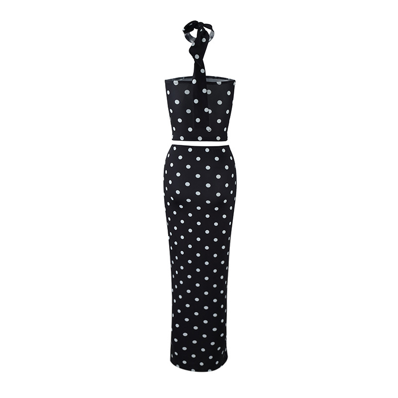 2025 여름 유럽과 미국의 새로운 우아한 북극점 인쇄 배꼽 튜브 탑 작은 조끼 스커트 투피스 세트