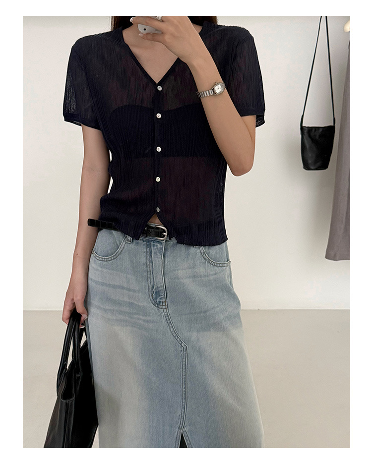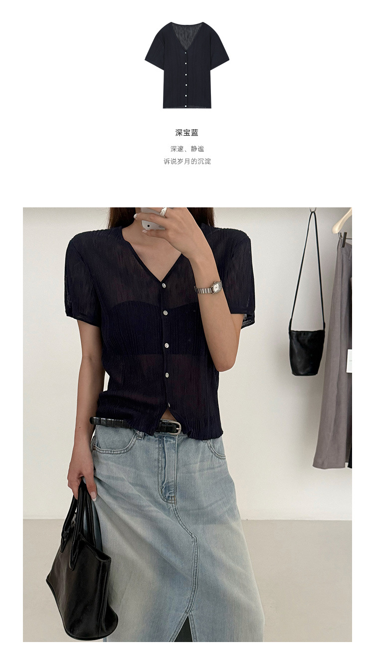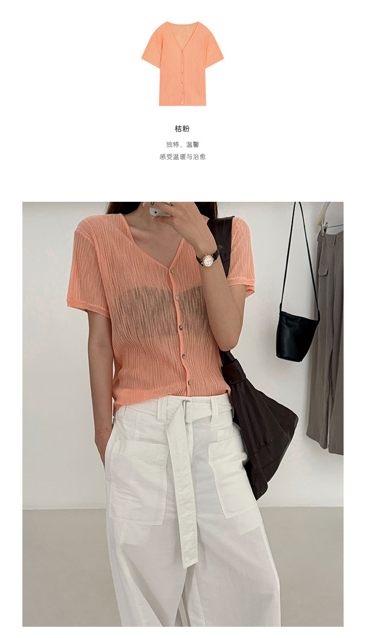 CLEAN SPACE 휴식 V-neck 반팔 티셔츠 여성용 2025 새로운 피부 친화적 인 통기성 편안한 스웨터 55078스토어 가기
