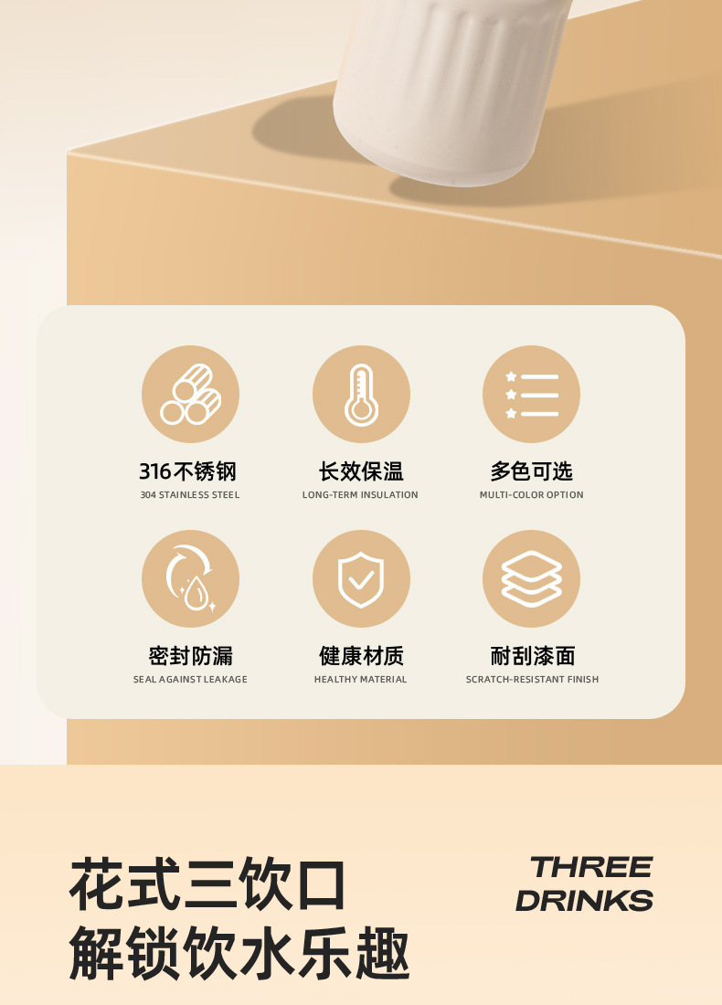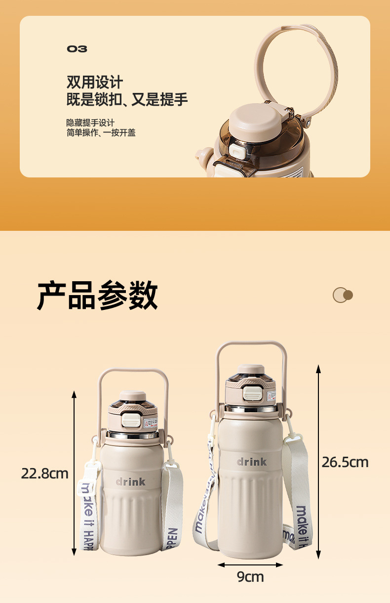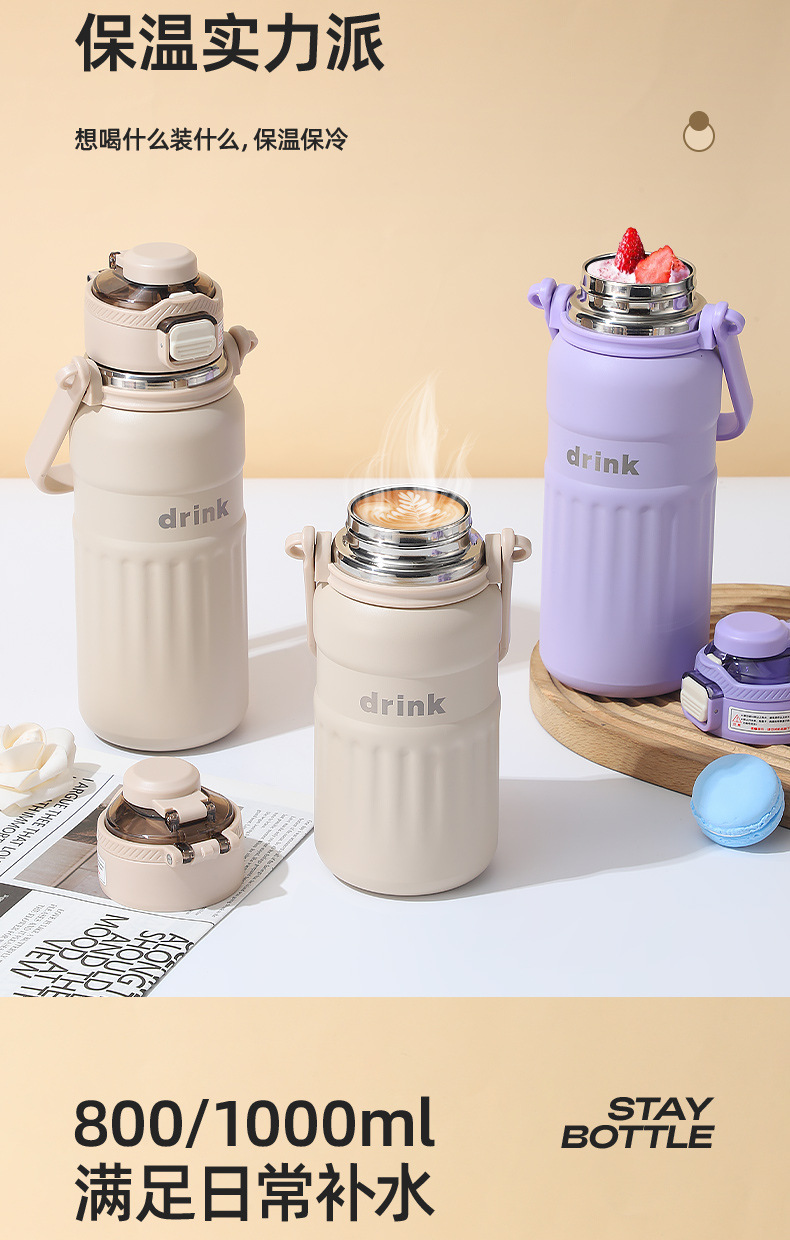손잡이가 있는 316 스테인리스 보온병, 탄성 빨대컵, 야외 휴대용 등산 물병, 선물용 휴대용스토어 가기