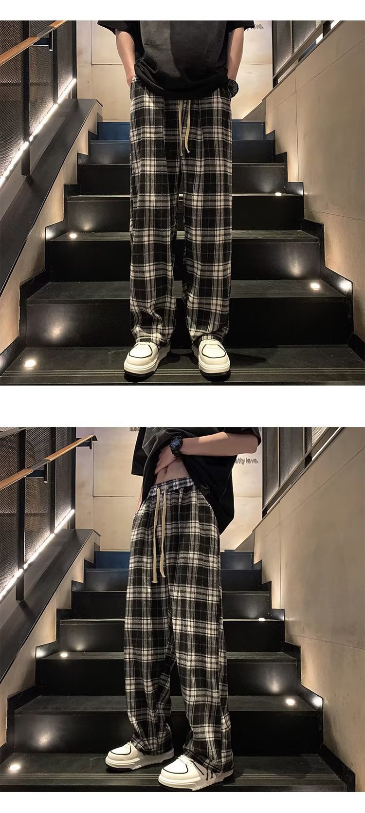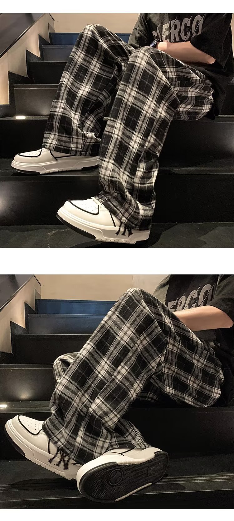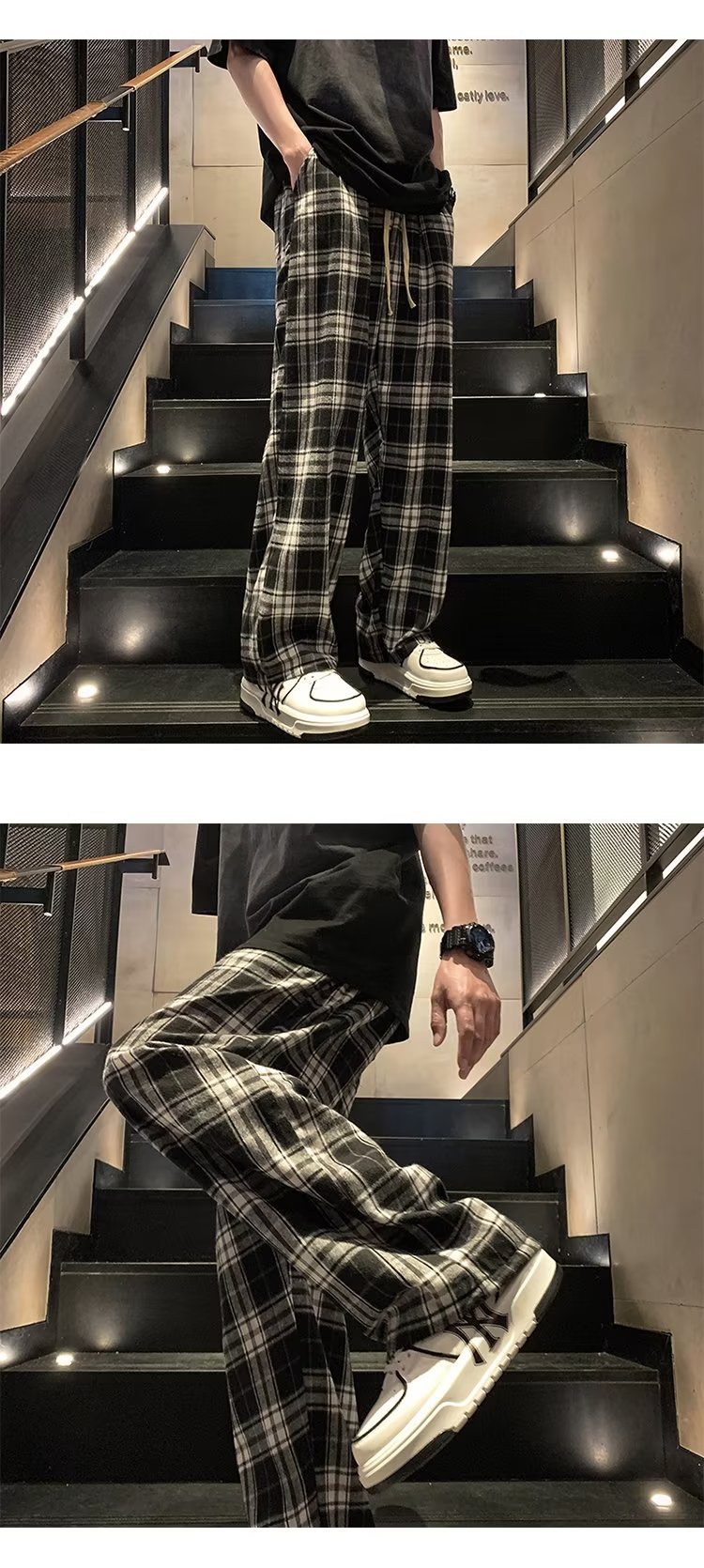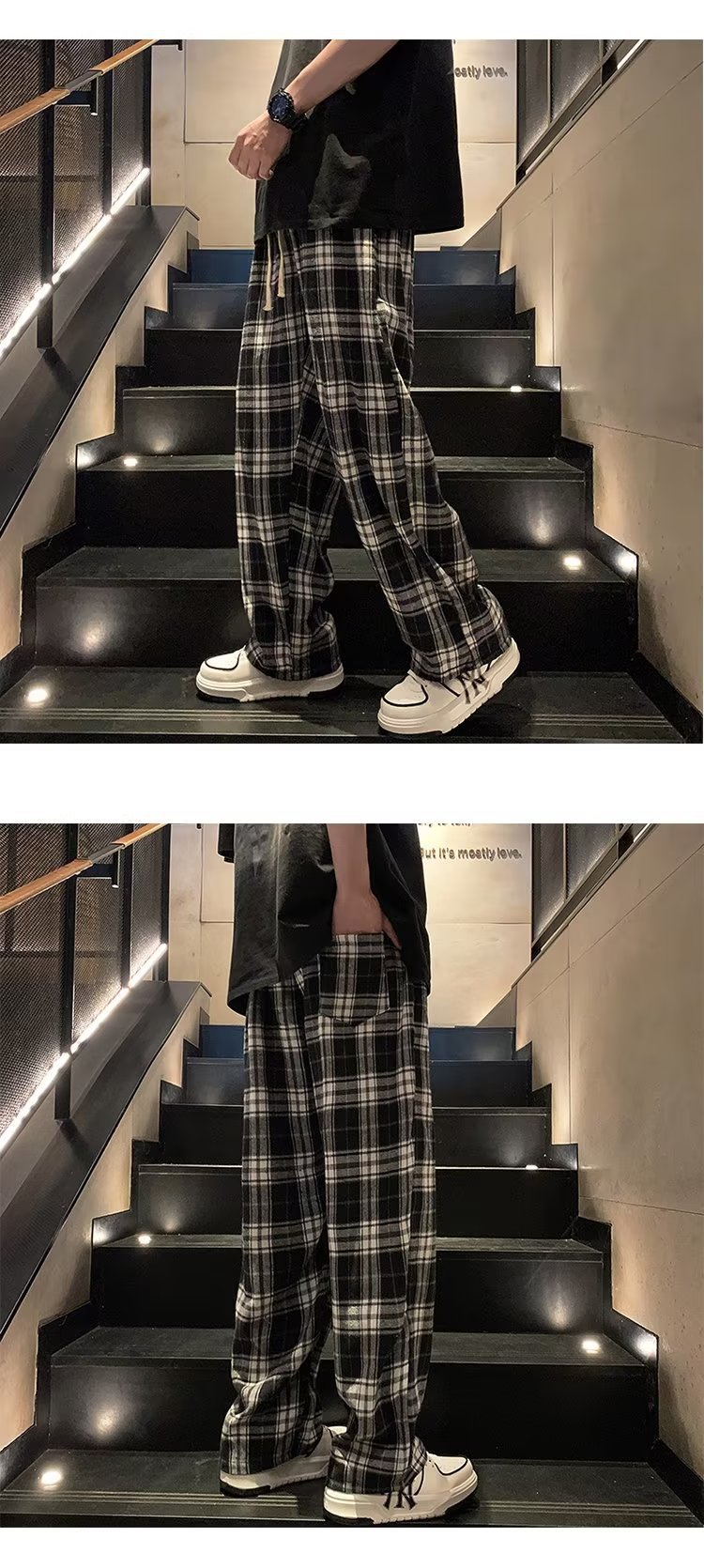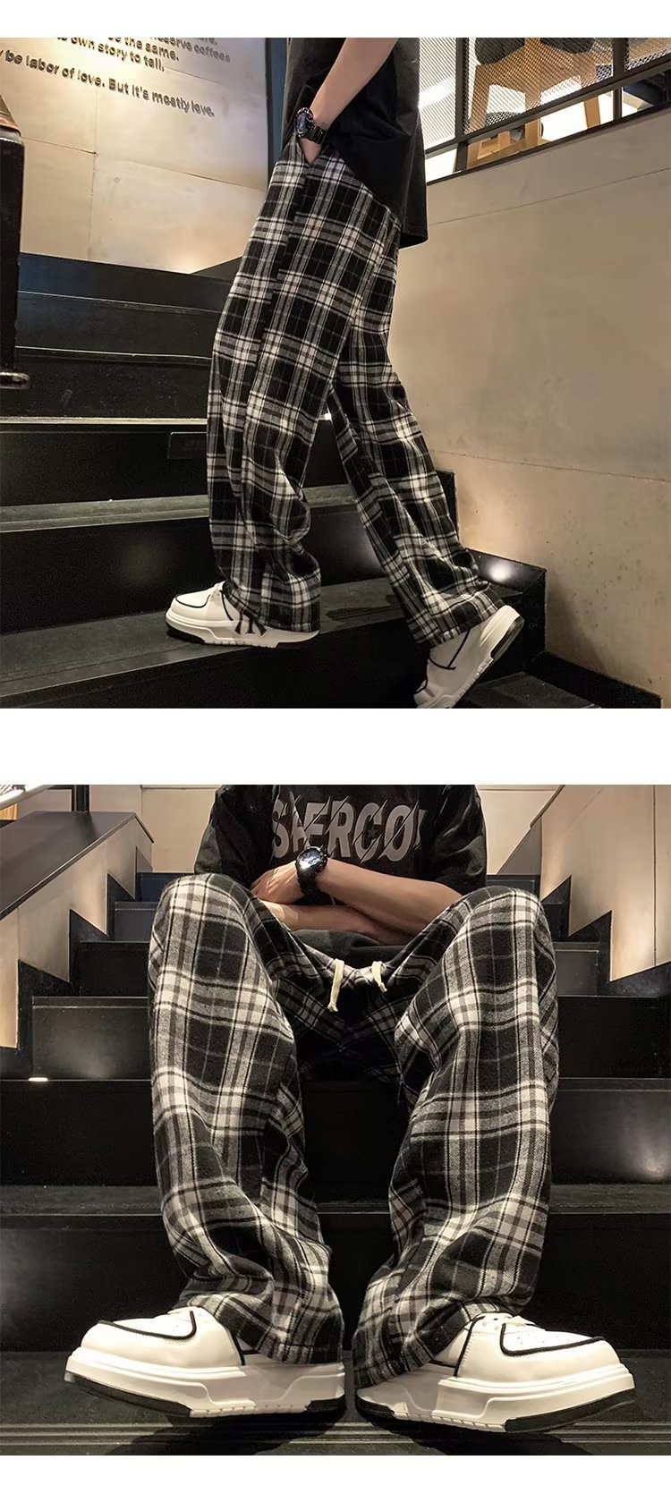 아메리칸 스타일 레트로 격자 무늬 바지 남자 여름 일본 스타일 트렌디 브랜드 루즈 플루톤 잘 생긴 스트레이트 레그 와이드 레그 캐주얼 바지 남자스토어 가기
