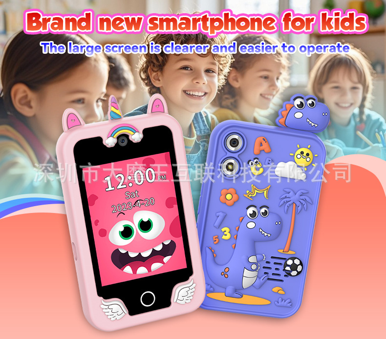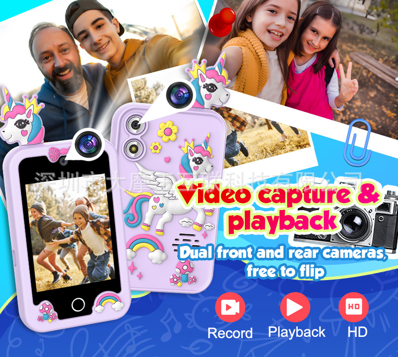 국경을 넘는 개인 디자인 어린이 교육용 유니콘 만화 카메라 고화질 듀얼 카메라 휴대폰 게임 스토리 오디오 인터랙티브 터치