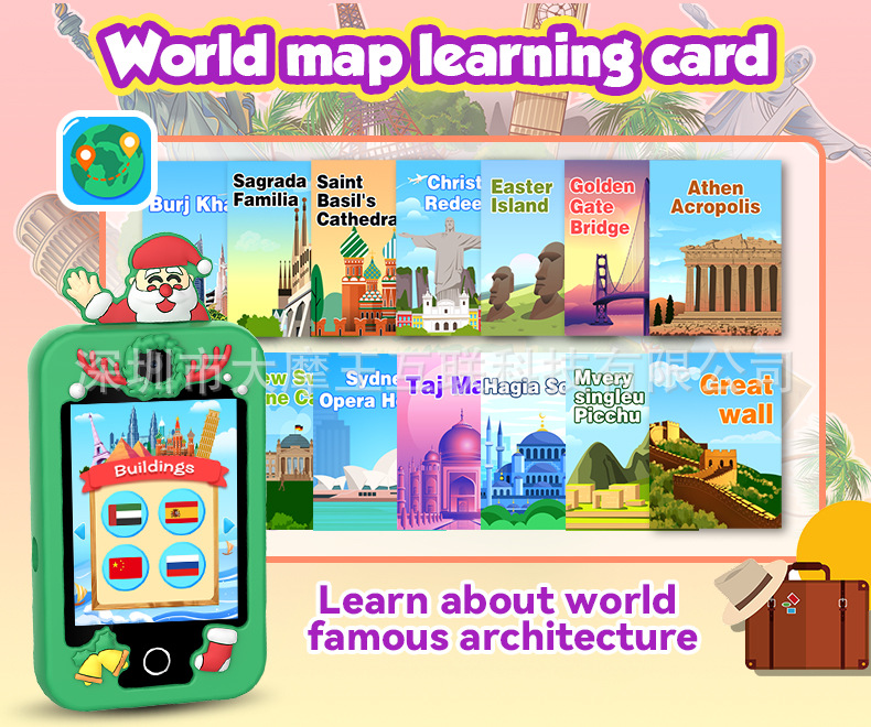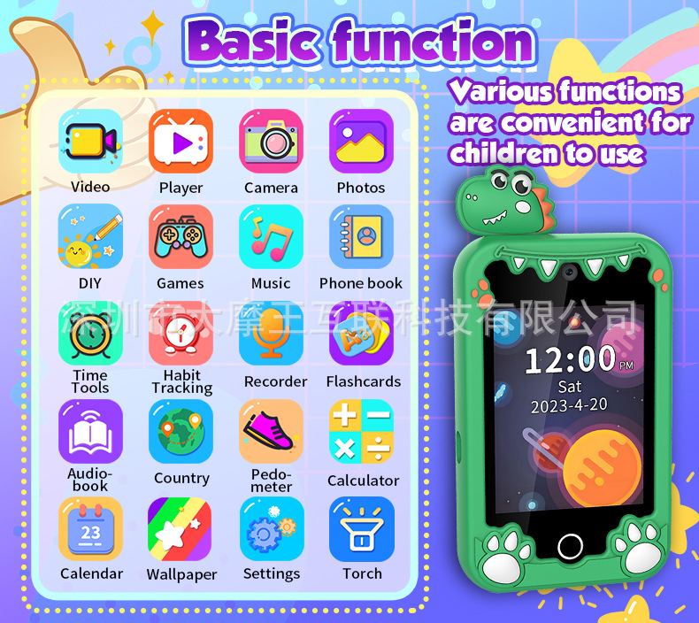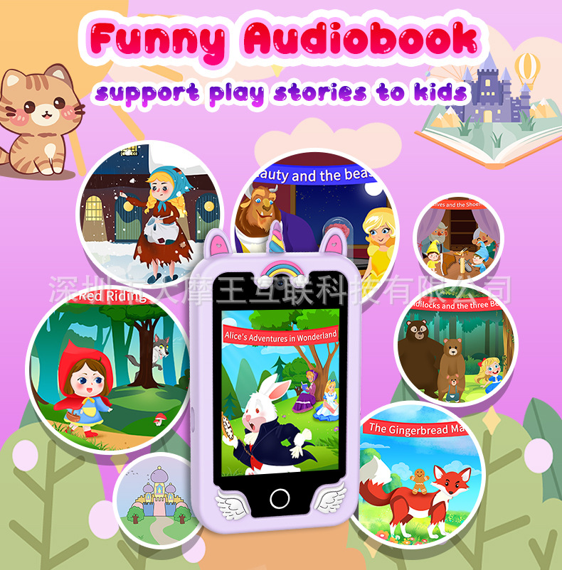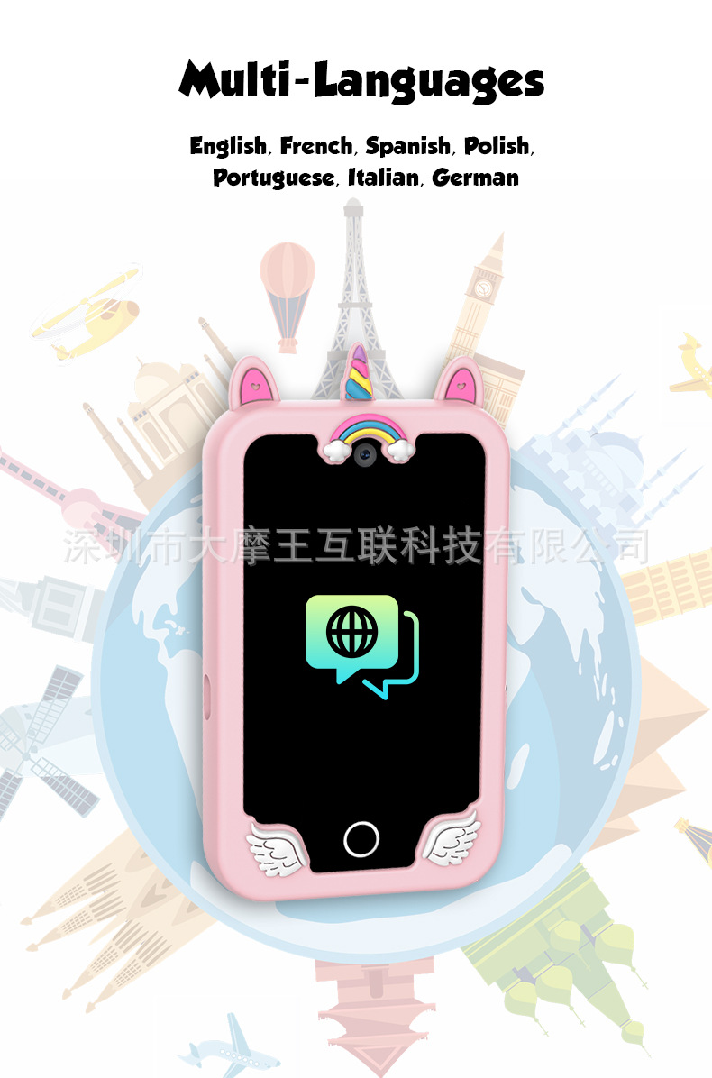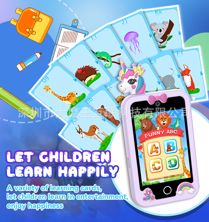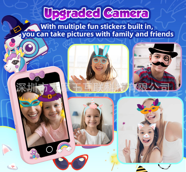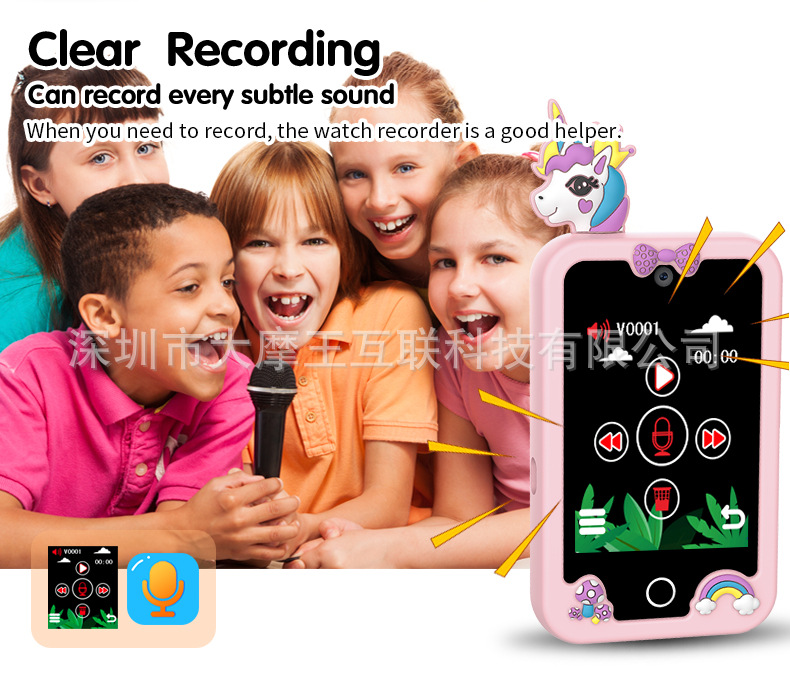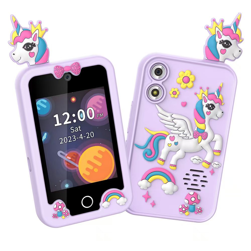 국경을 넘는 개인 디자인 어린이 교육용 유니콘 만화 카메라 고화질 듀얼 카메라 휴대폰 게임 스토리 오디오 인터랙티브 터치스토어 가기