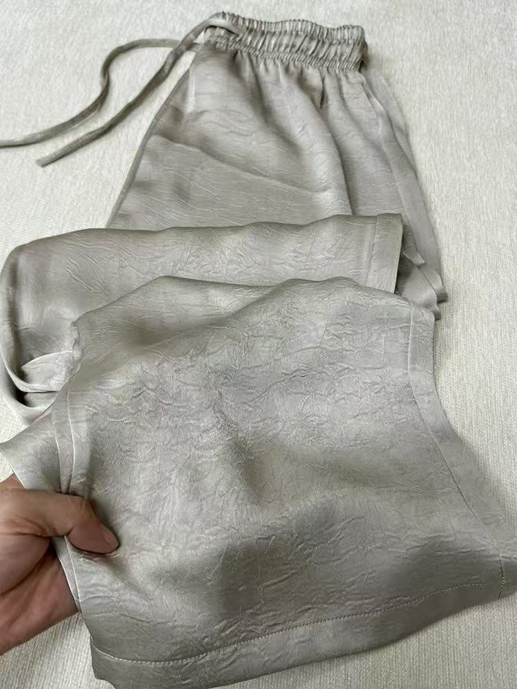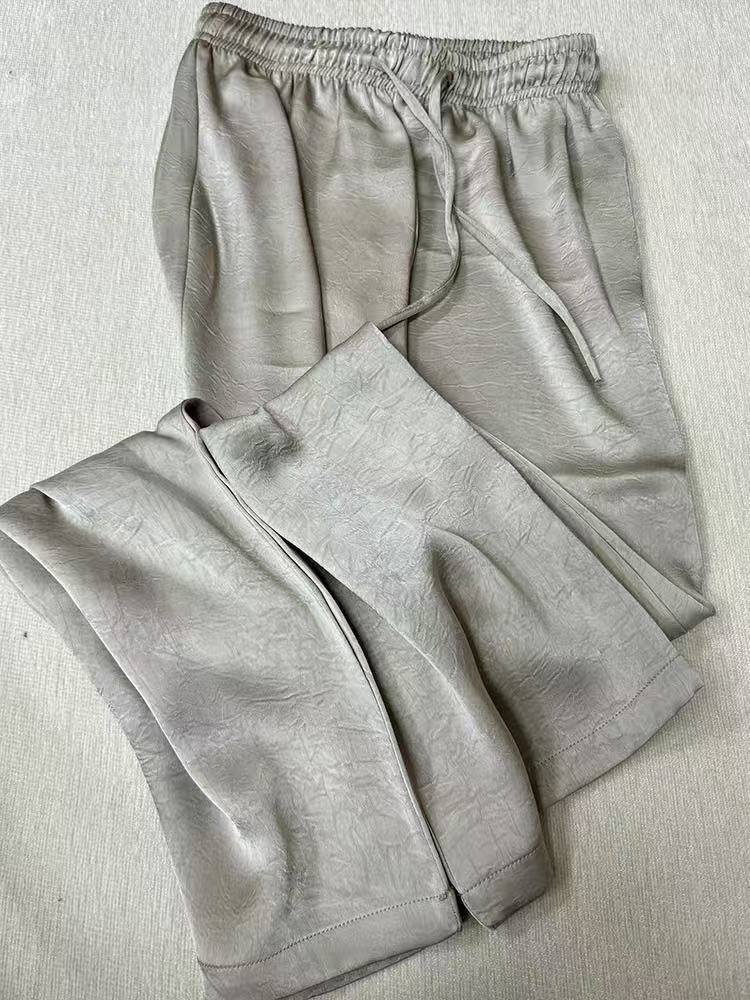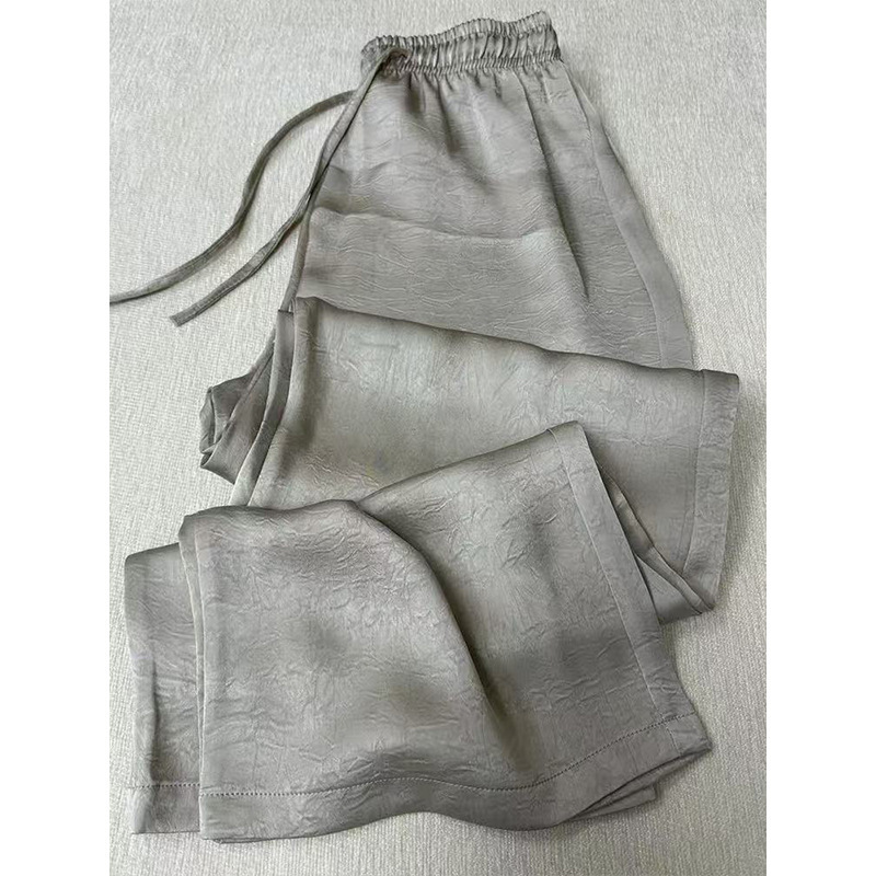 차오 클래스 추천! 회색 양각 새틴 넓은 다리 바지 여성 여름 2025 새로운 중국 스타일 얇은 높은 허리 캐주얼 바지스토어 가기