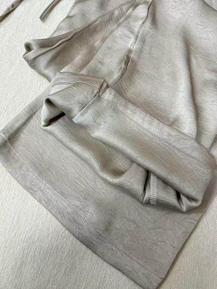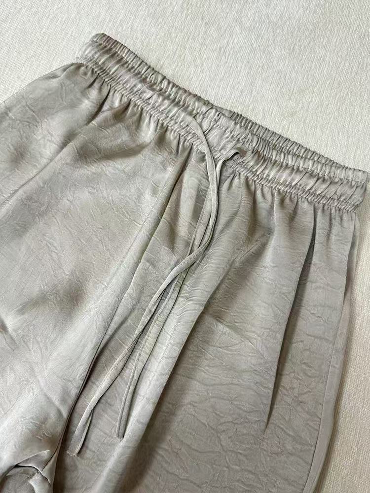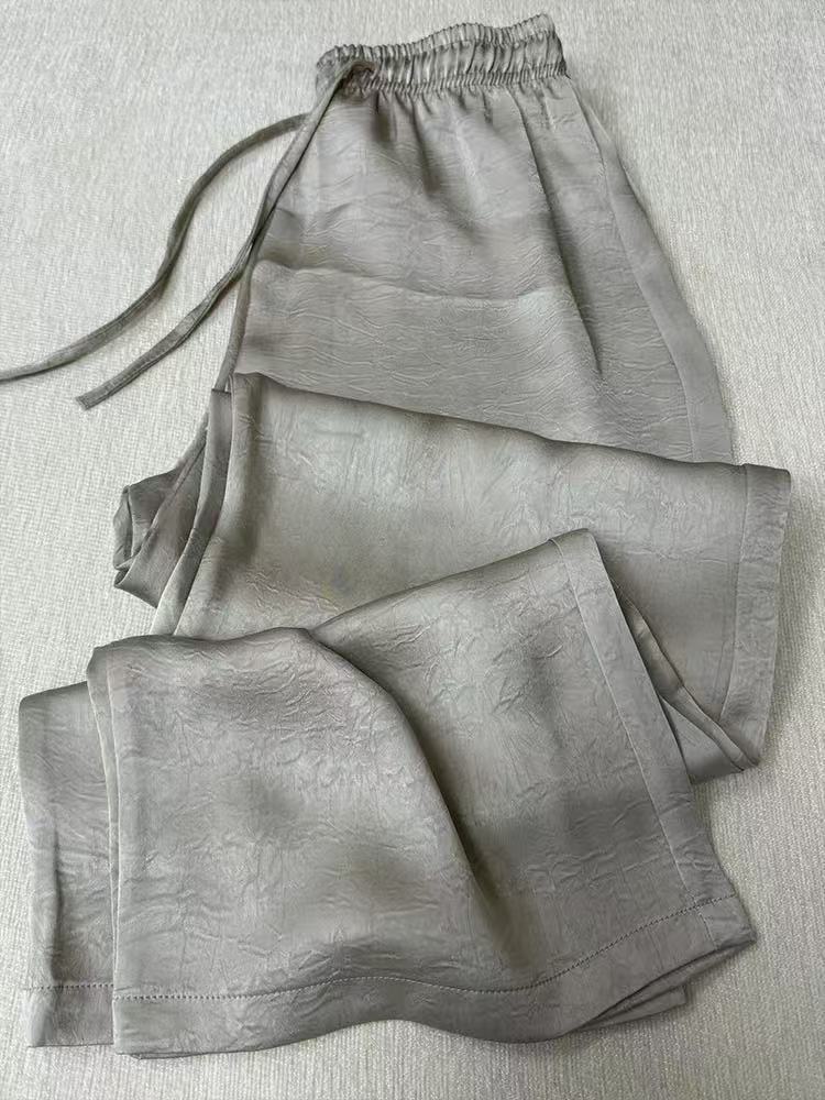 Chao级推荐!灰色压花缎面阔腿裤女夏季2025新中式薄款高腰休闲裤
