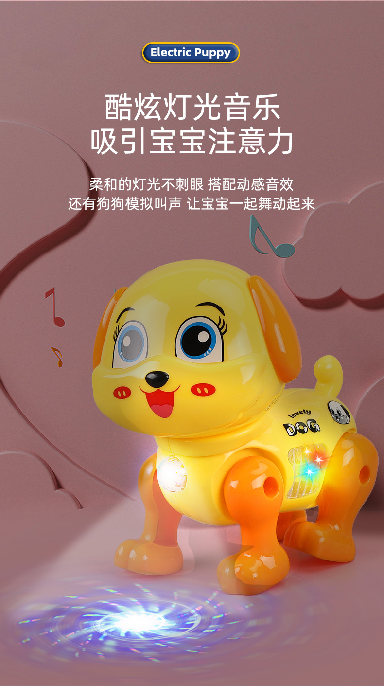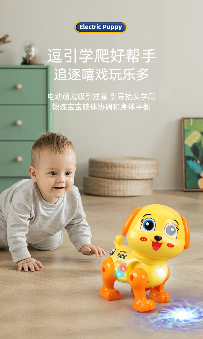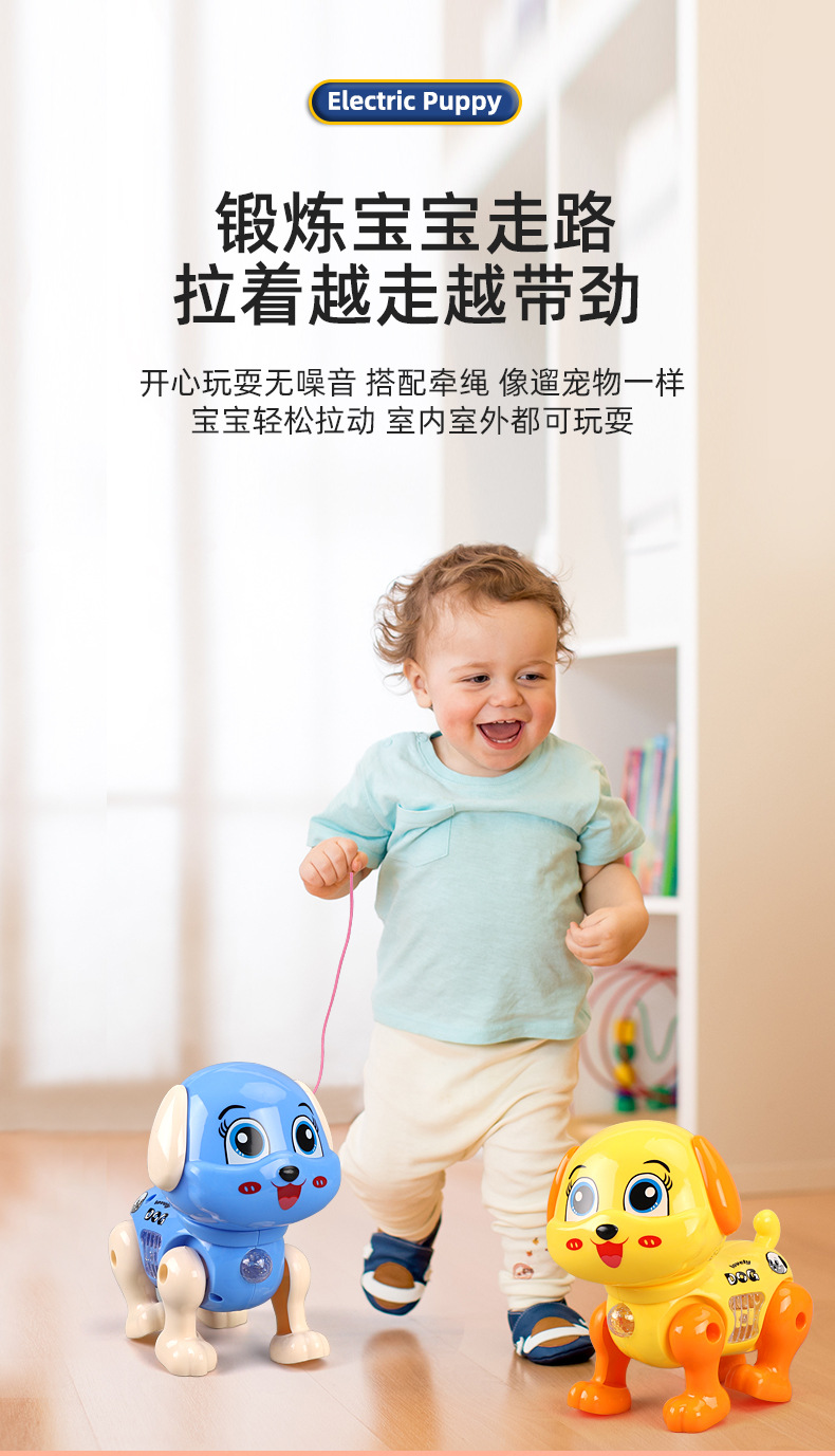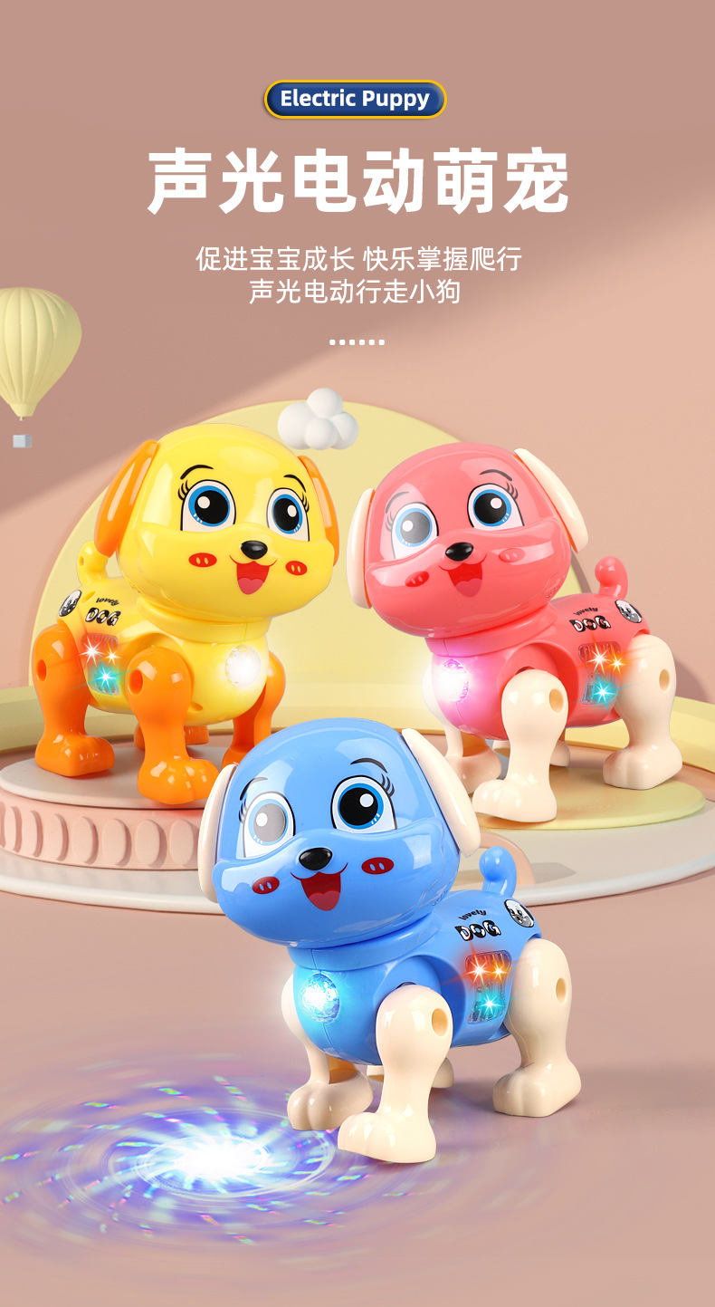 전동 강아지 어린이 장난감, 걷고 짖고 소리 내는 강아지, 아기 기어다니기 학습, 남아 여아용 기계견, 불빛이 나오는 강아지