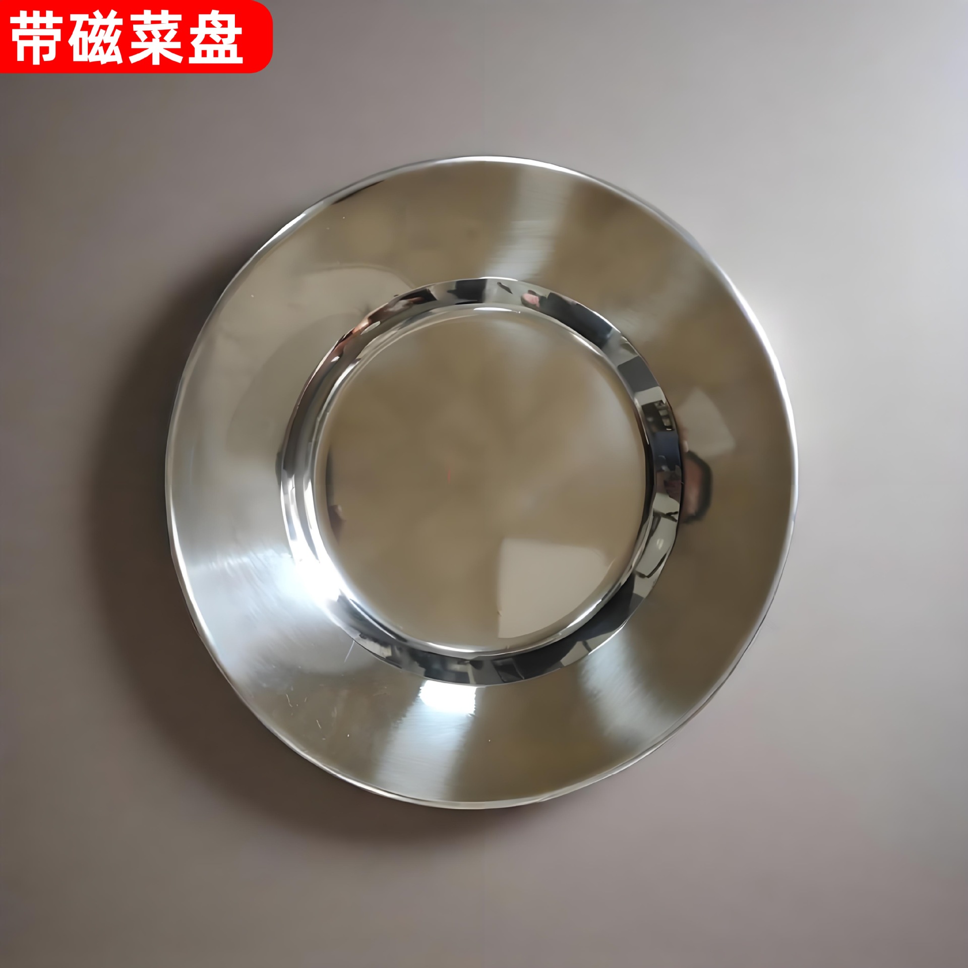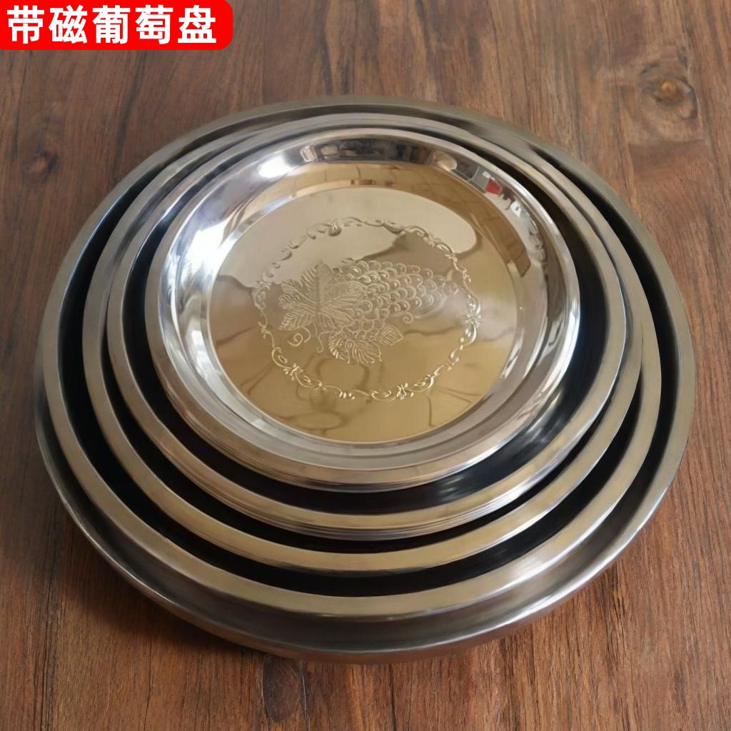 자석이 있는 스테인레스 스틸 대형 원형 접시, 두꺼운 원형 접시, 과일 접시, 포도 접시, 얕은 접시 트레이, 다용도 접시, 태국 인치 접시