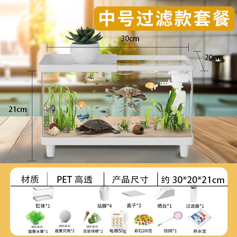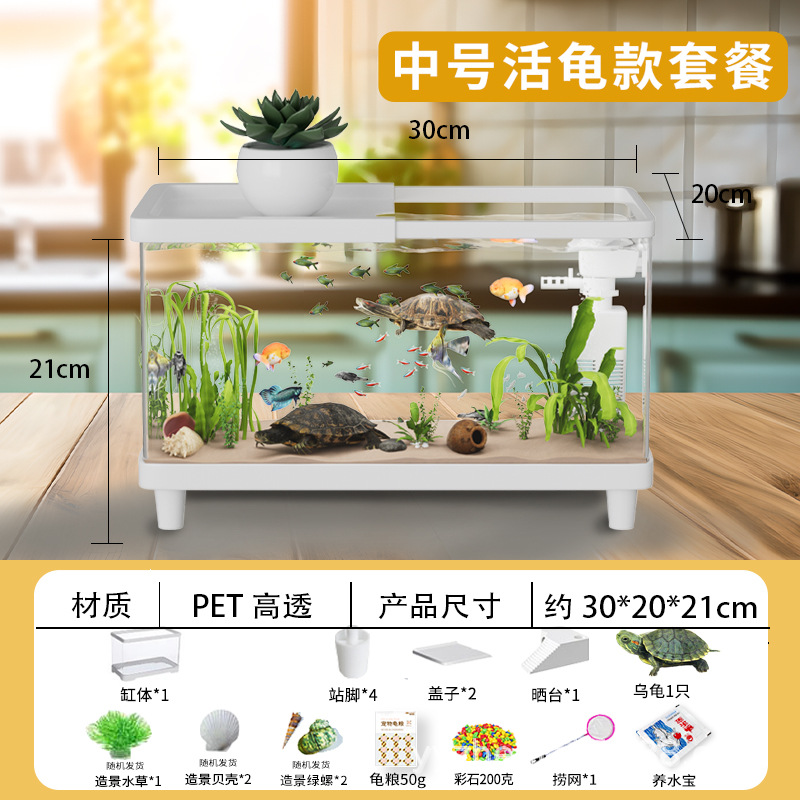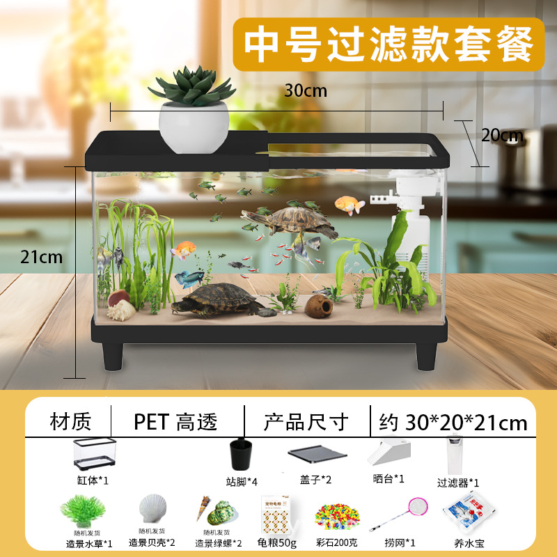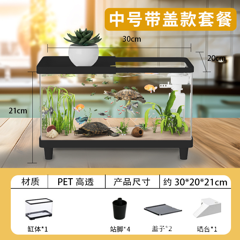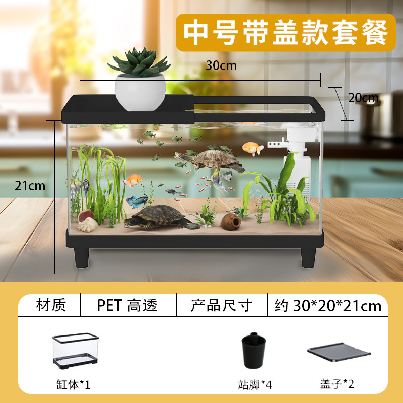 거북이 수조 가정용 아크릴 고화질 고투명 금붕어 수조 데스크탑 오픈 탱크 물고기 관상어 장식품 물 순환