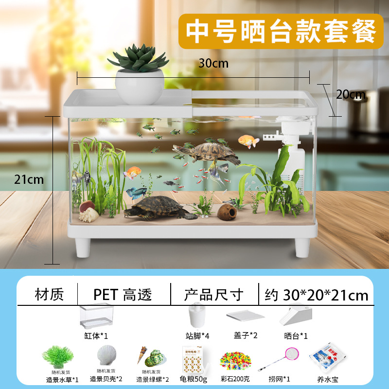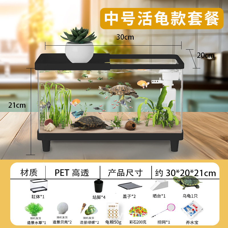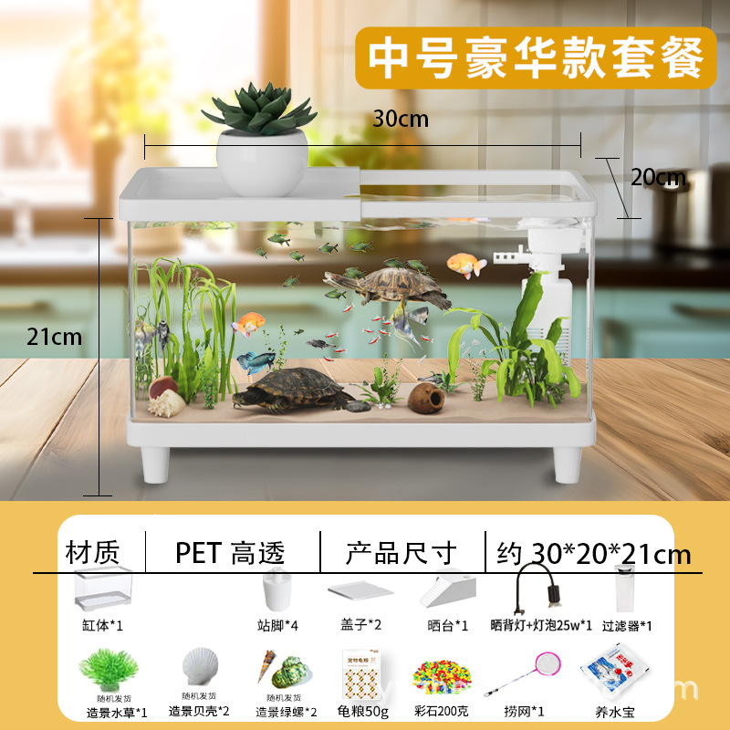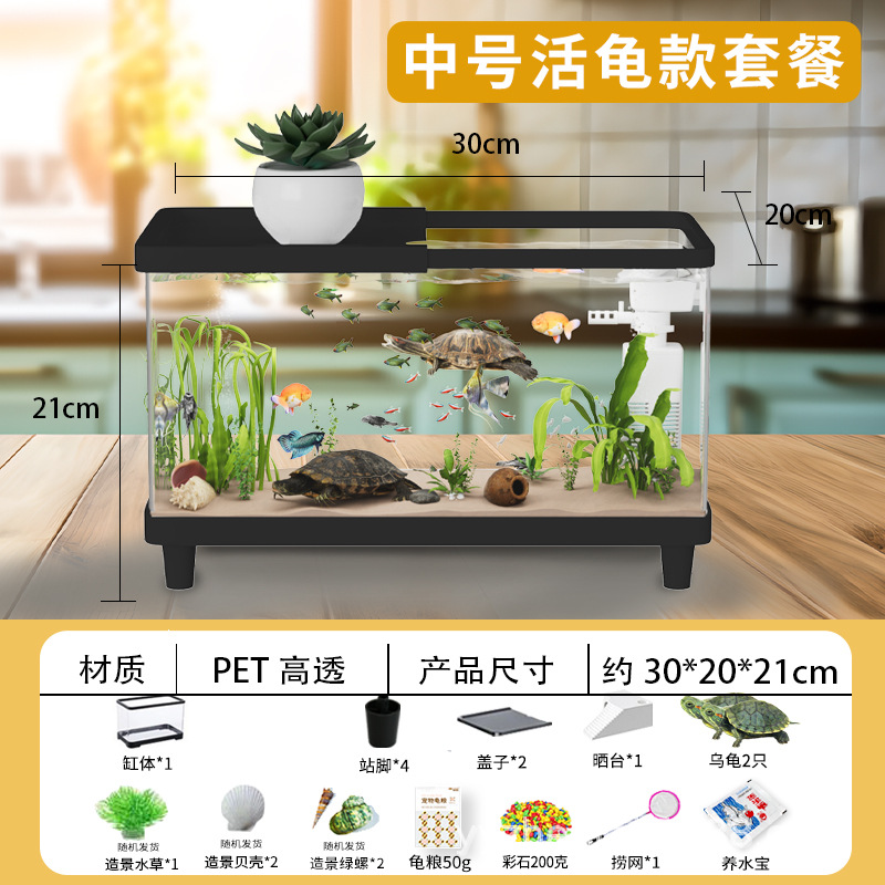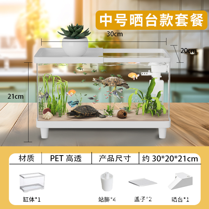 거북이 수조 가정용 아크릴 고화질 고투명 금붕어 수조 데스크탑 오픈 탱크 물고기 관상어 장식품 물 순환