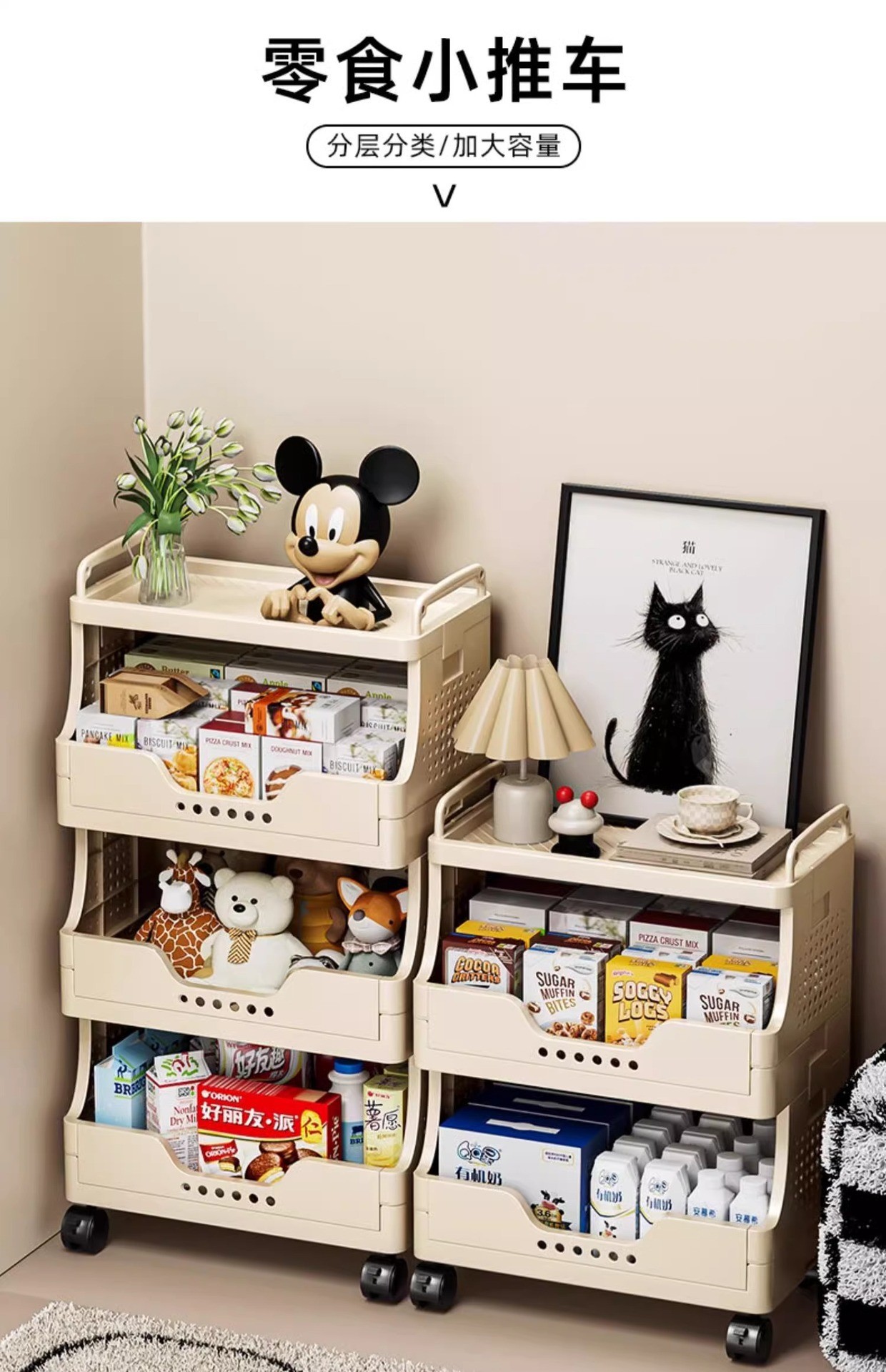 두꺼운 바닥 서 작은 카트 스낵 스토리지 랙 다층 스토리지 랙 거실 침실 대용량 스토리지 모바일스토어 가기