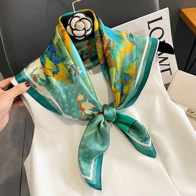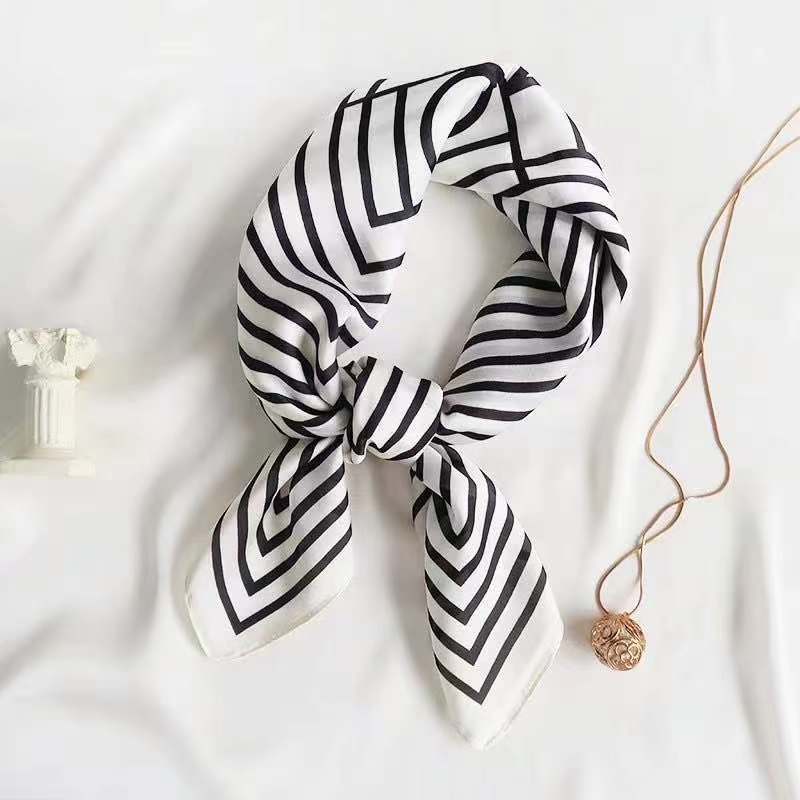 새로운 스카프 도매 70*70 인쇄 작은 광장 스카프 숙녀 모조 실크 긴 스카프 스카프 헤어 벨트 장식