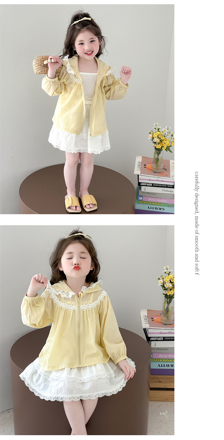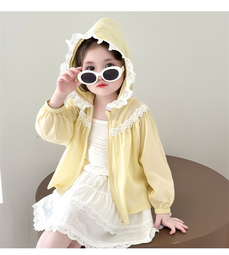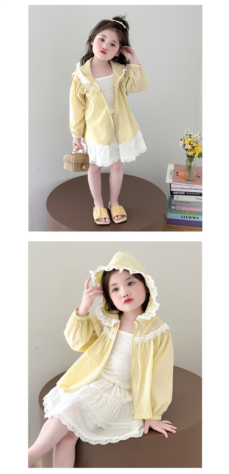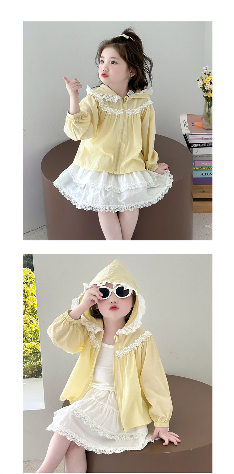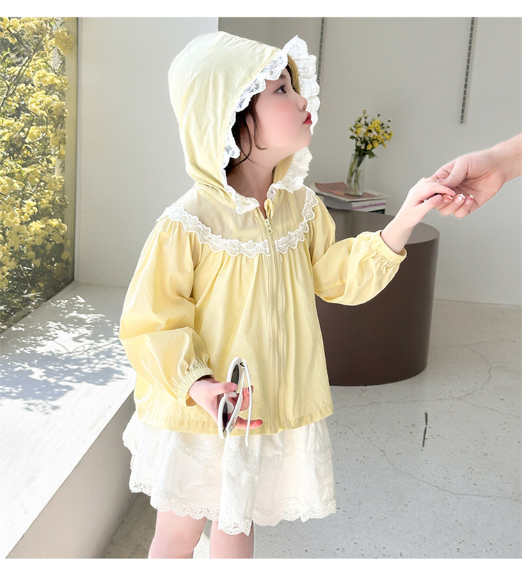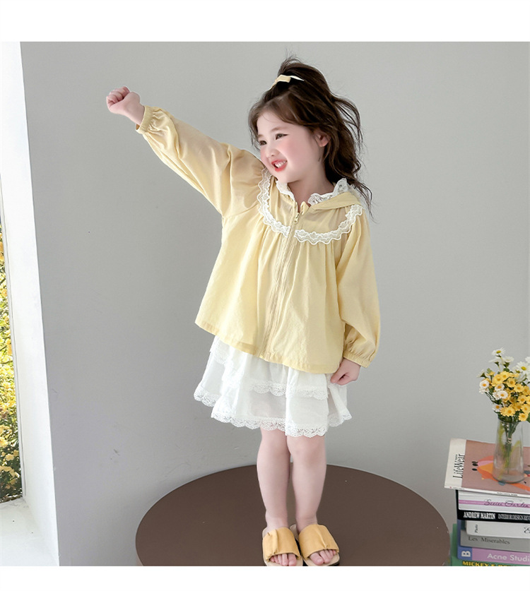 여자 레이스 태양 보호 의류 2025 여름 새로운 패션 소녀 스타일리시 탑 중소형 어린이 한국 스타일 코트스토어 가기