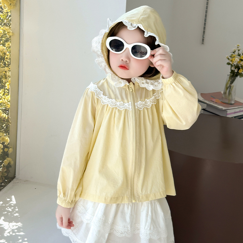 여자 레이스 태양 보호 의류 2025 여름 새로운 패션 소녀 스타일리시 탑 중소형 어린이 한국 스타일 코트