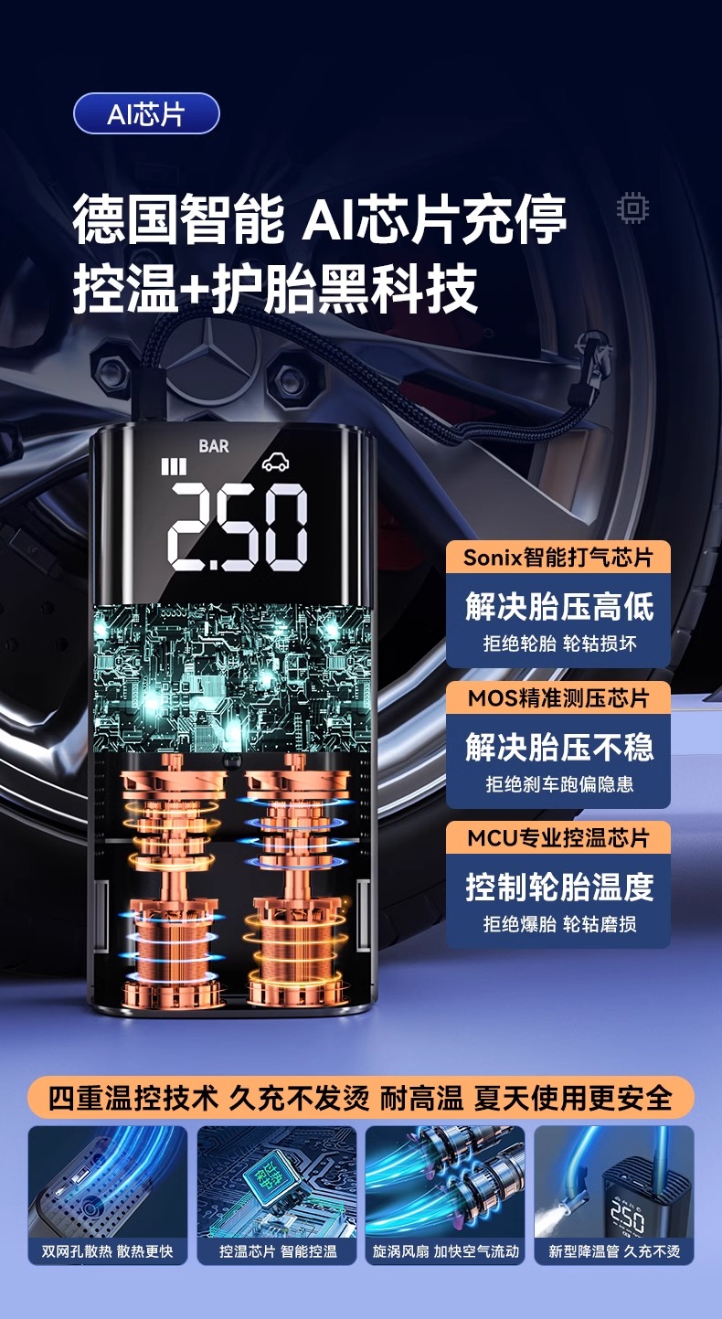 • AI를 갖춘 독일 최고★유선 스마트 시가 라이터/99 코어 듀얼 폭발 모터/9999999 펌프 전원 + 질소 충전 타이어 보호] AI 지능형 압력 측정 플래시 충전 + 포인트