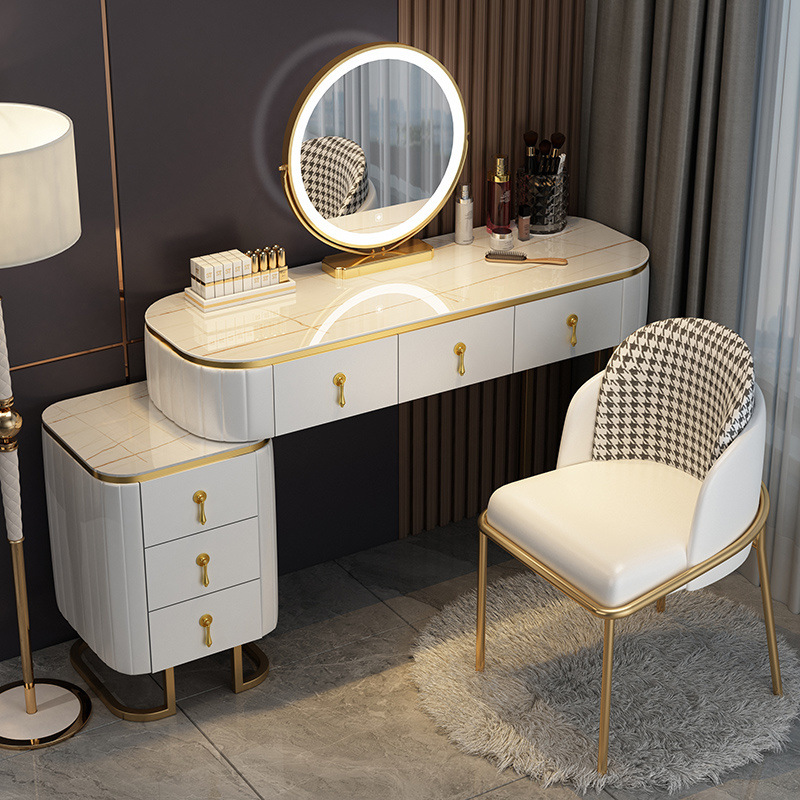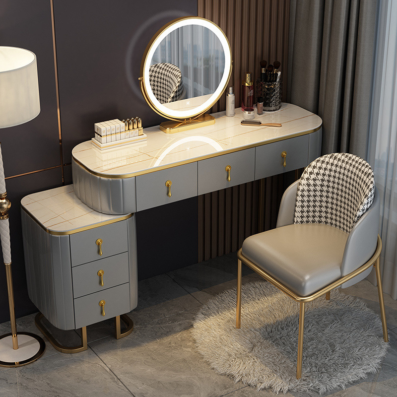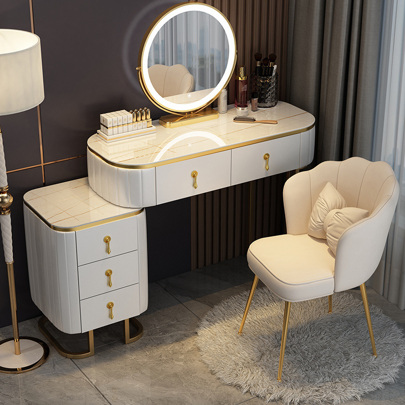 화장대 단단한 나무 화장대 라이트 럭셔리 2023 새로운 슬레이트 간단한 침실 인터넷 연예인 화장대 서랍 캐비닛 통합 테이블