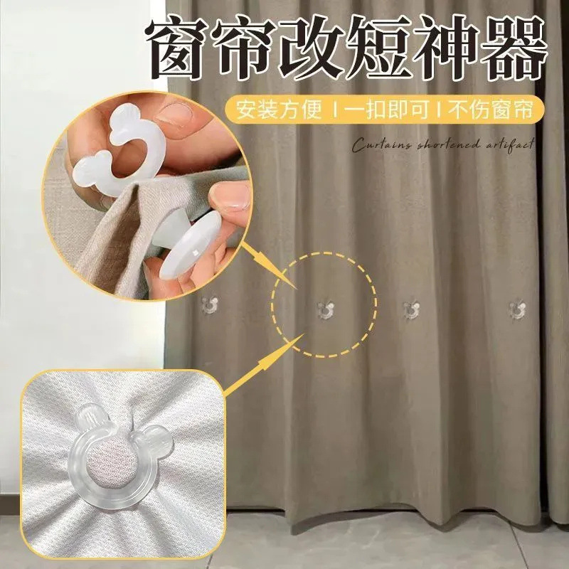 커튼을 짧게 만드는 도구, 절단이나 봉제 없이 탈부착 가능한 고정 버클, 커튼 천 바닥을 짧게 만드는 버클, 커튼 스트랩