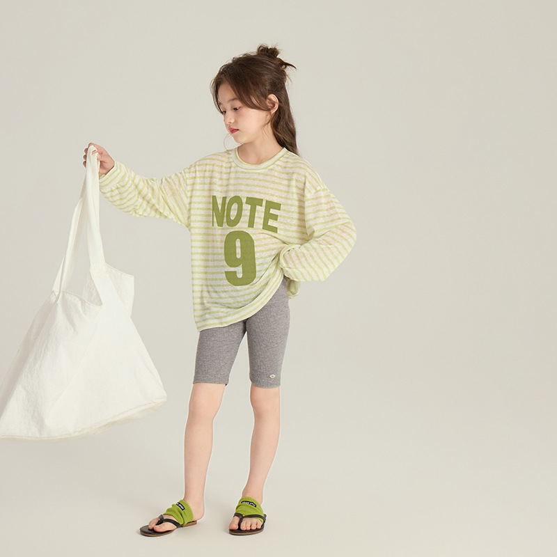 Elmo Beibei 소녀 스트라이프 레터 자외선 차단 셔츠 여름 유행 에어컨 셔츠 아동 캐주얼 탑 긴팔 티셔츠스토어 가기