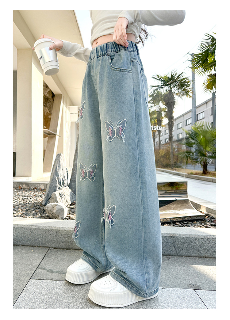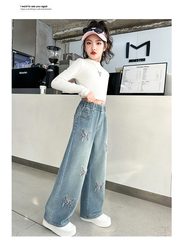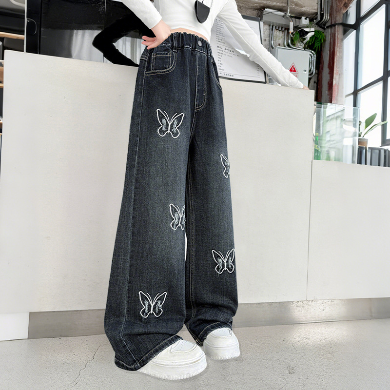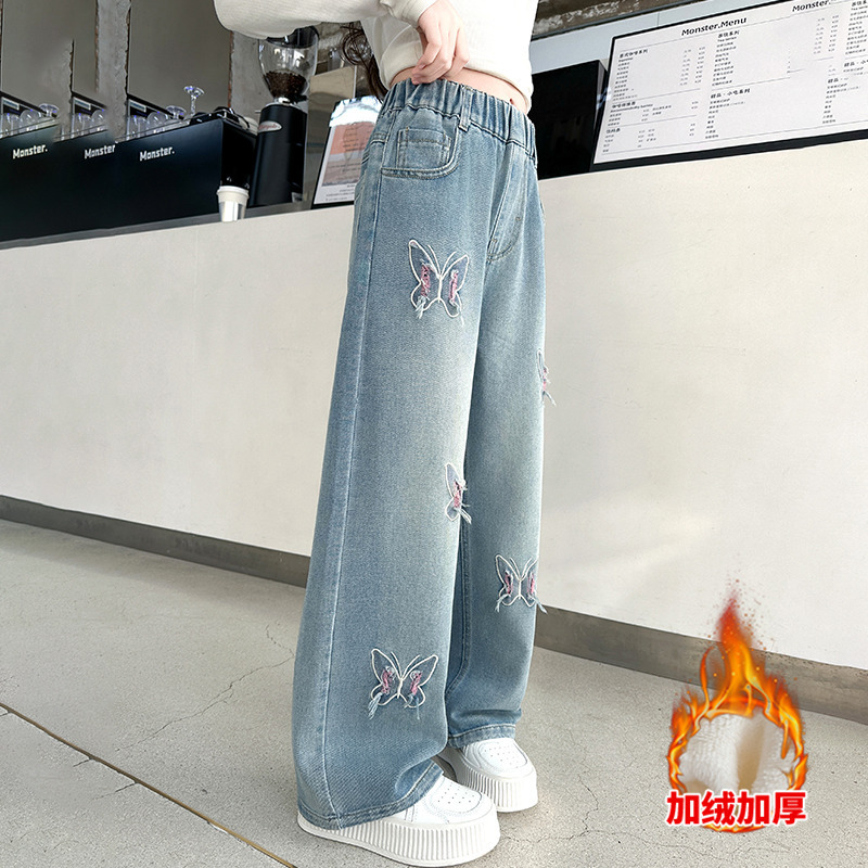 여아용 일자 청바지 봄 가을 2025 신상 아동 바지 여아용 기모 겨울 와이드 팬츠 중학생용스토어 가기
