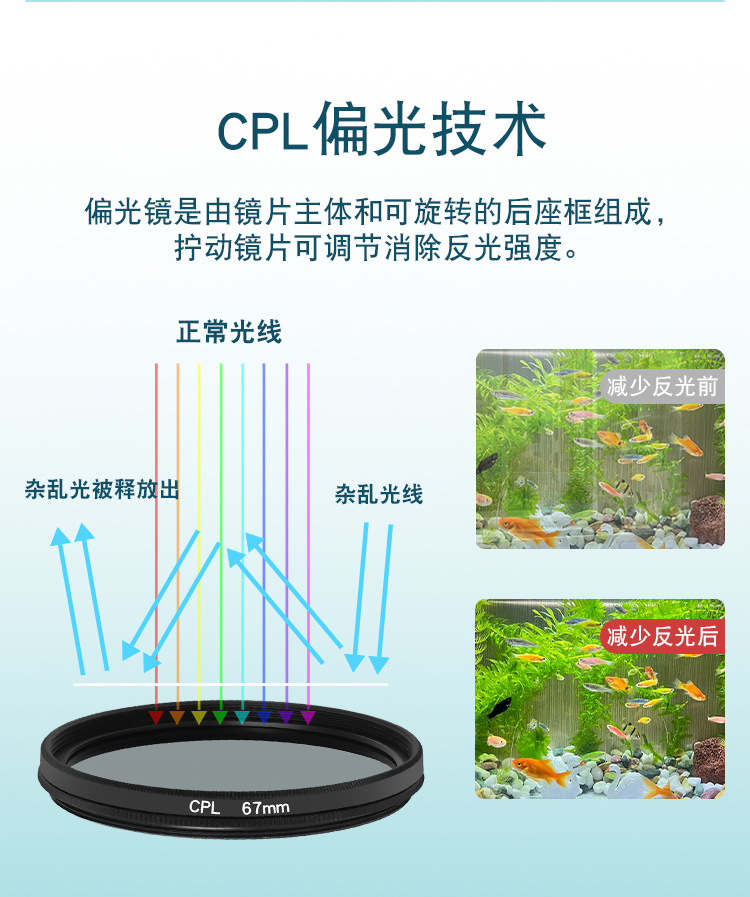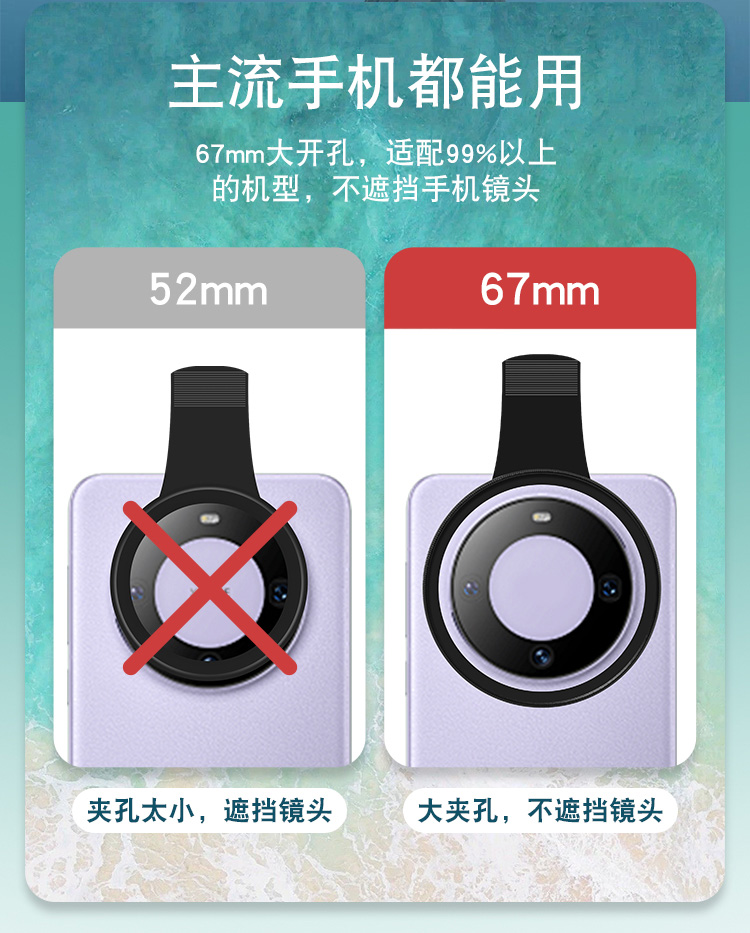 67mm 대구경 휴대폰 CPL 편광판 편광판 광 감소 거울 반사 방지 클립 라이브 방송 사진 휴대폰 제거