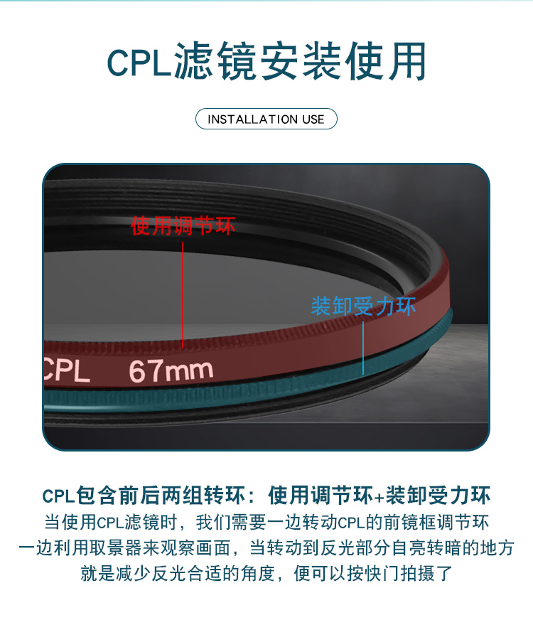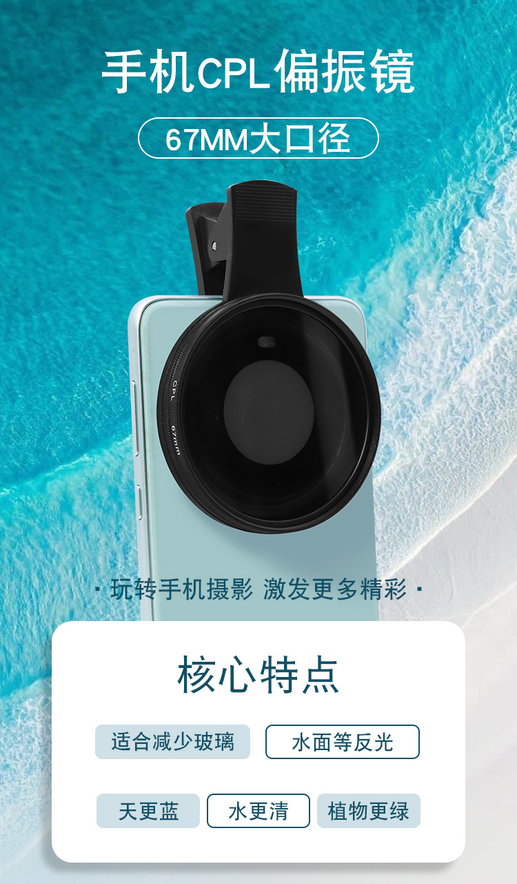 67mm 대구경 휴대폰 CPL 편광판 편광판 광 감소 거울 반사 방지 클립 라이브 방송 사진 휴대폰 제거스토어 가기