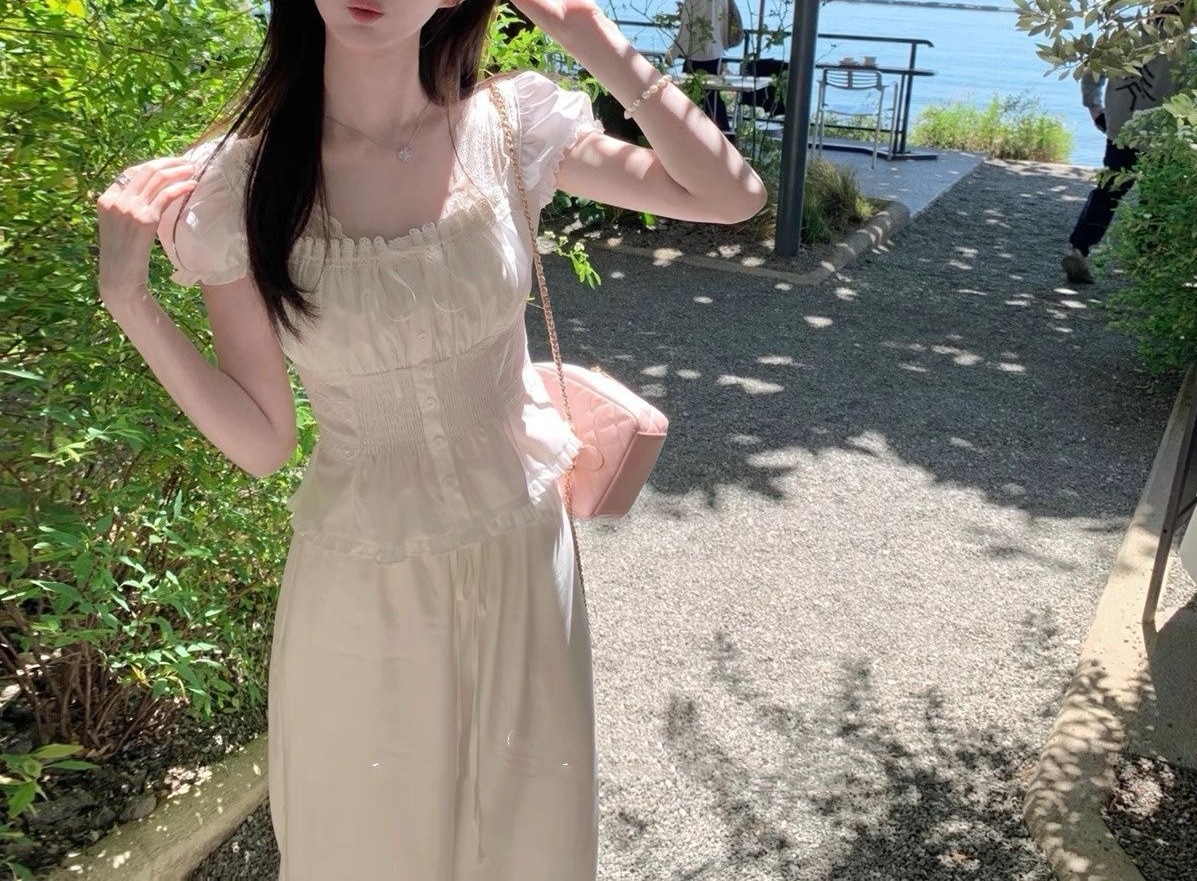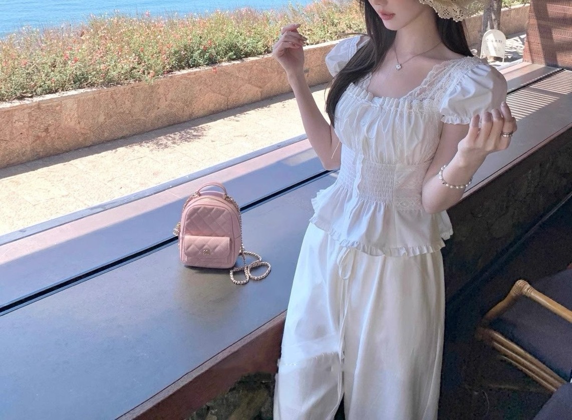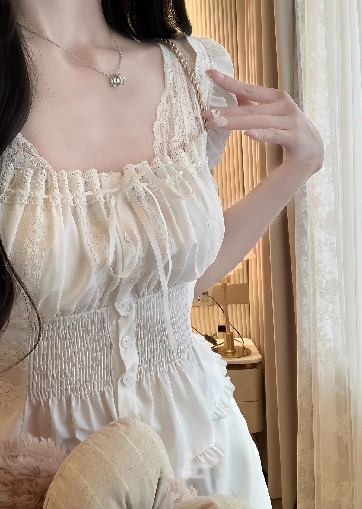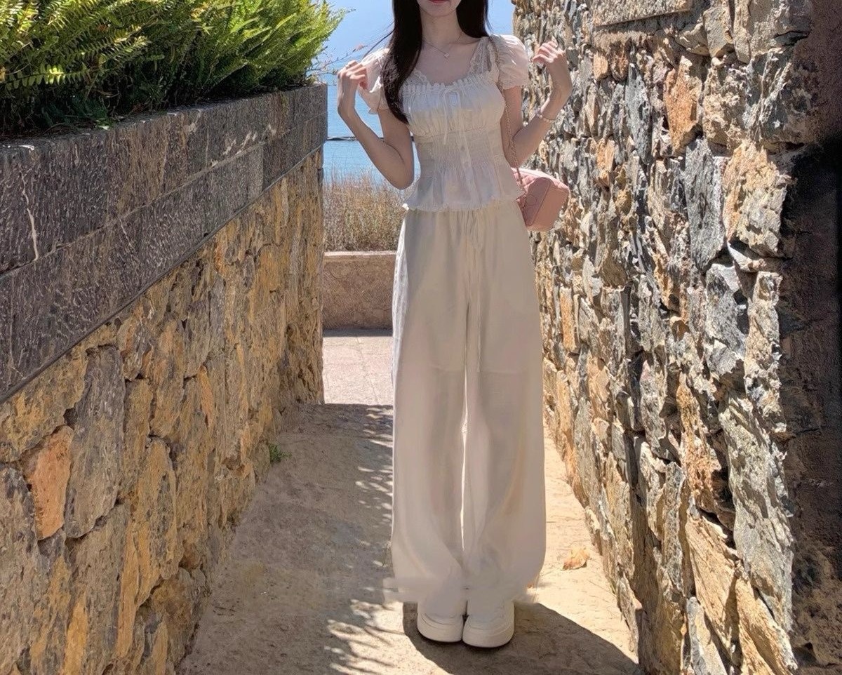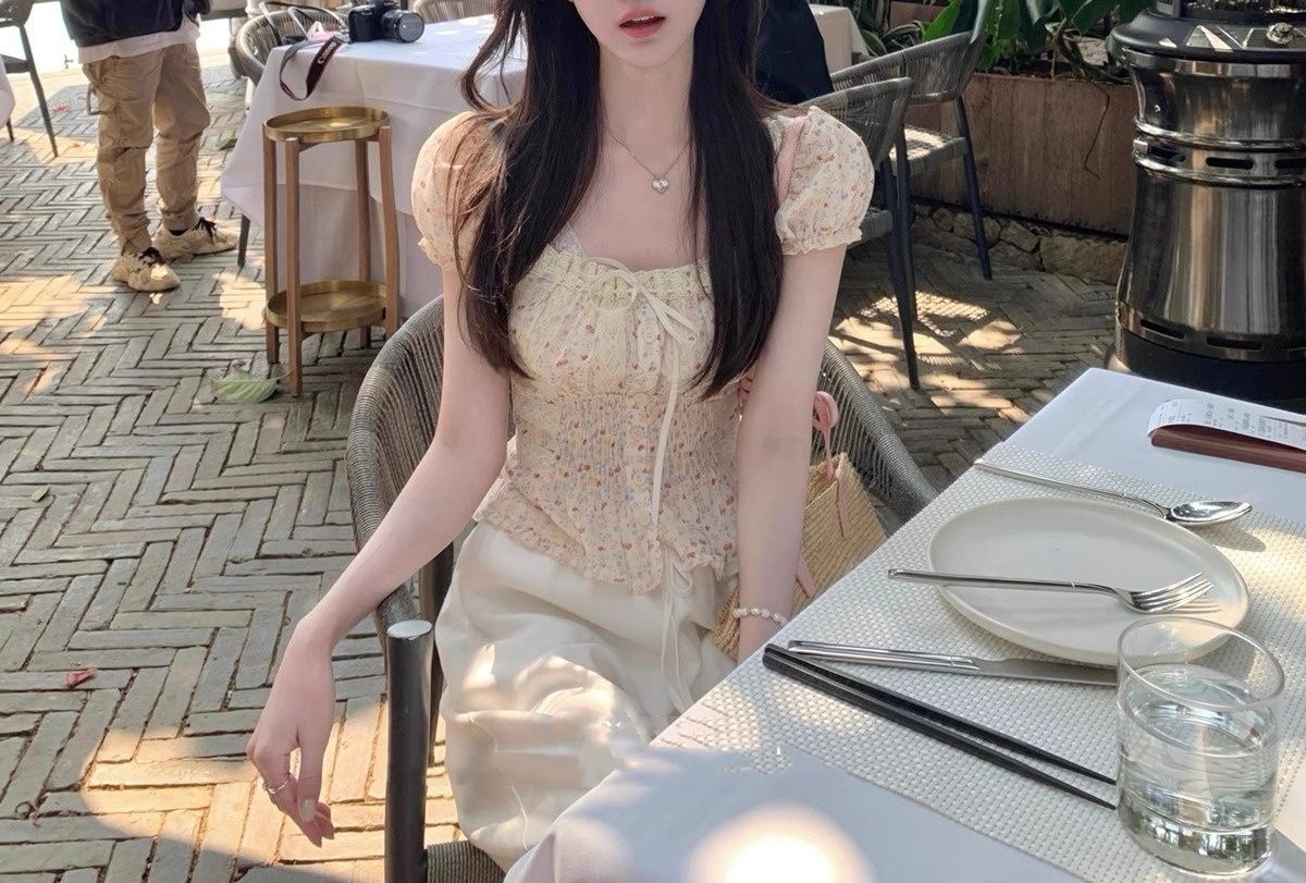 화이트 워터 여성의 화이트 로즈 밀크 퍼프 퍼프 슬리브 탑 여성의 순수한 욕망 분위기 센스 슬림 핏 슬리밍 아우터 웨어 쇼트 슬리브 탑