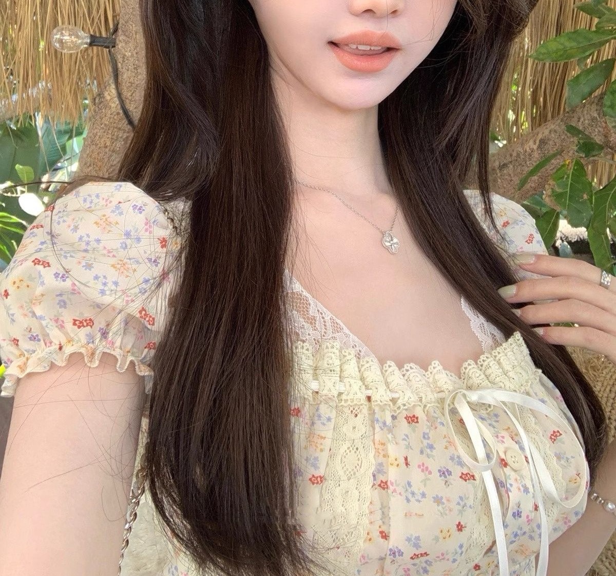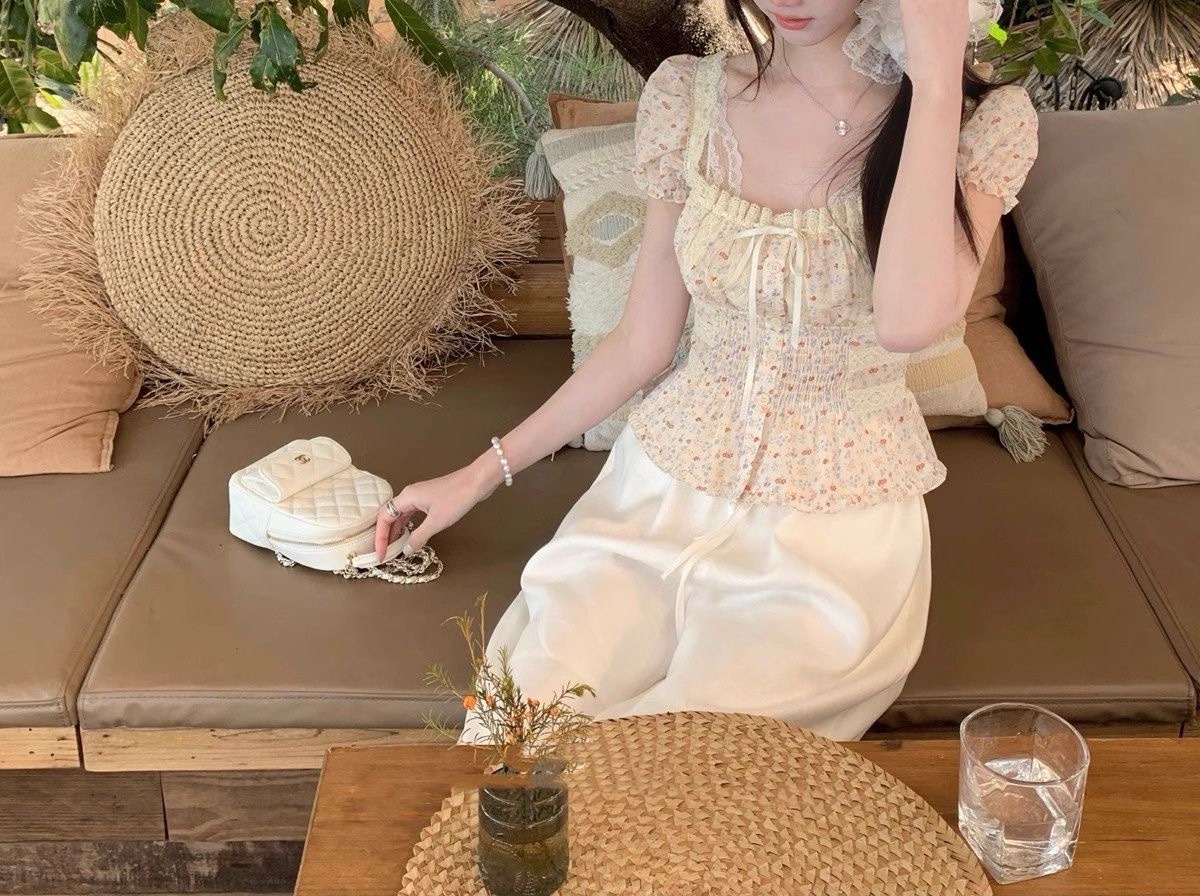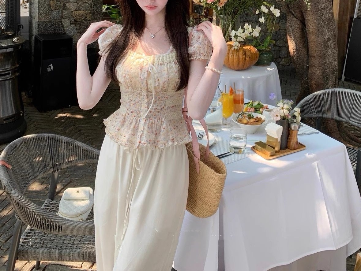 화이트 워터 여성의 화이트 로즈 밀크 퍼프 퍼프 슬리브 탑 여성의 순수한 욕망 분위기 센스 슬림 핏 슬리밍 아우터 웨어 쇼트 슬리브 탑스토어 가기