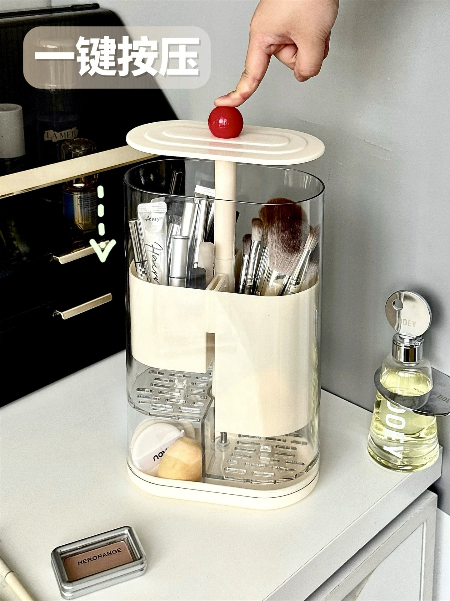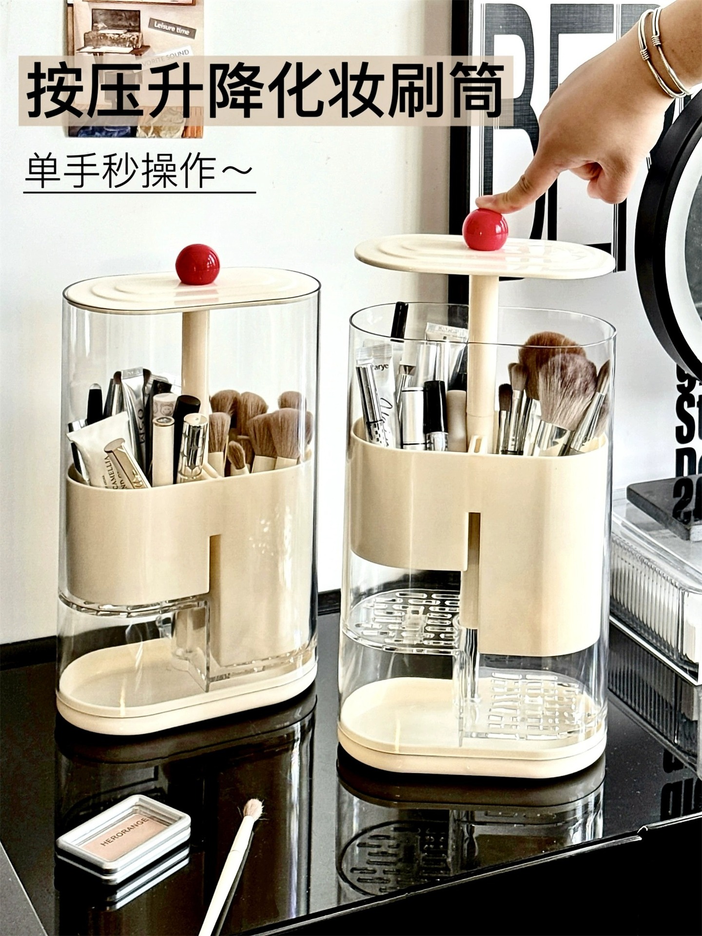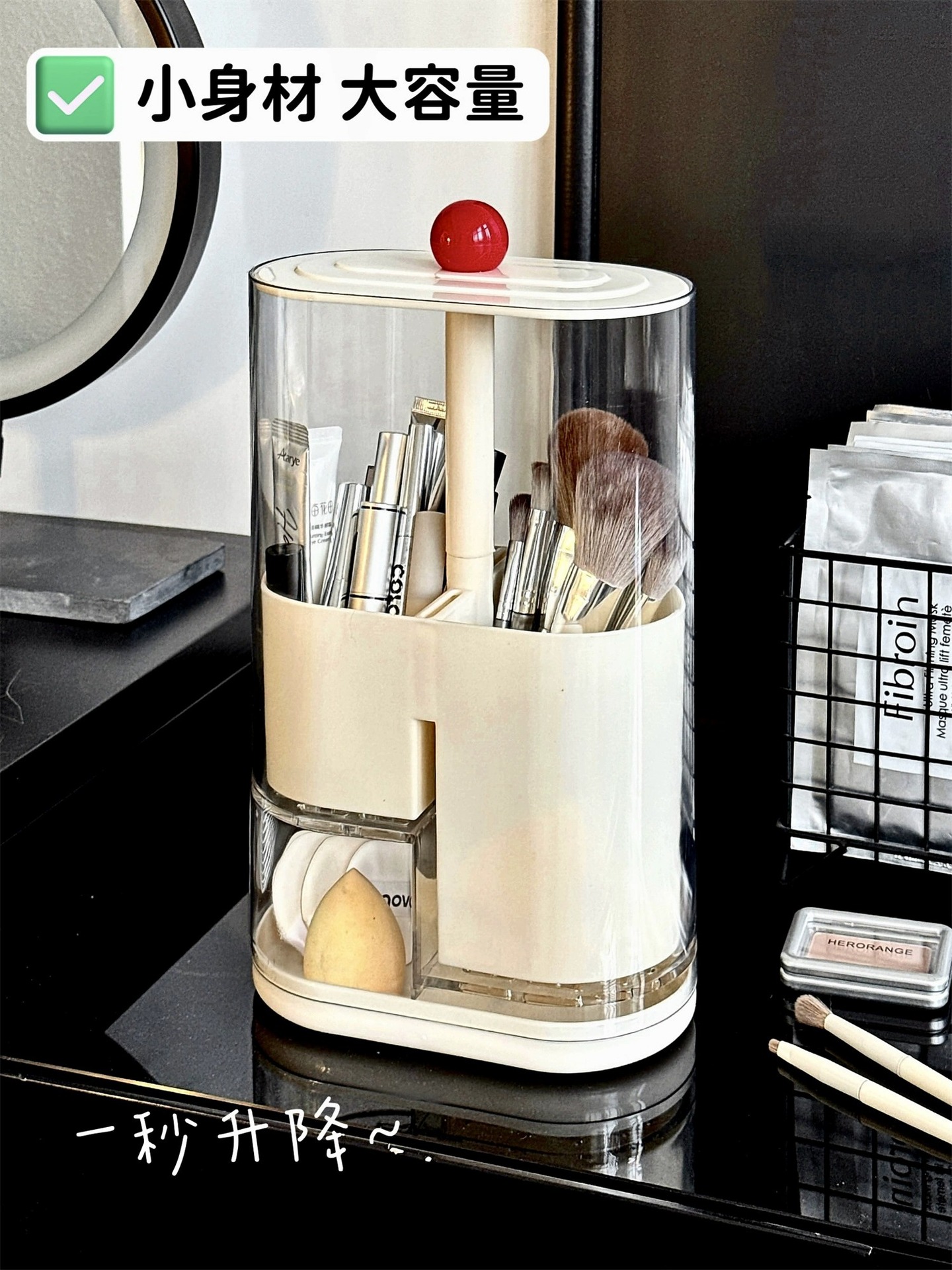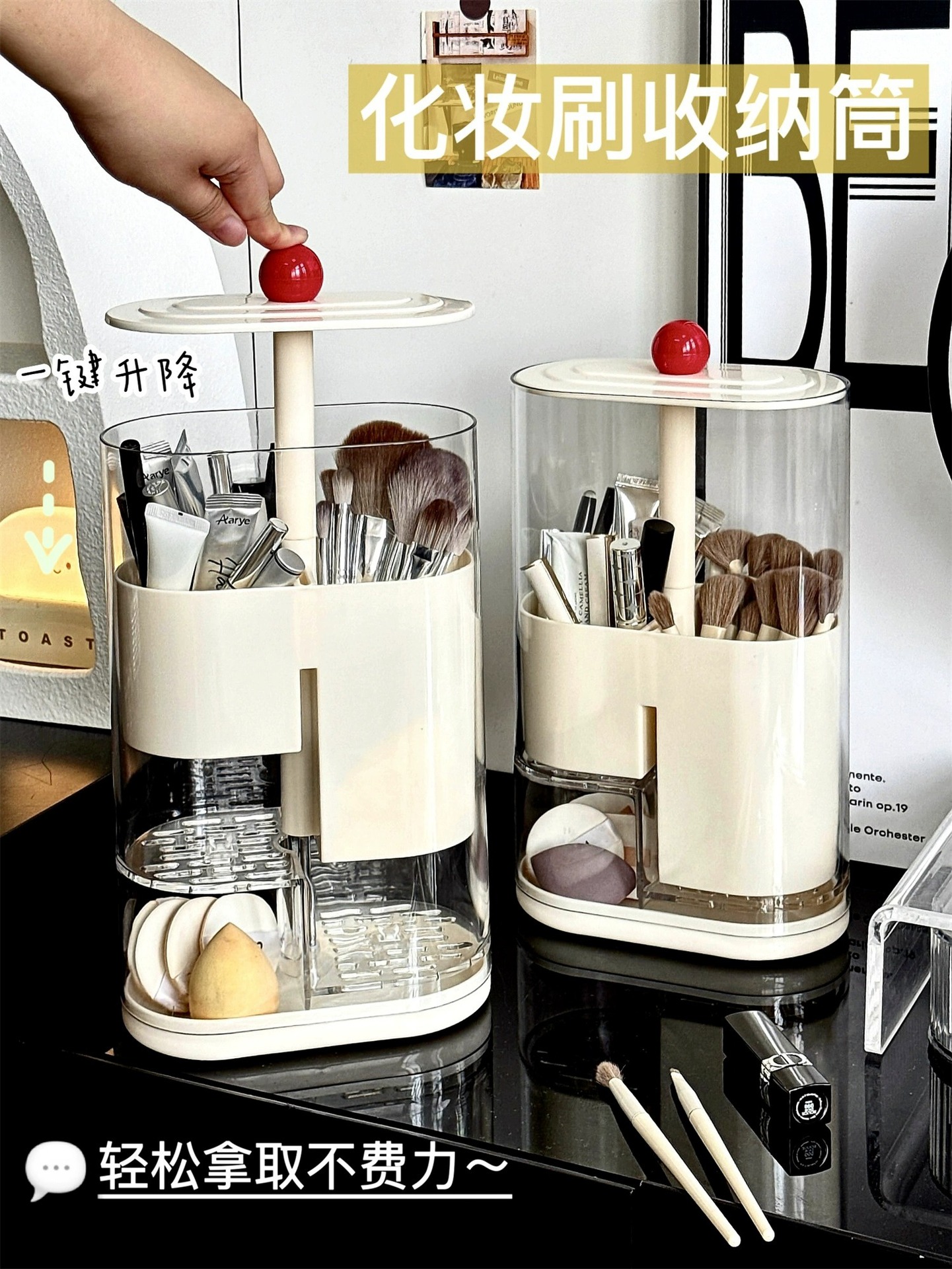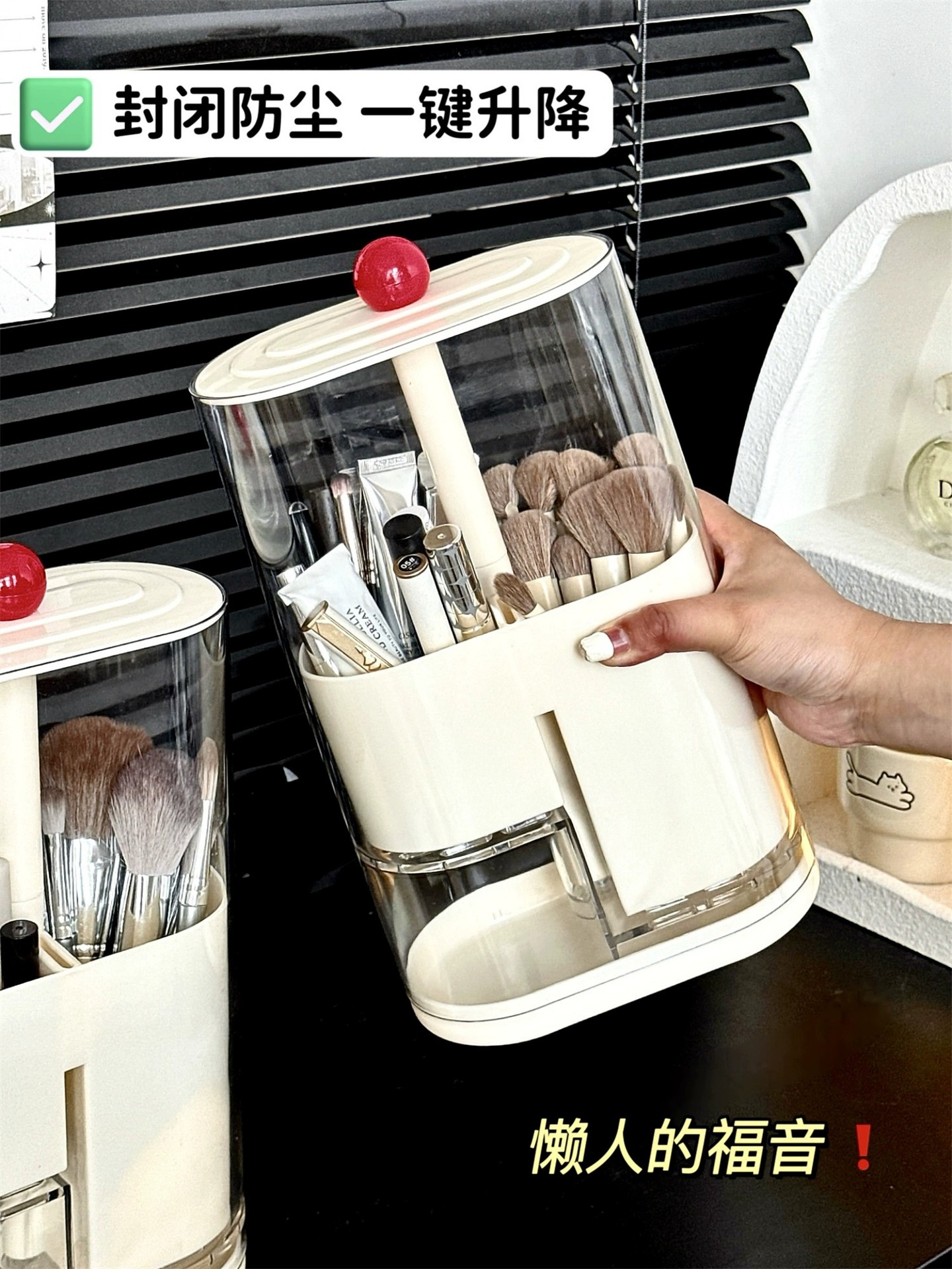 데스크탑 스토리지 박스 리프팅 메이크업 브러시 스토리지 실린더 고급 드레싱 테이블 눈썹 펜 페인트 방진 스토리지 랙