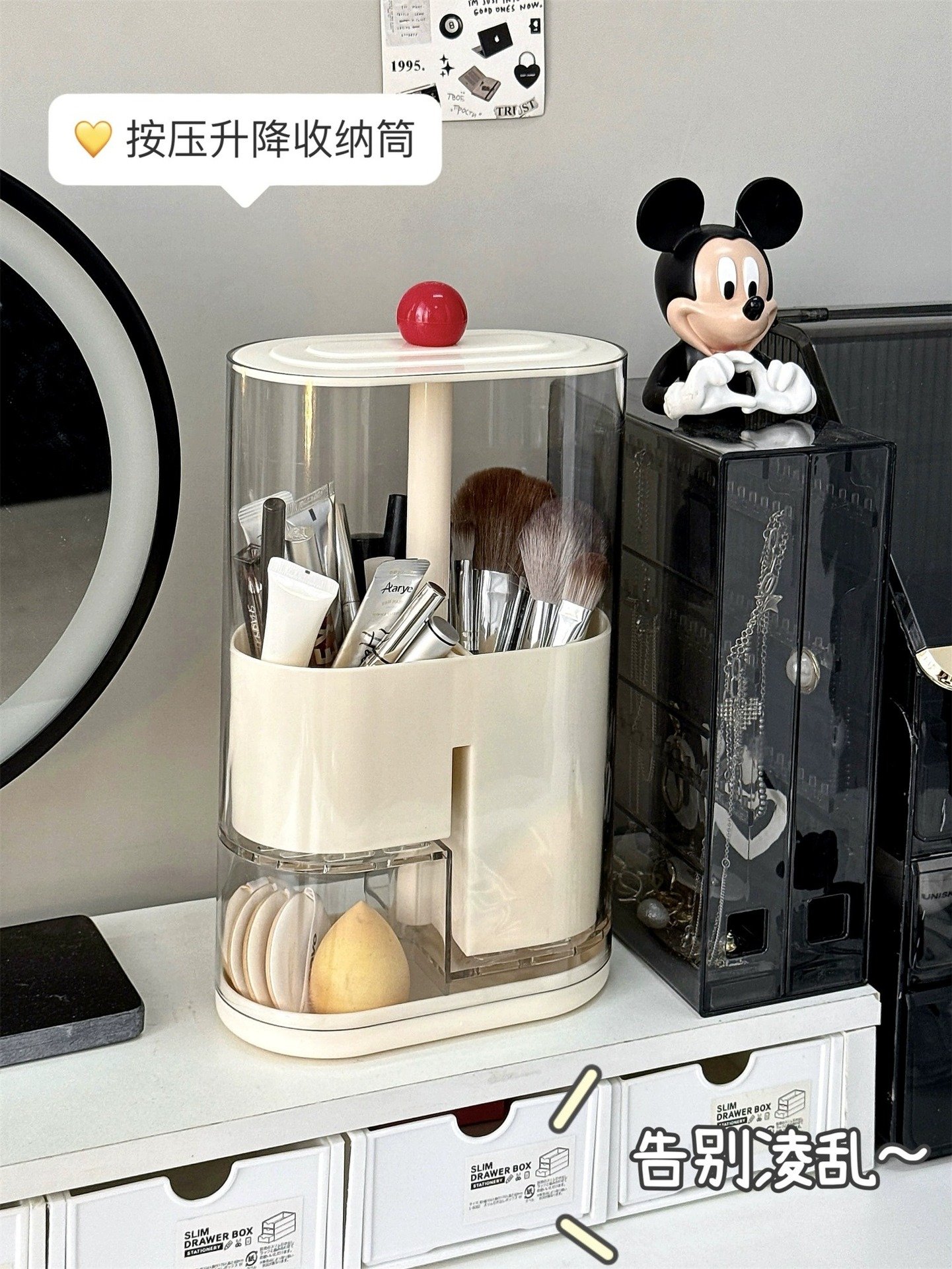 데스크탑 스토리지 박스 리프팅 메이크업 브러시 스토리지 실린더 고급 드레싱 테이블 눈썹 펜 페인트 방진 스토리지 랙스토어 가기