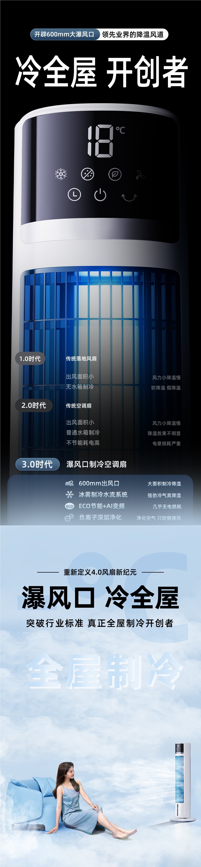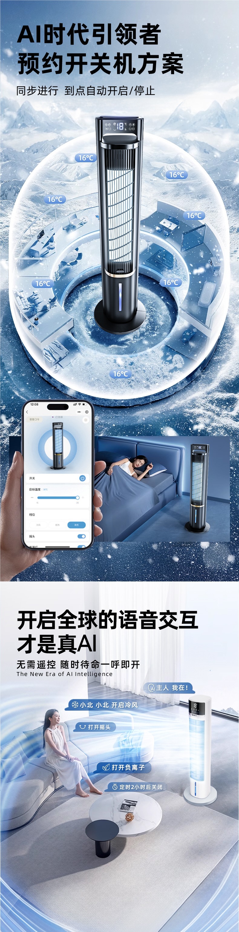 • [럭셔리 AI 지능형 음성 모델] 익스트림 나이트 블랙 에어컨 냉동 AI 음성 음이온 정화 및 보습 400㎡넓은 면적의 얼음감이 1초에 16도 감소℃1초 만에 집 전체를 차갑게