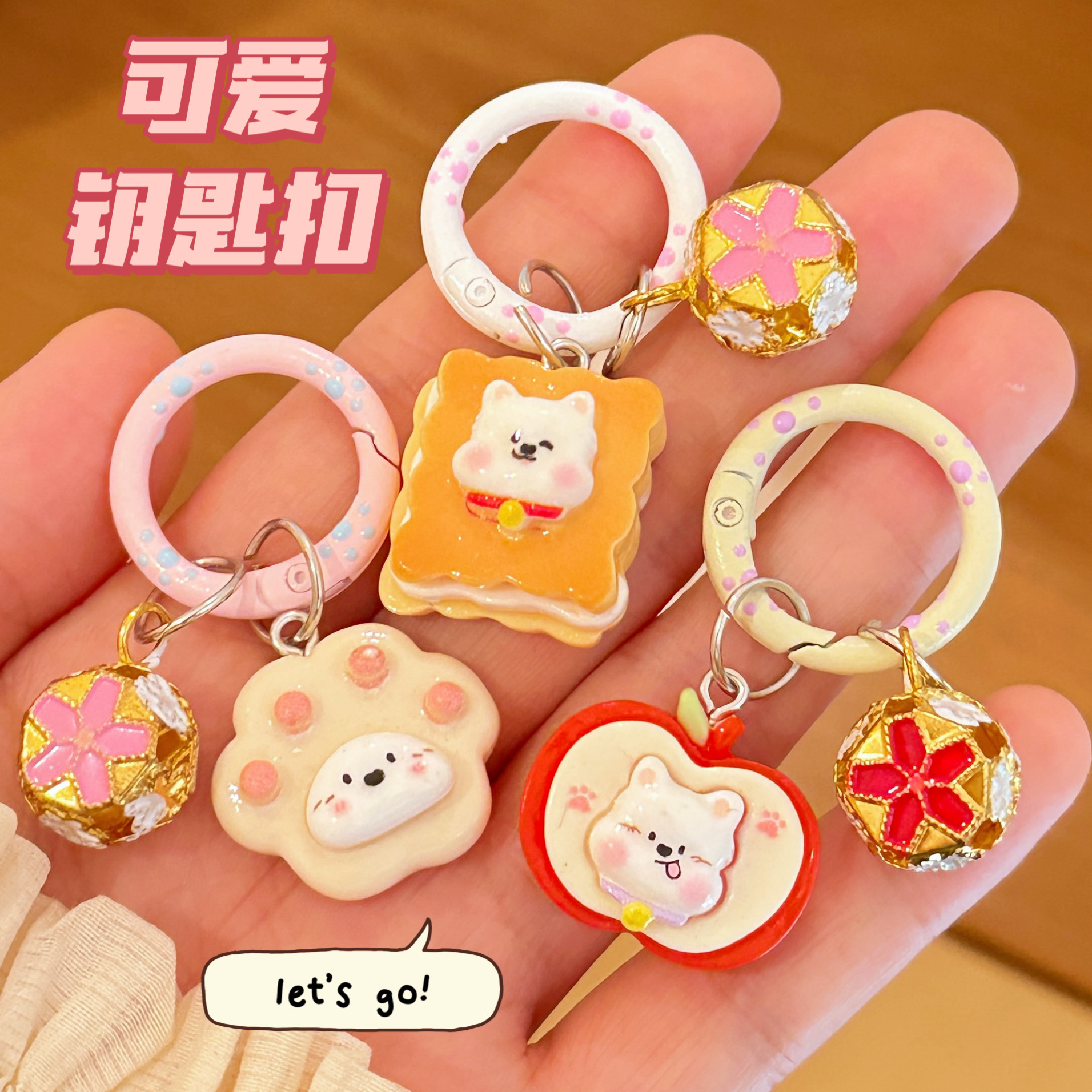 귀여운 웨스트 하이랜드 키 체인 펜던트 만화 음식 장난감 강아지 벨 펜던트 가방 장식 펜던트 커플 선물