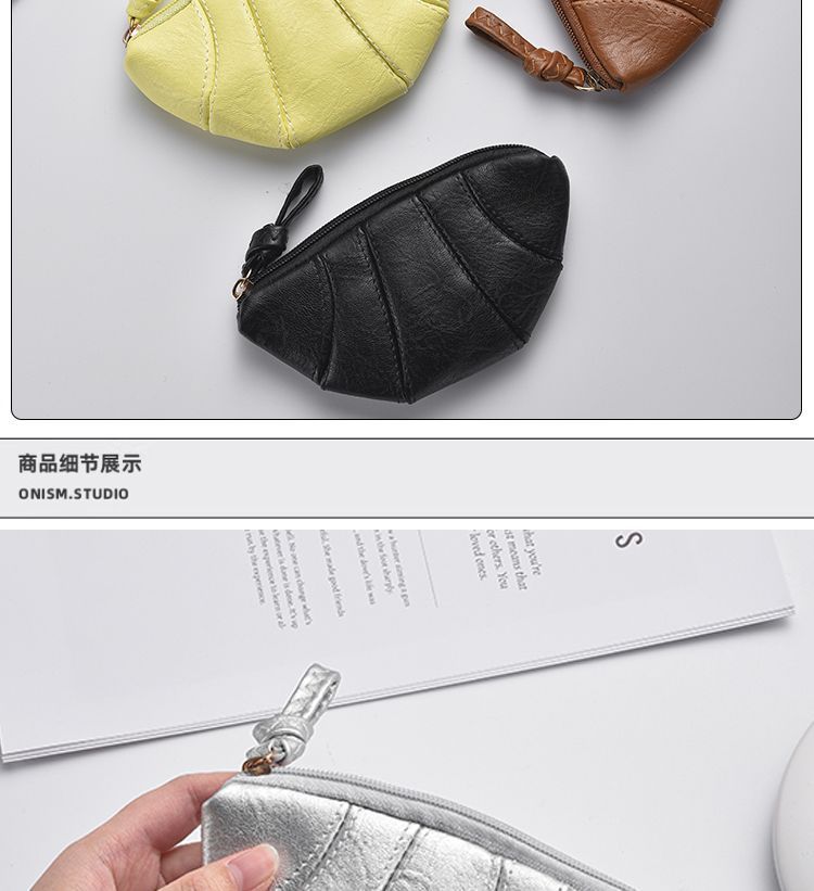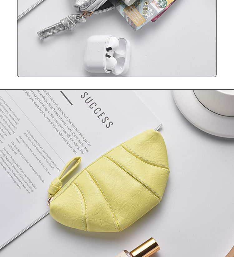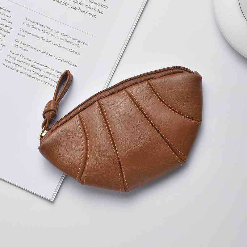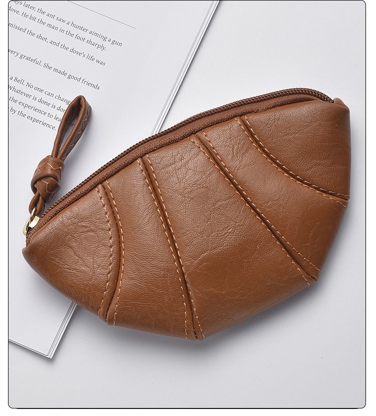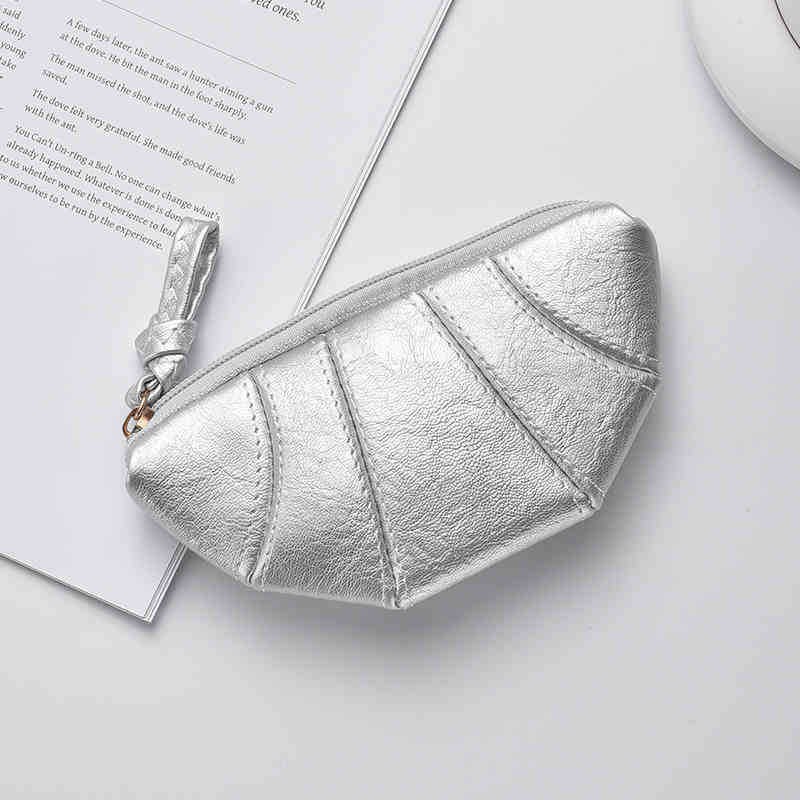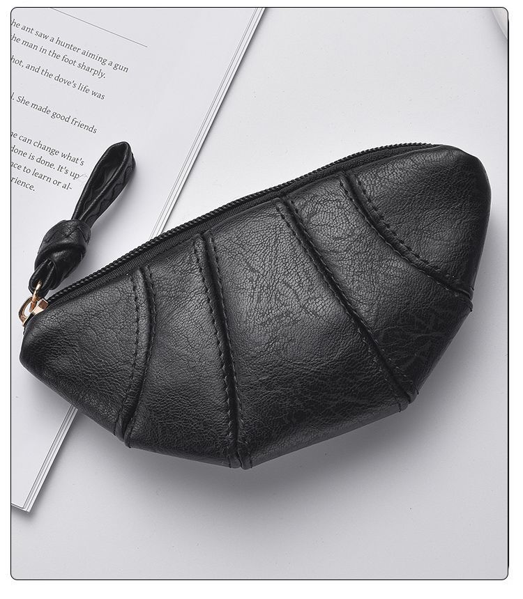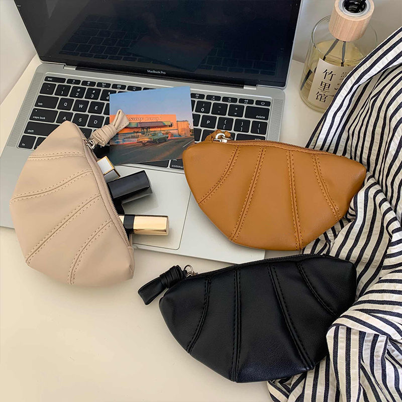 레트로 크로와상 고품질 가죽 동전 지갑 대용량 카드 홀더 한국 틈새 립스틱 화장품 가방 클러치 백