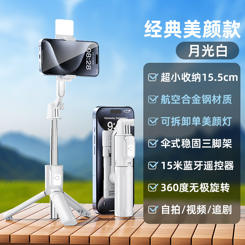 • 화이트·슈퍼 미니 셀카봉+블루투스 리모컨+필라이트