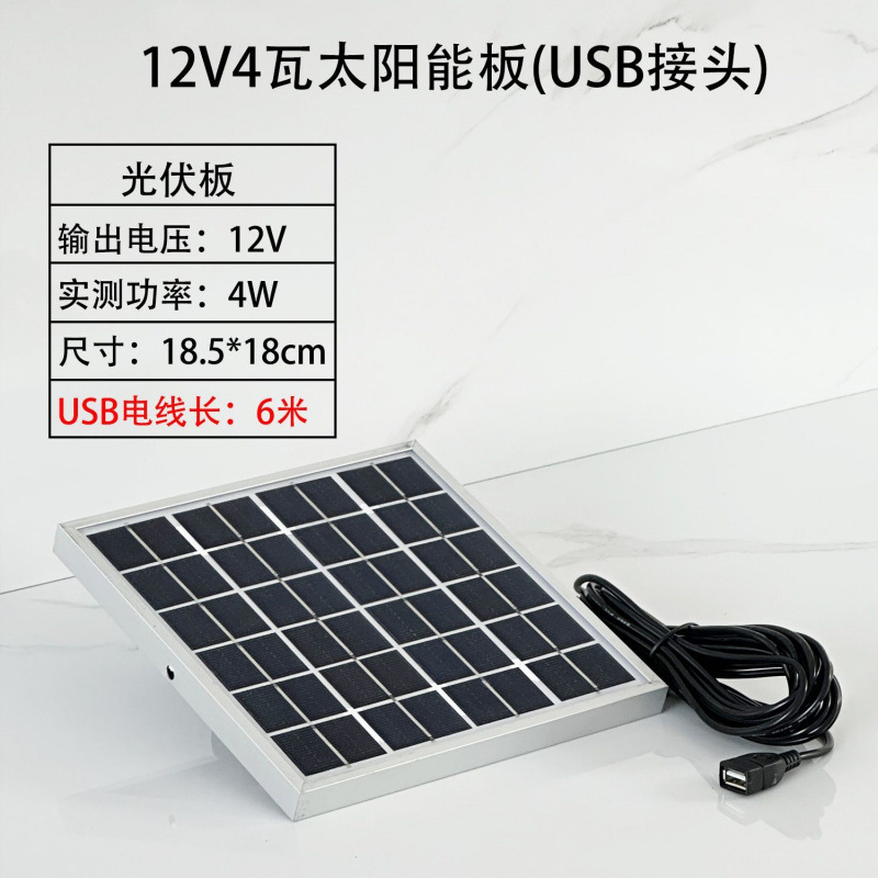 • 12V 4와트 태양광 패널 USB 포트(워터 펌프 없음)